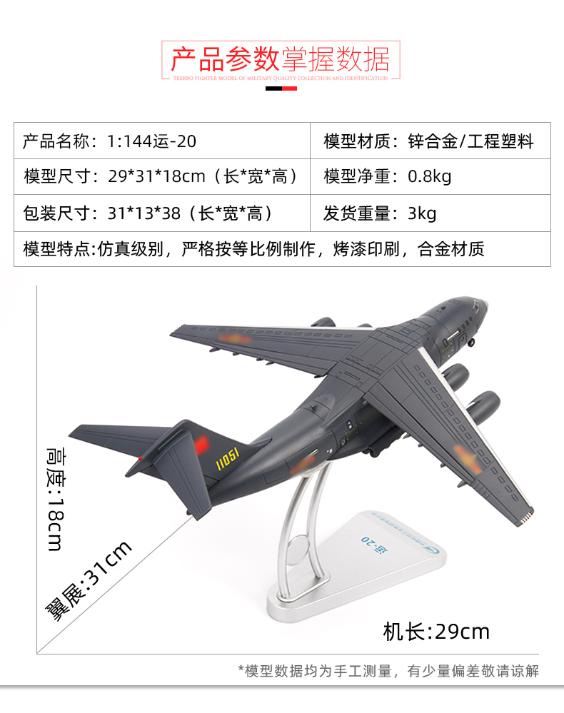 【特尔博-长春航展、九三阅兵纪念品】 1:144运20鲲鹏运输机模型丨合金仿真军事模型丨收藏精品丨送礼佳品丨家居摆件