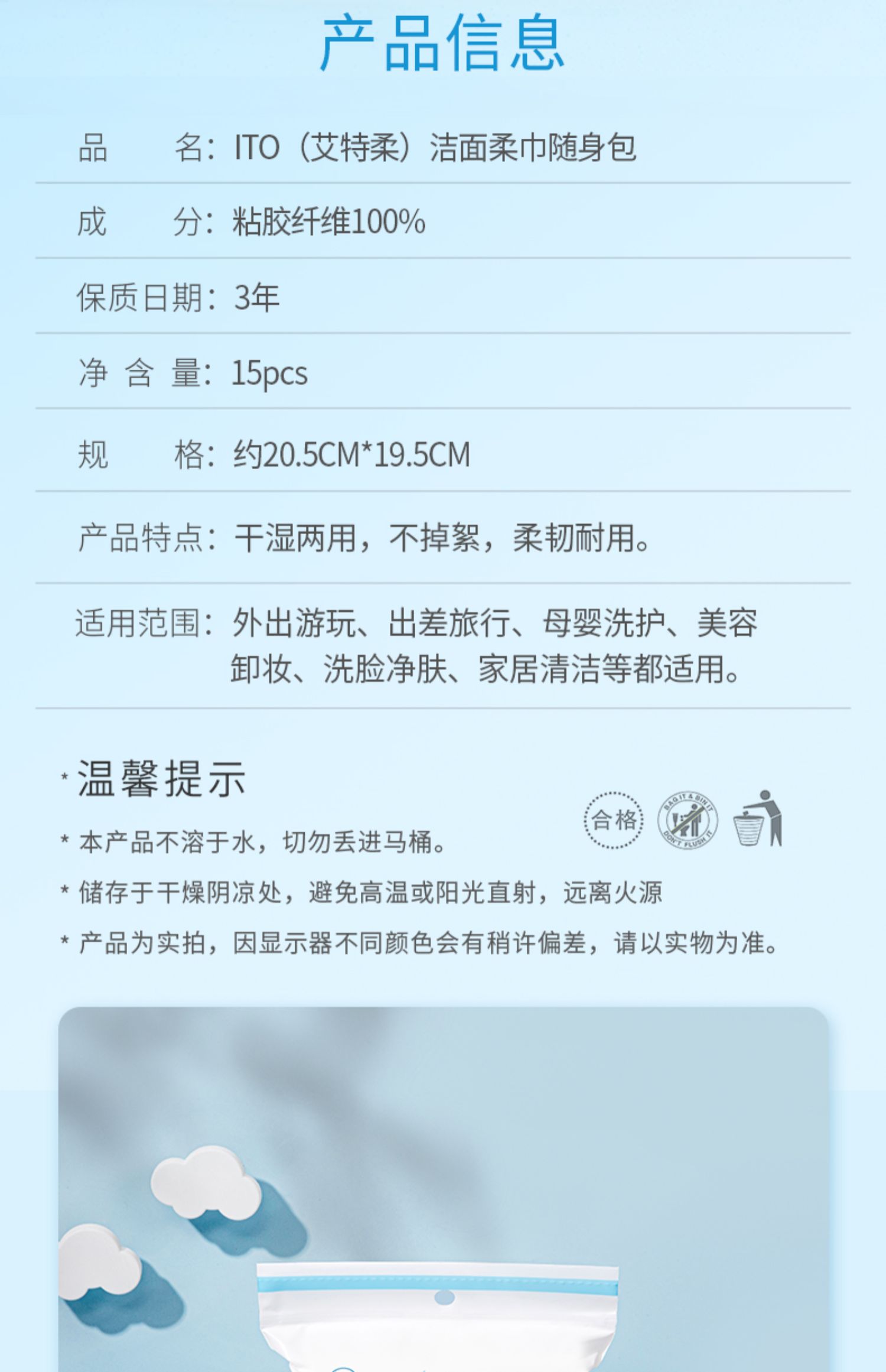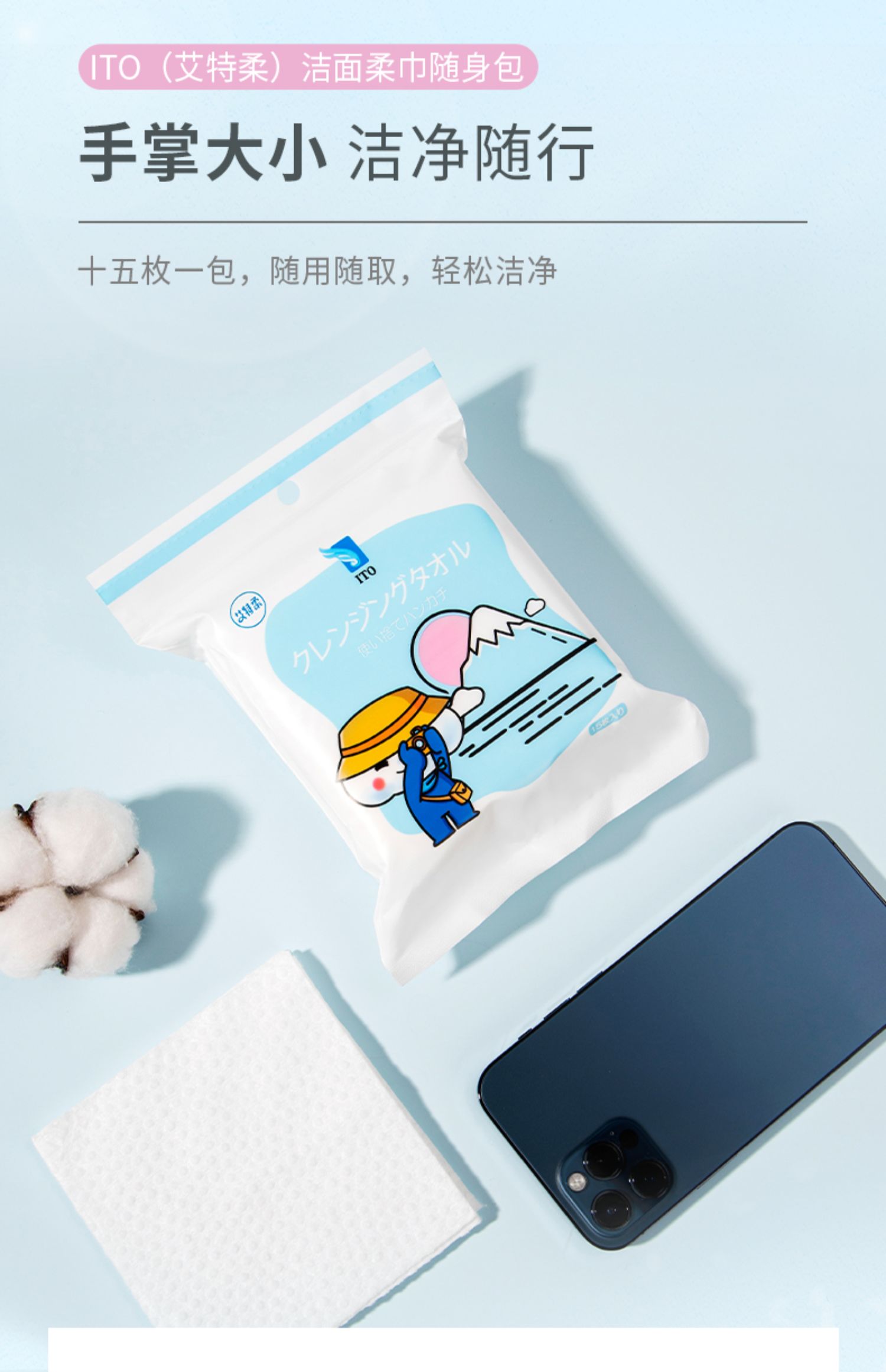 ITO艾特柔一次性绵柔巾旅行便携随身包洁面洗脸巾15片