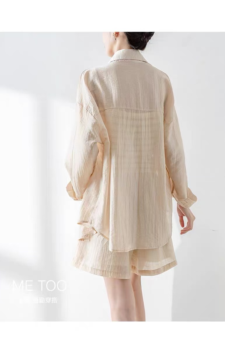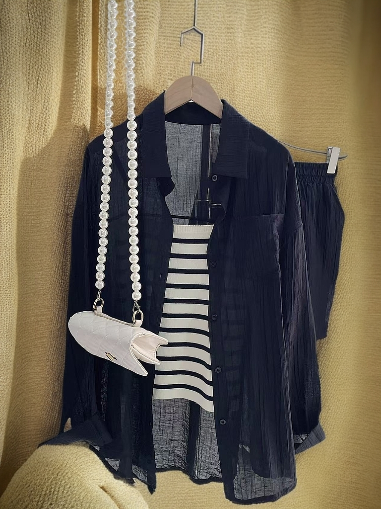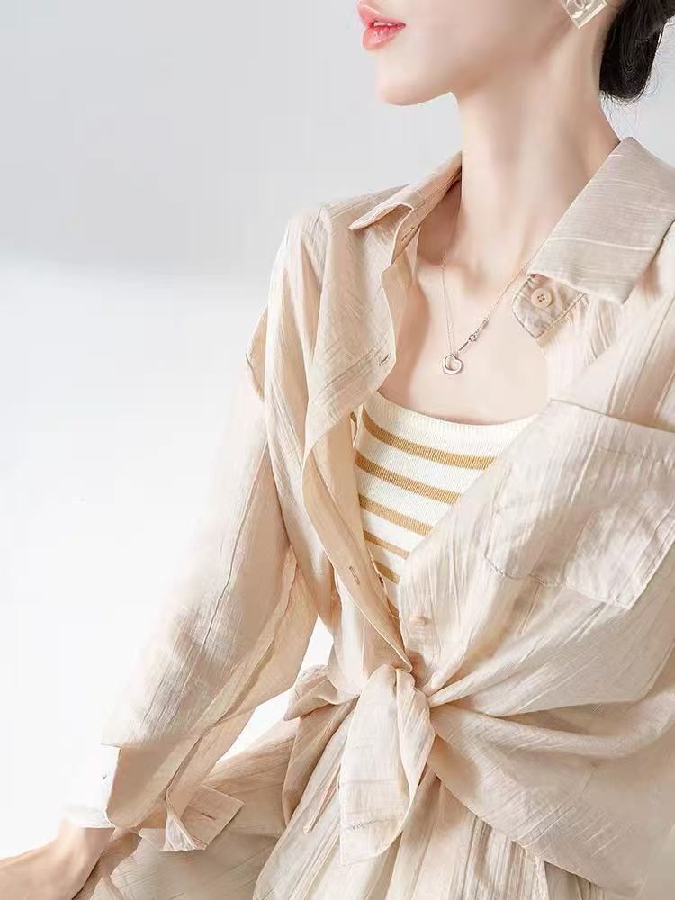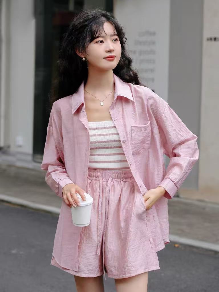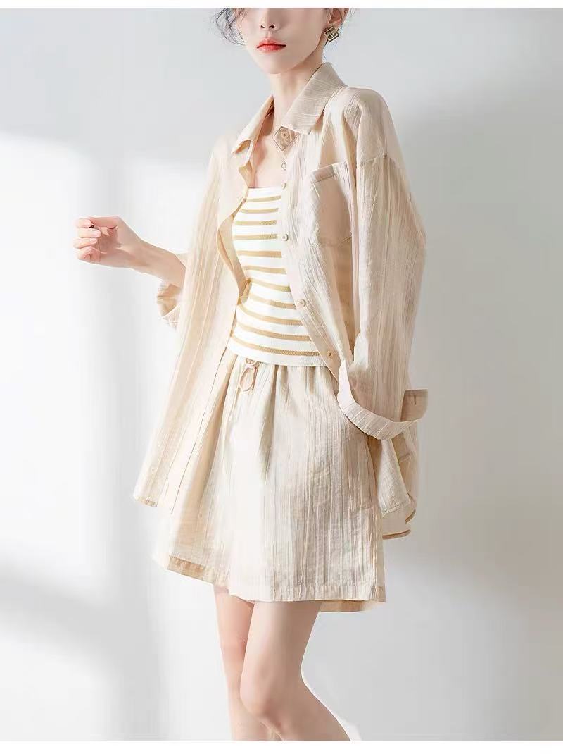 夏装搭配一整套【85%天丝】2025新款网红炸街防晒衬衫+背心➕短裤三件套装-喜出