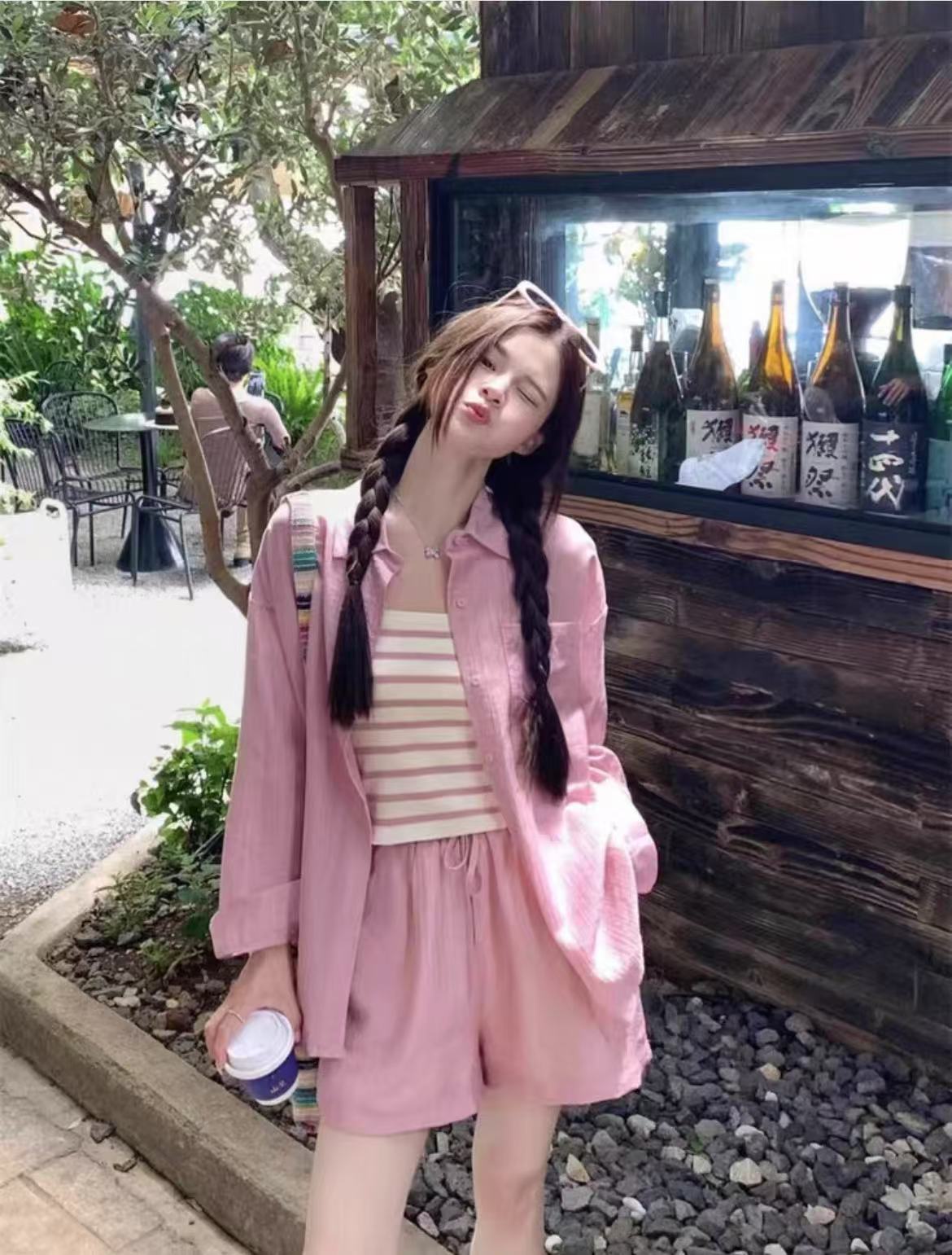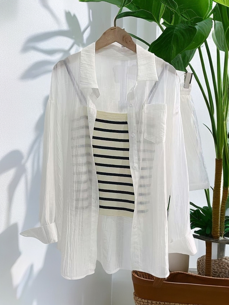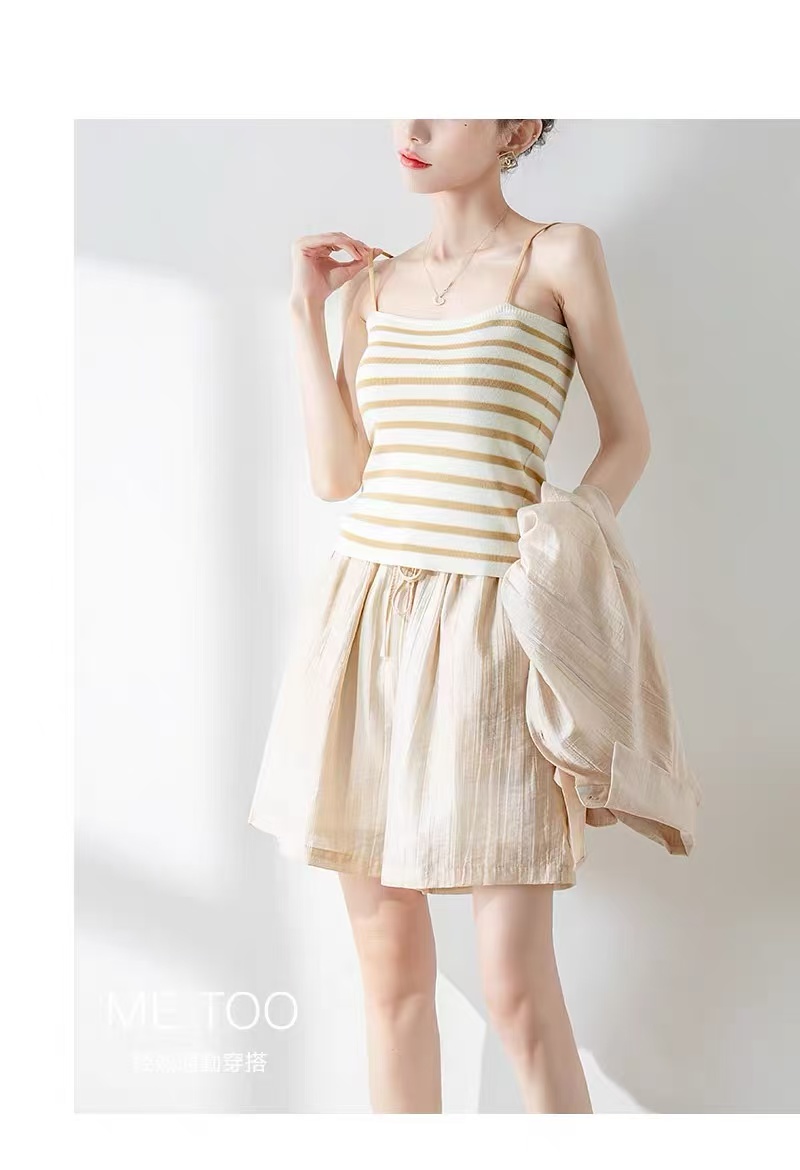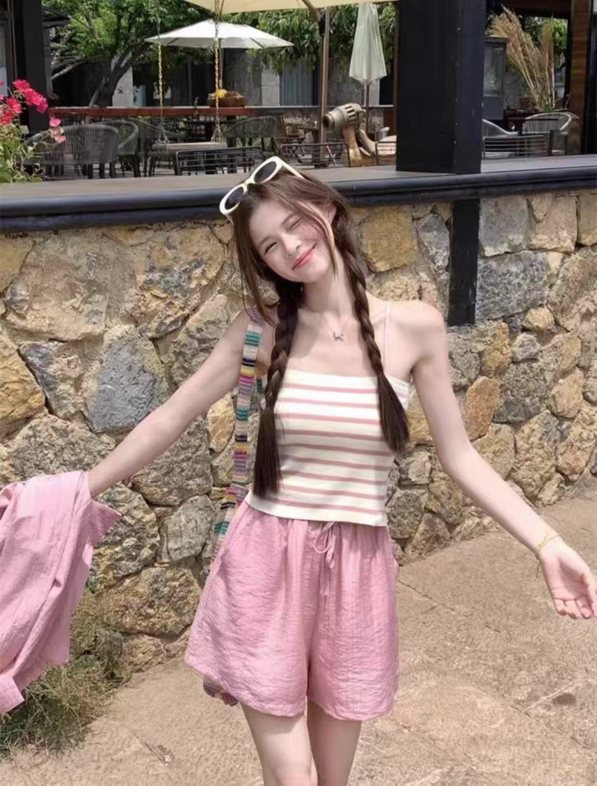 夏装搭配一整套【85%天丝】2025新款网红炸街防晒衬衫+背心➕短裤三件套装-喜出