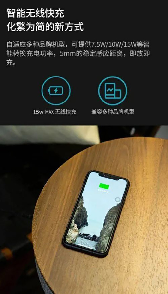 除此以外,内置有无线充电模块,还可以用作无线充为手机充电使用(仅限于具备无线充电功能的手机)!!!