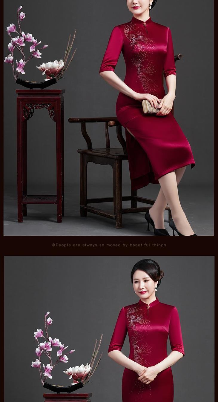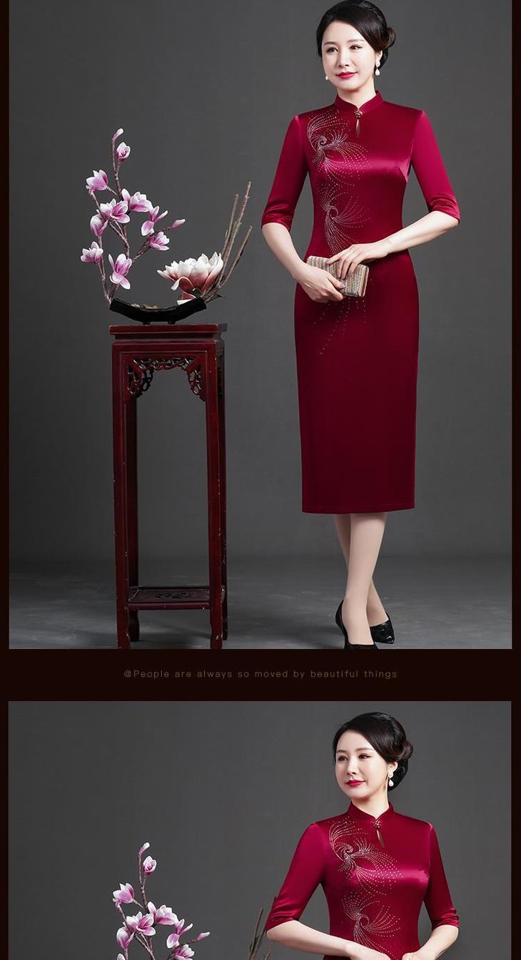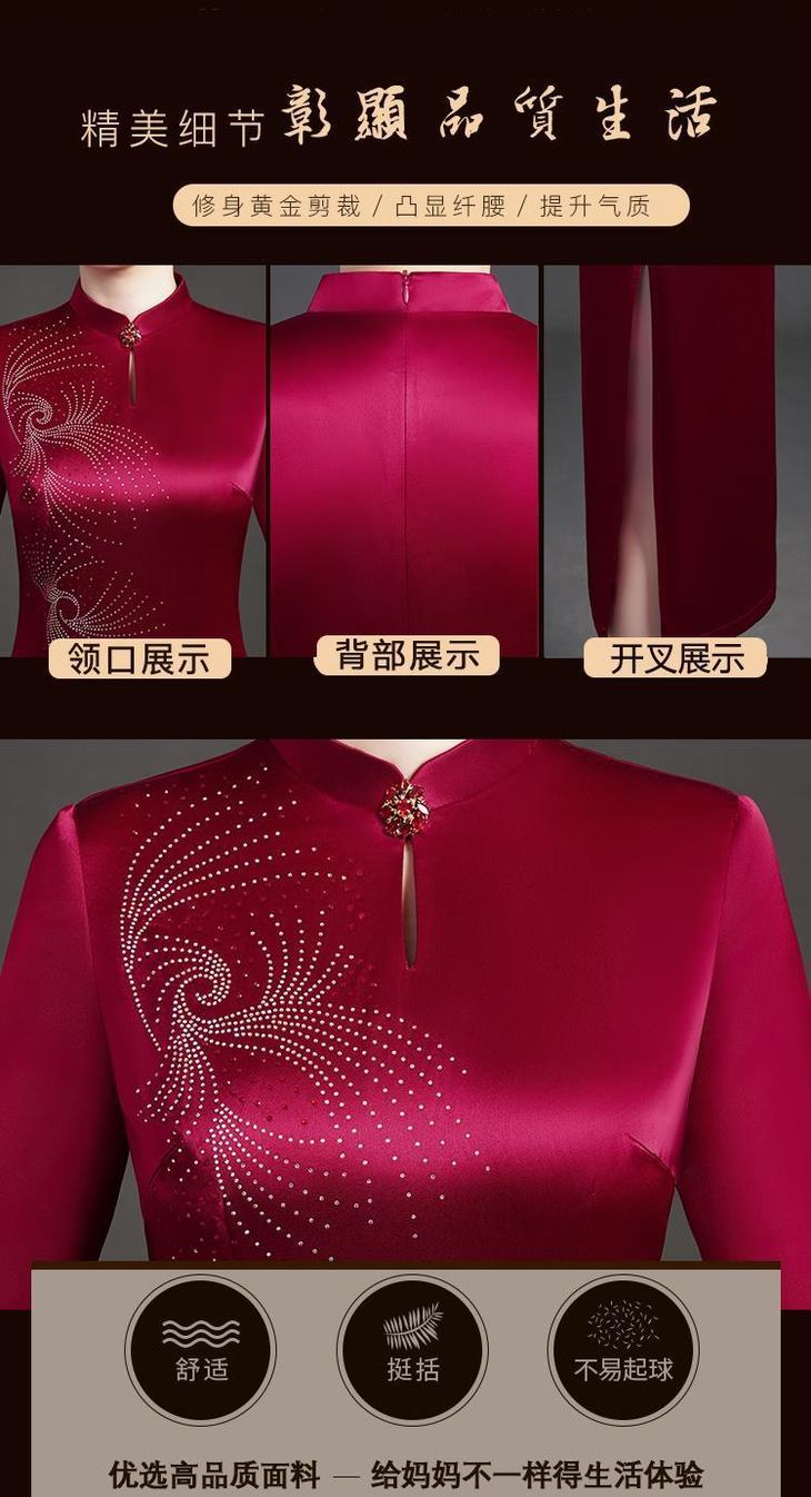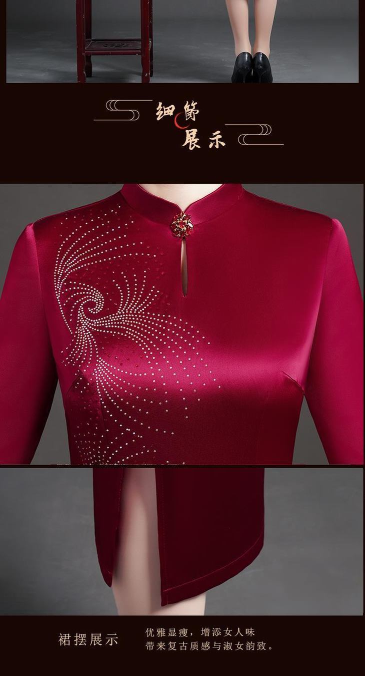 BJ-22135喜婆婆婚宴连衣裙年轻洋气高贵醋酸缎镶钻旗袍
