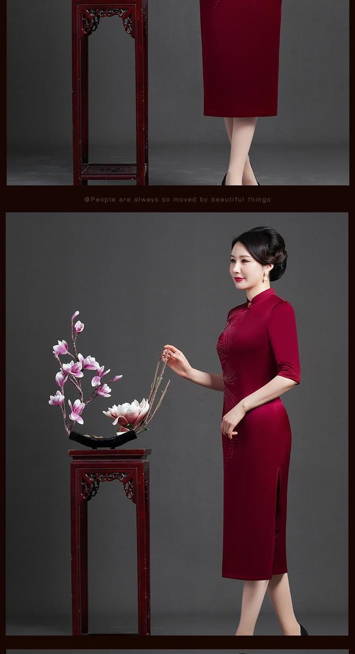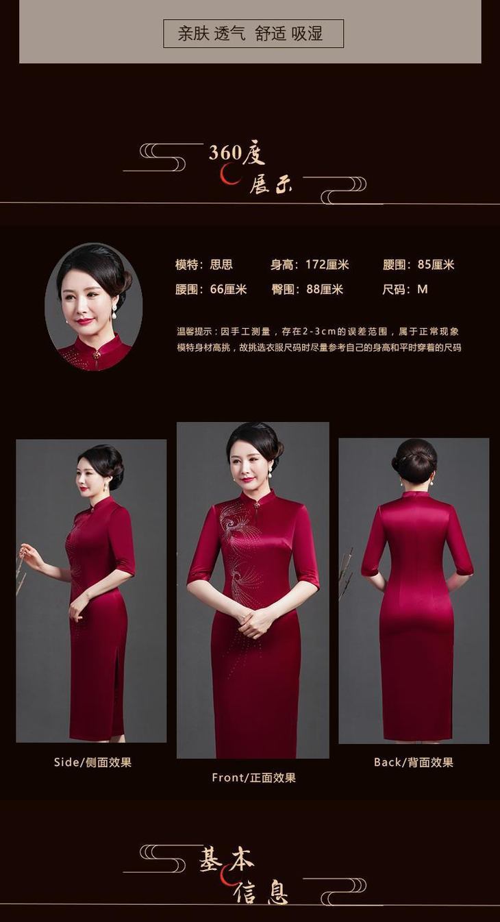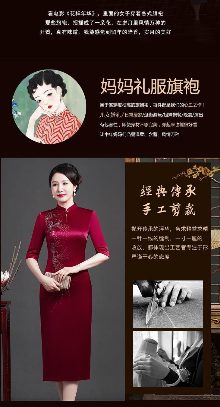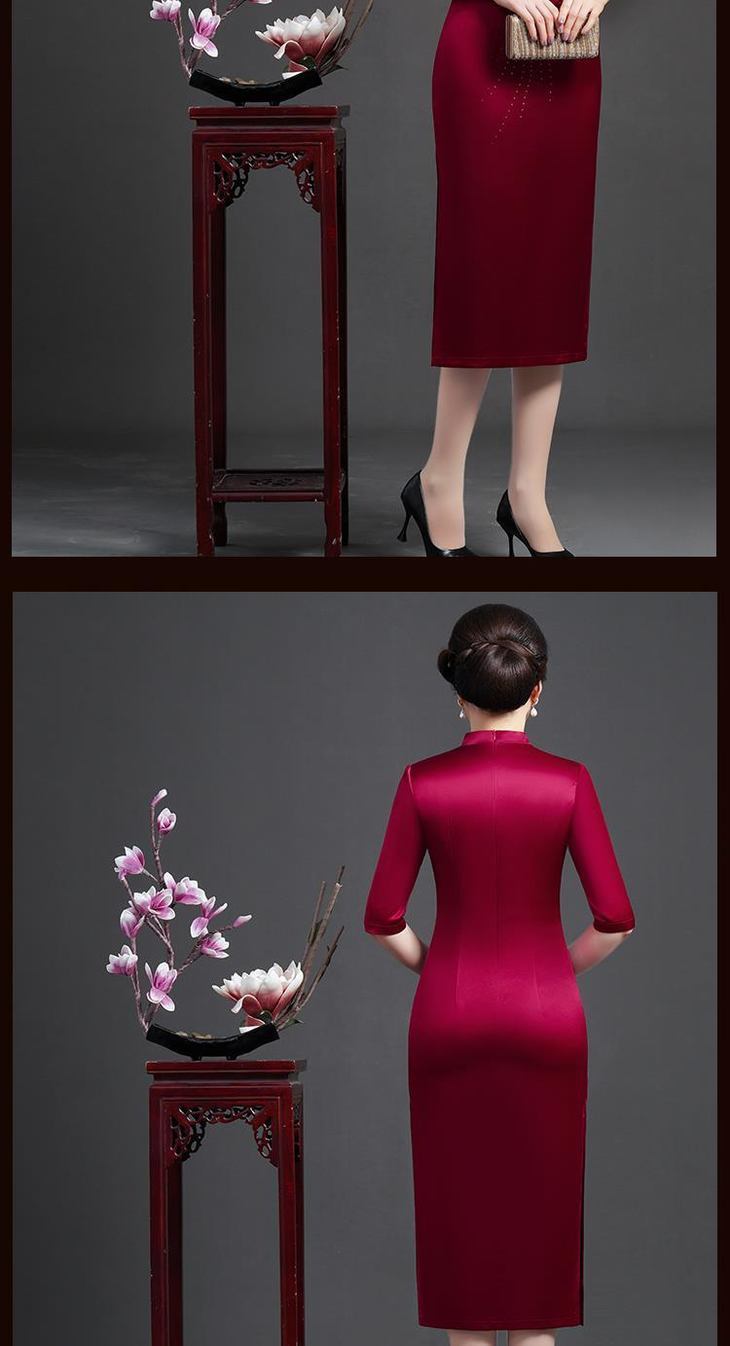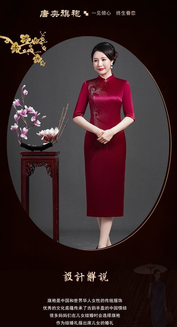 BJ-22135喜婆婆婚宴连衣裙年轻洋气高贵醋酸缎镶钻旗袍