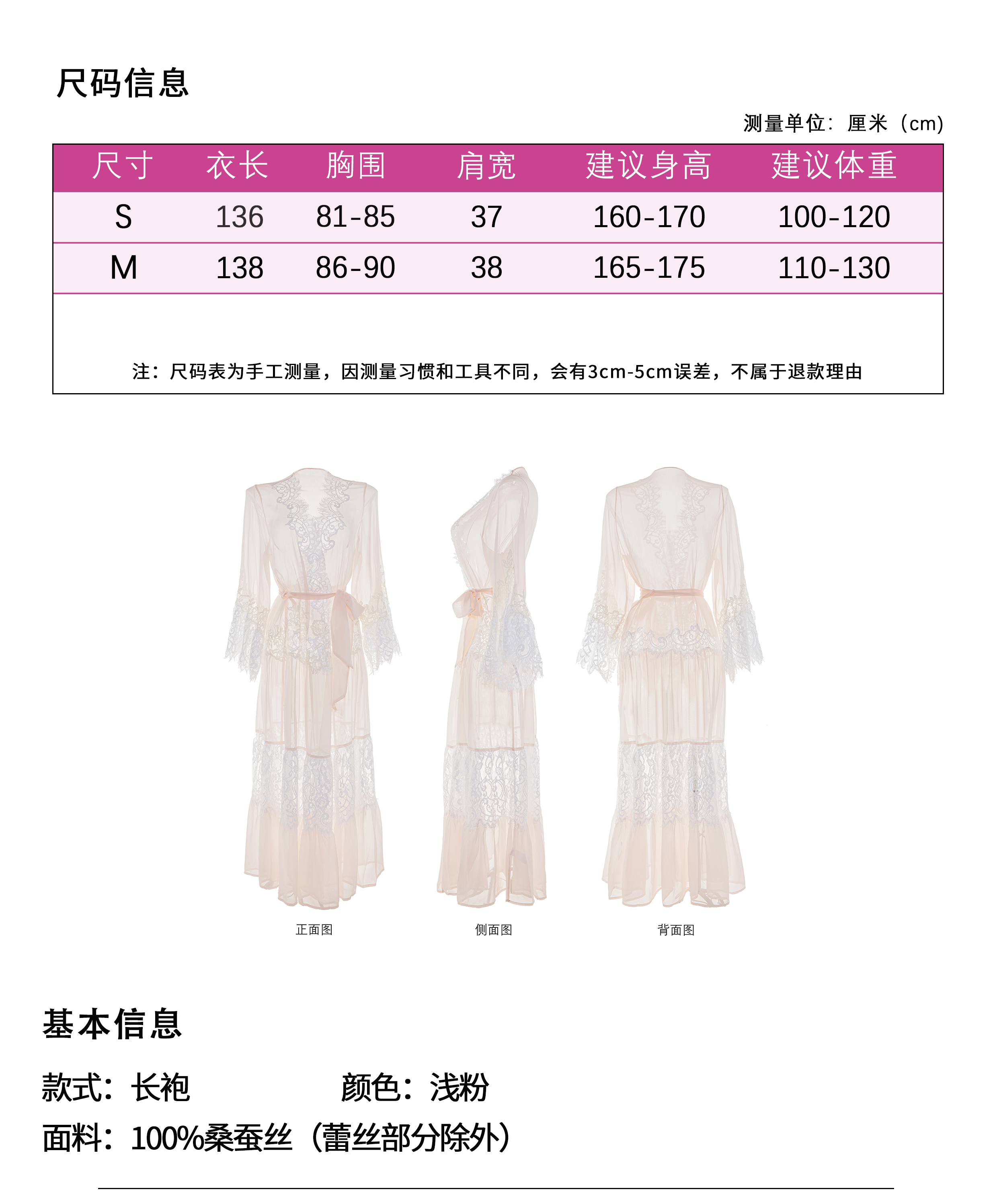彩色蕾丝露背长款真丝吊裙睡袍 A22103