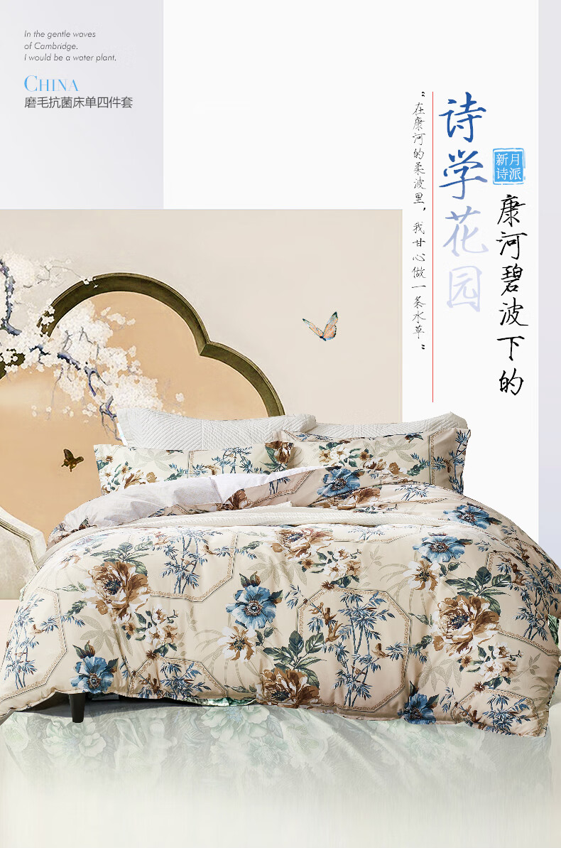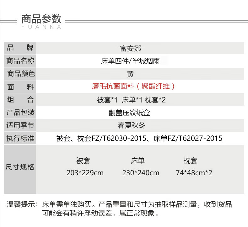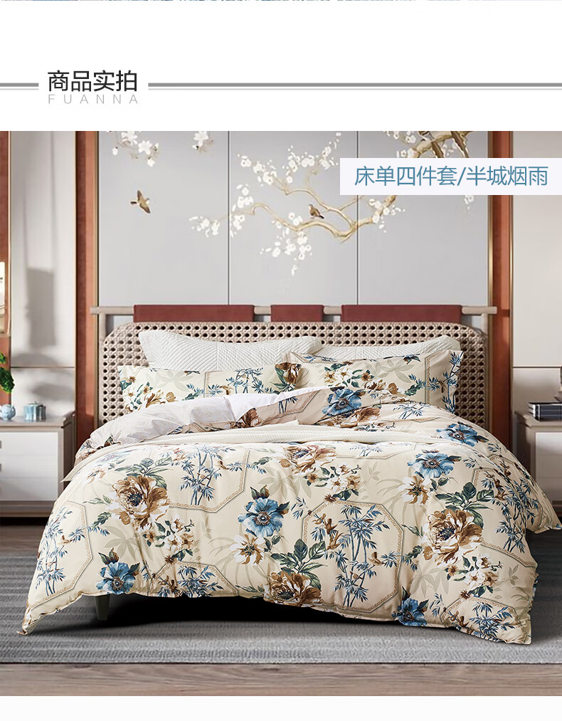 【彤橙】富安娜(FUANNA) 抗菌磨毛四件套-半城烟雨