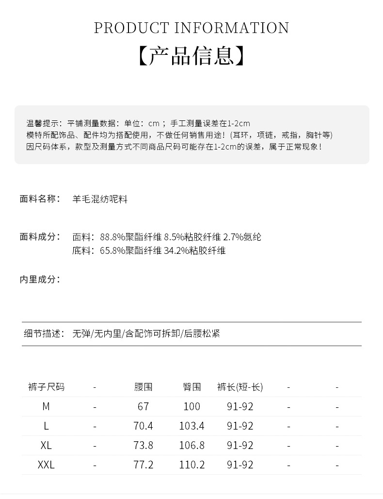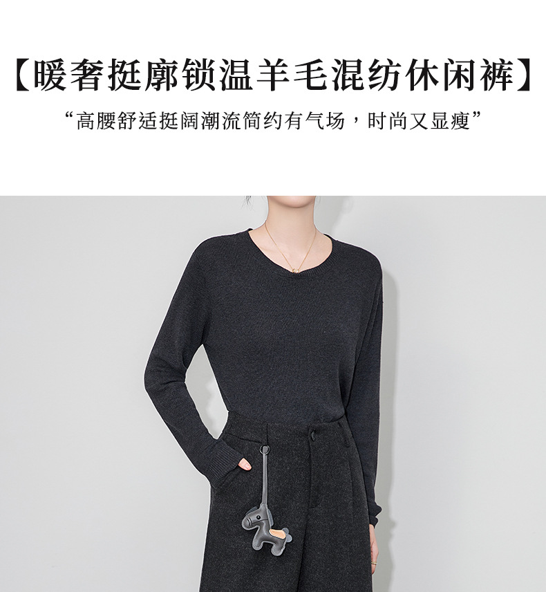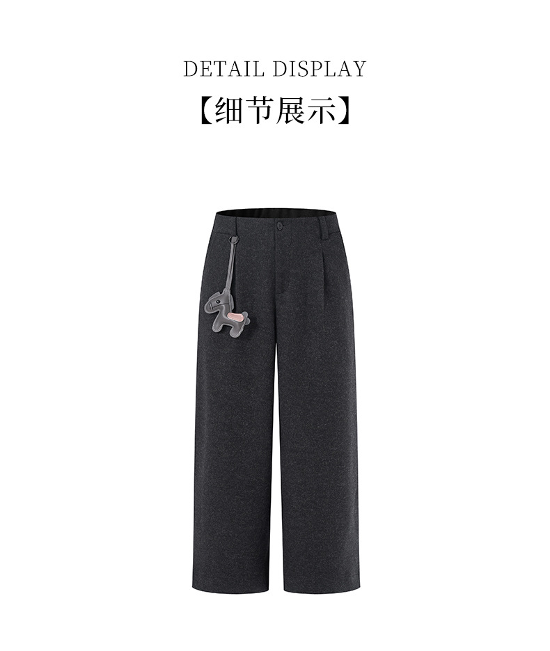 「高货wl」全新升级【铂金会员220/天猫289/差价69】(04431)洛诗琳时髦含小马挂件毛呢裤2025秋冬加厚宽松直筒九分裤