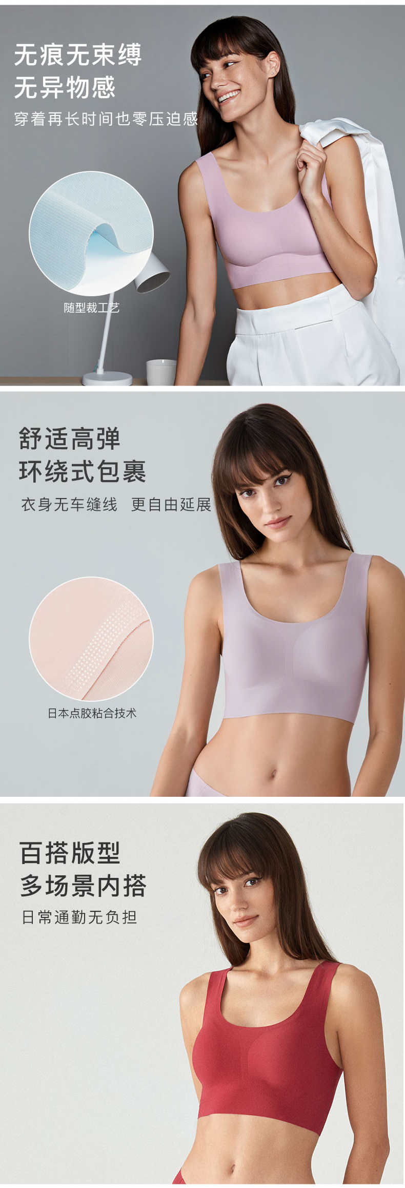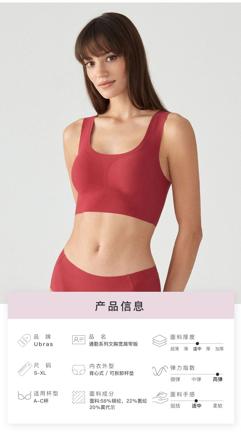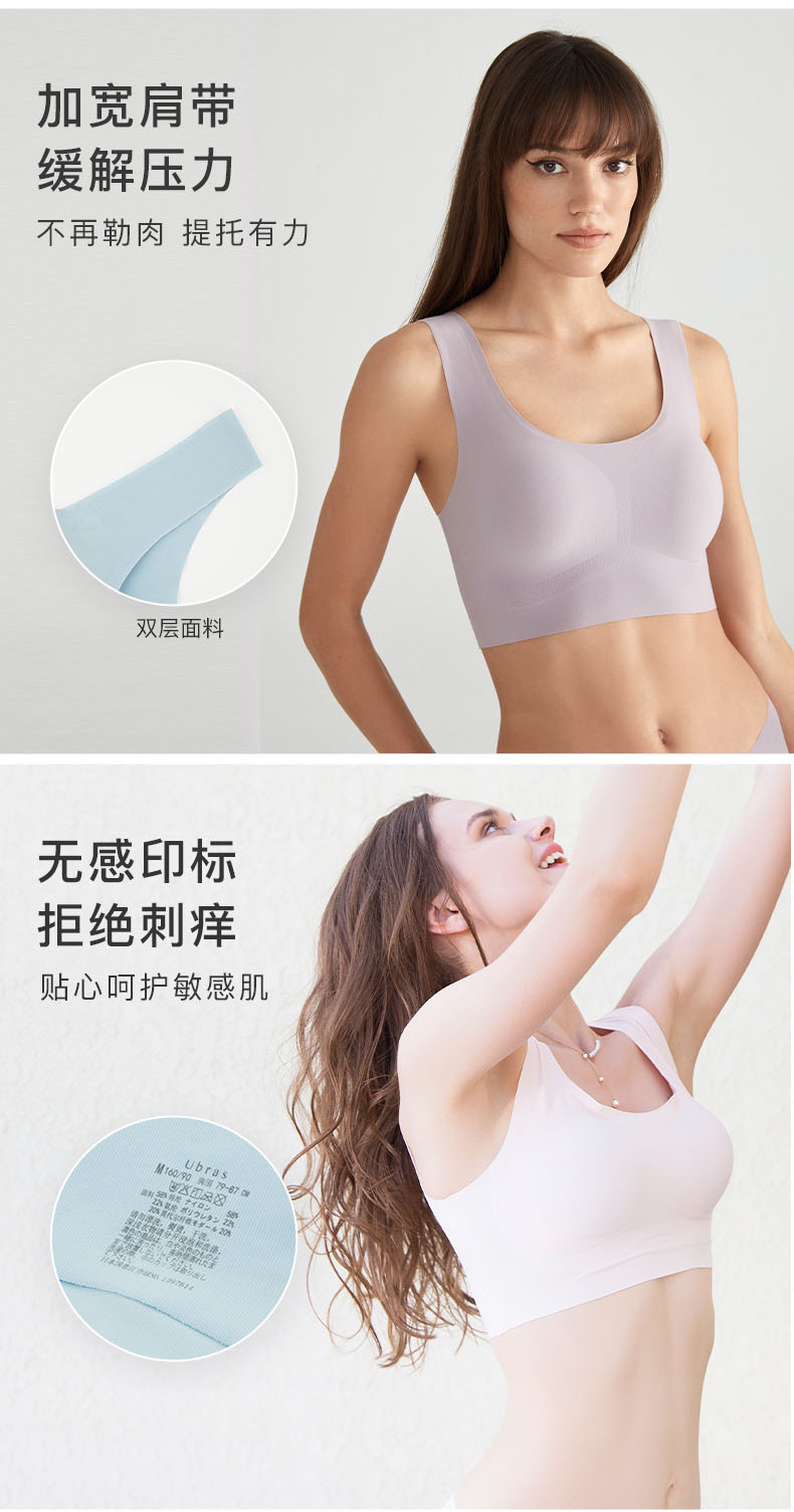 Ubras通勤宽肩带背心式文胸无痕内衣女无钢圈聚拢大胸显小