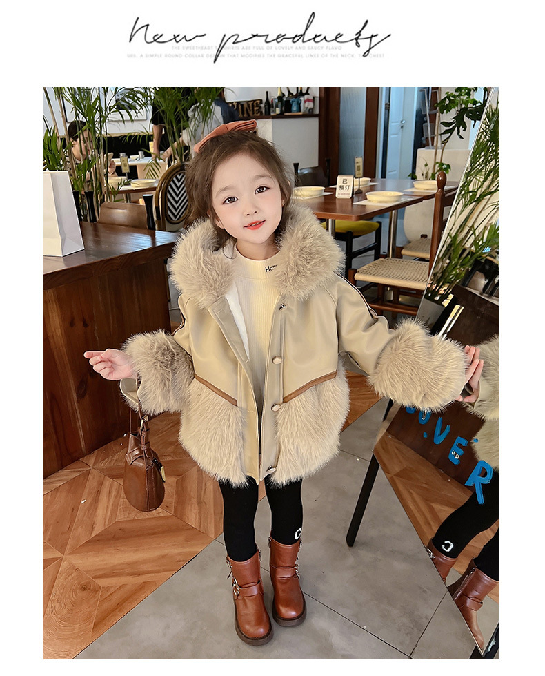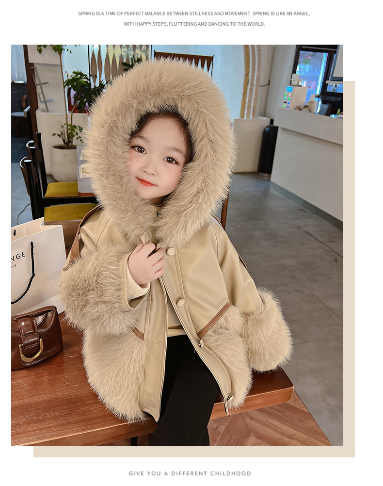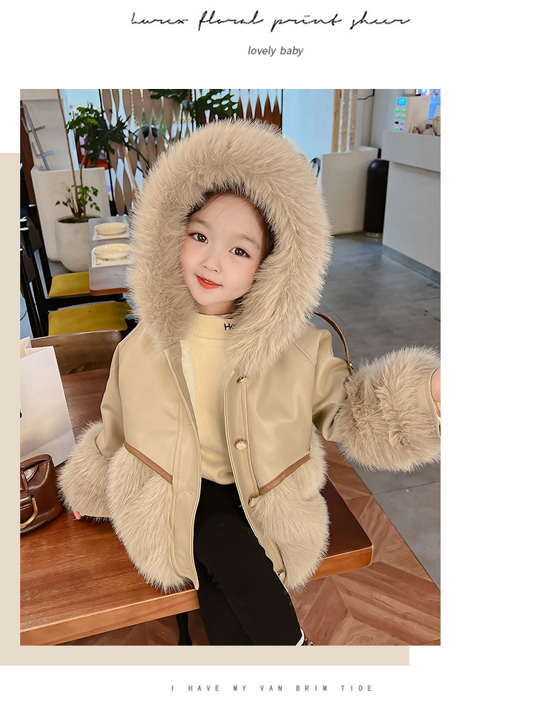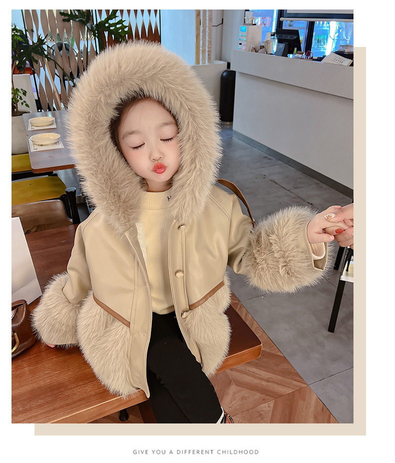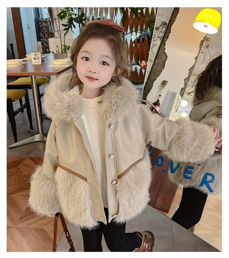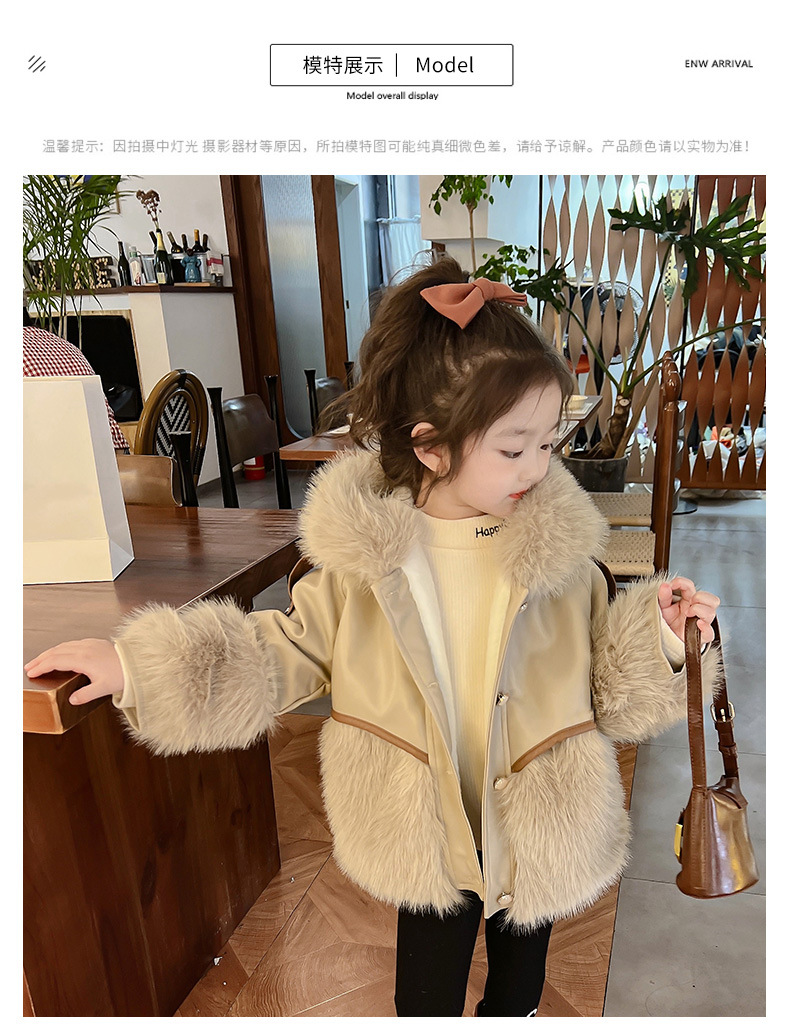 【加绒保暖,洋气时尚,小女孩皮草让宝宝更加可爱迷人】女童秋冬装外套新款 宝宝冬季洋气加绒皮衣 儿童上衣小女孩皮草外套-QQ
