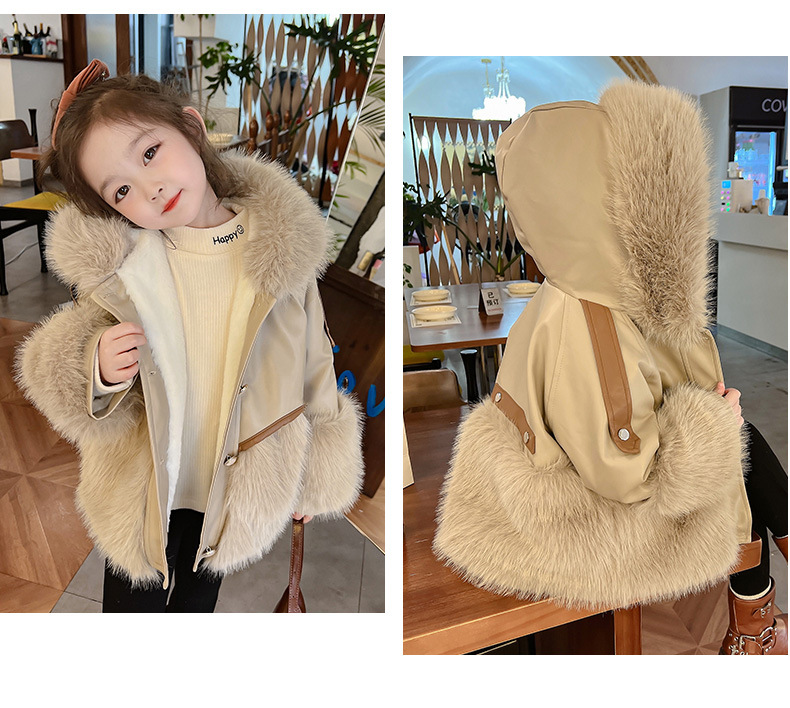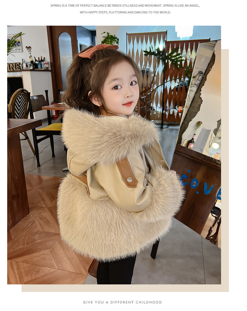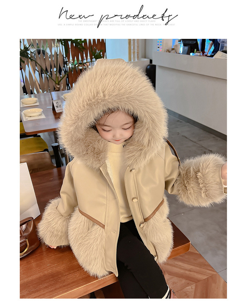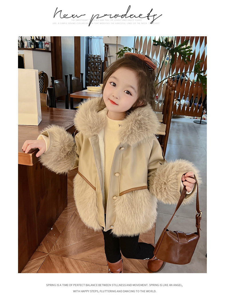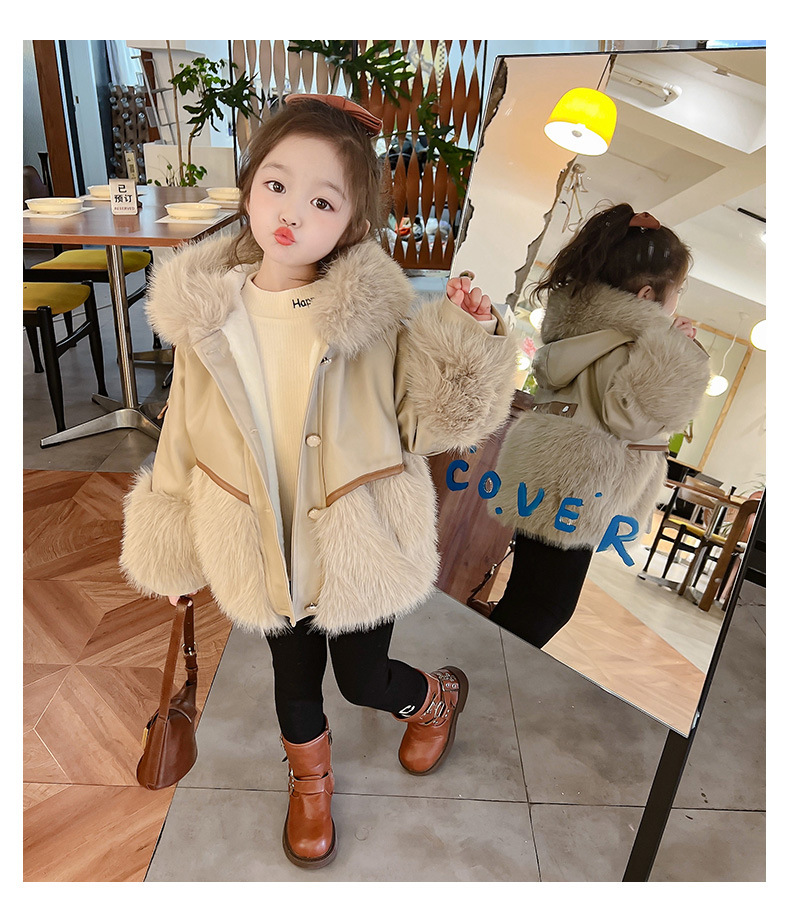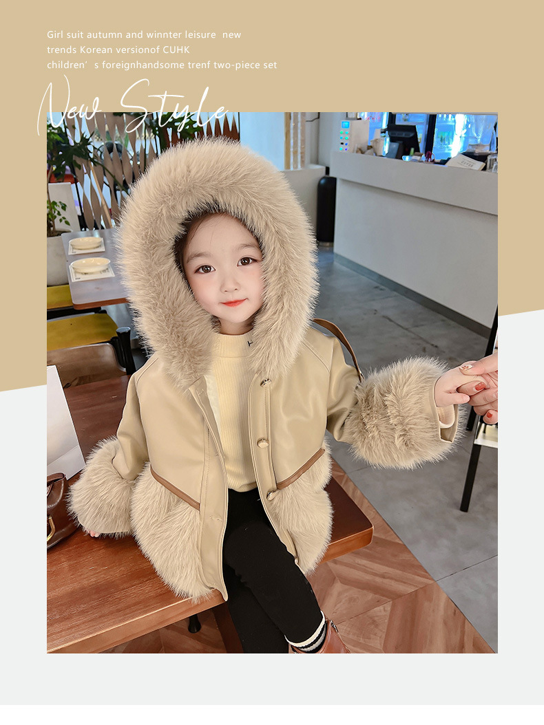 【加绒保暖,洋气时尚,小女孩皮草让宝宝更加可爱迷人】女童秋冬装外套新款 宝宝冬季洋气加绒皮衣 儿童上衣小女孩皮草外套-QQ