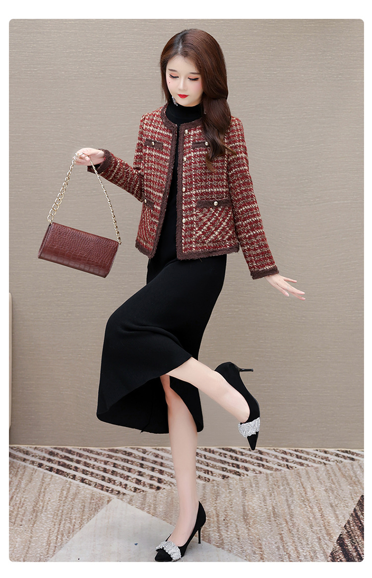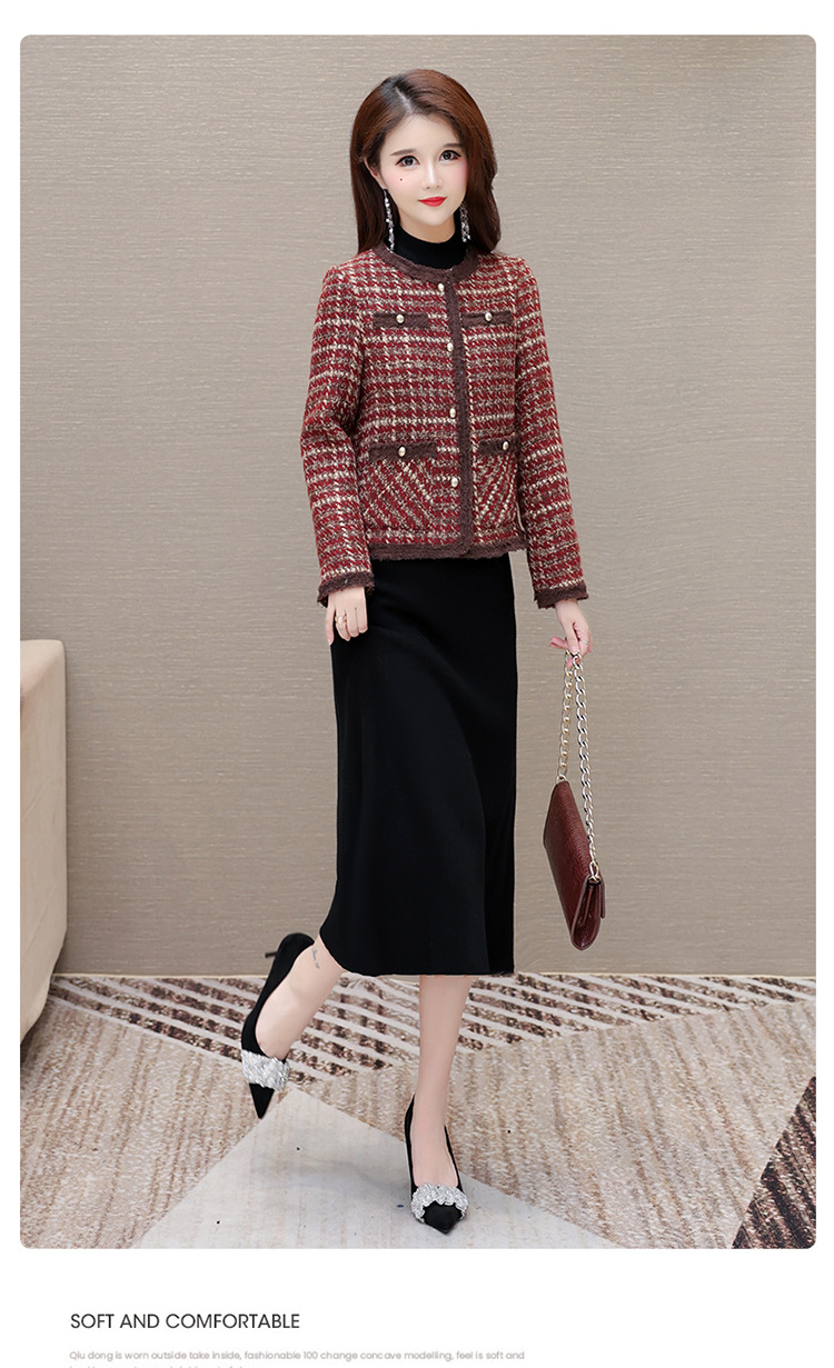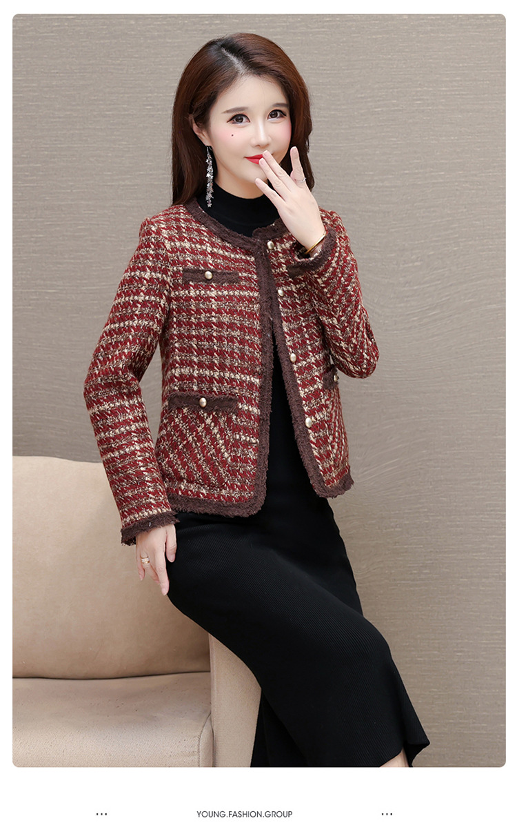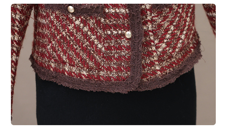 QYM 19C24103-Y小香风外套条纹格子短款上衣时尚休闲