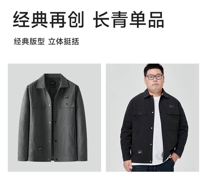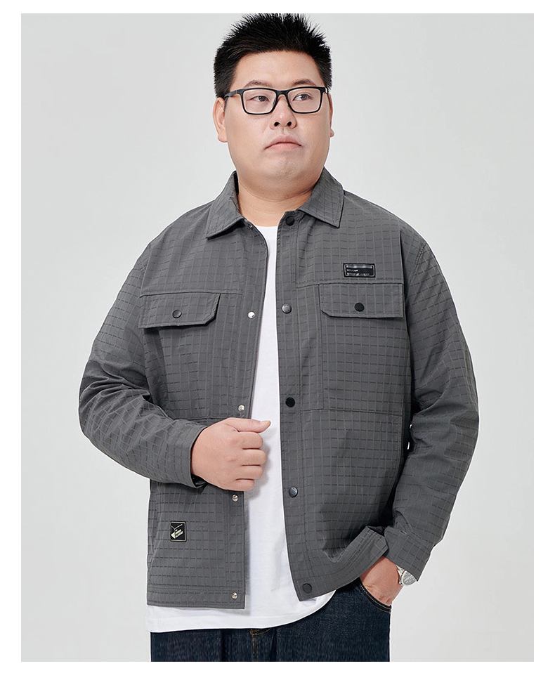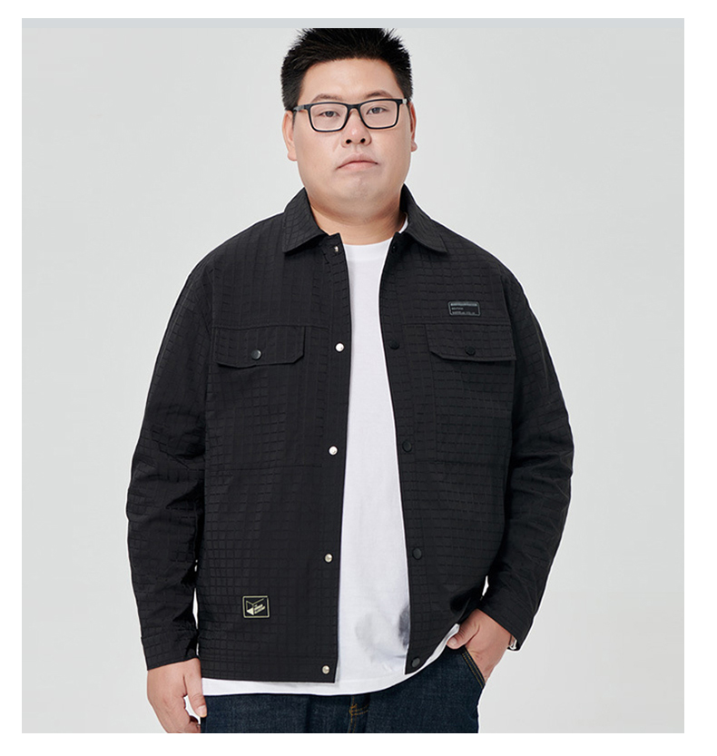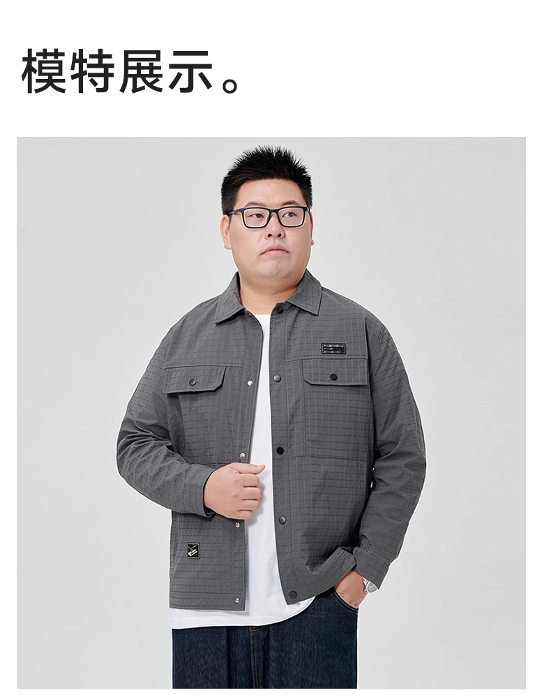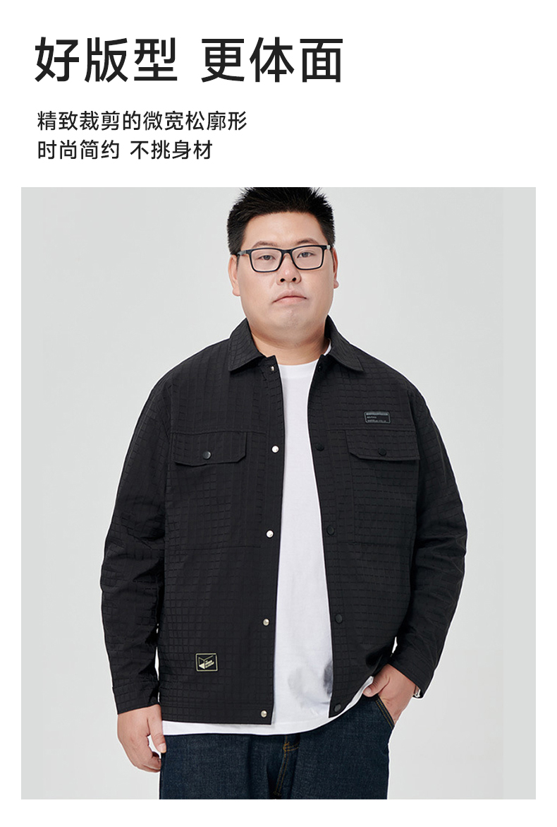 【一口价】【新款DJ】大依优型衬衫翻领外套暗纹提花夹克男宽松加肥加大码男士上衣胖子肥佬休闲Y