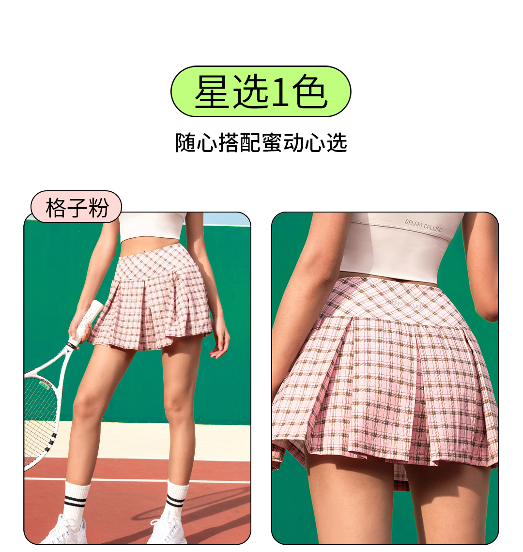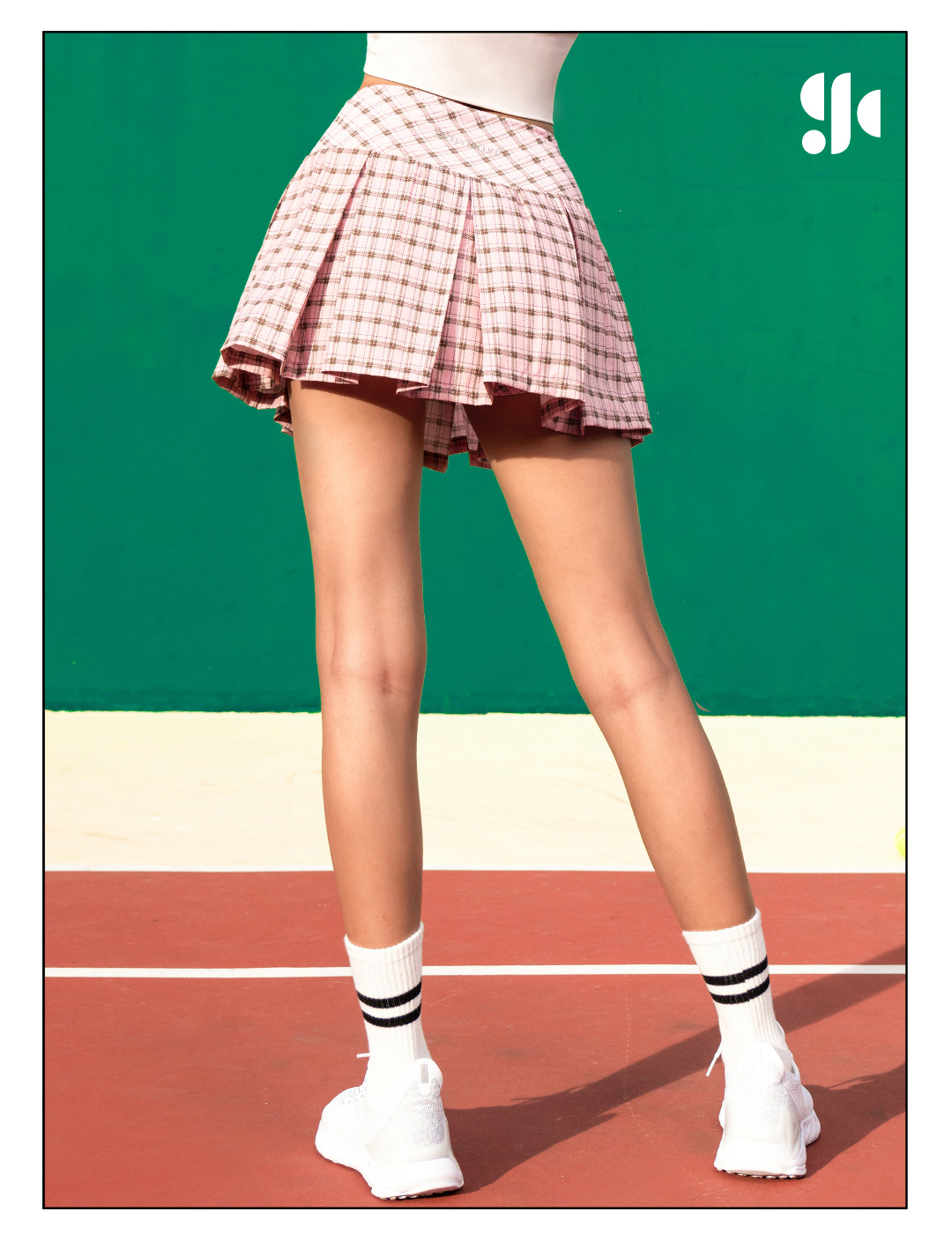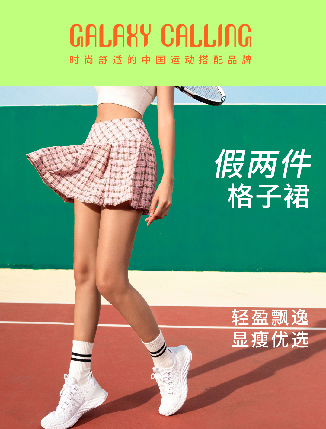 跃牌【欲动春风】系列假两件运动裙子女休闲格子半身裙修身显瘦健身短裙22442(直播仓)此款为欧码,建议拍小一码!