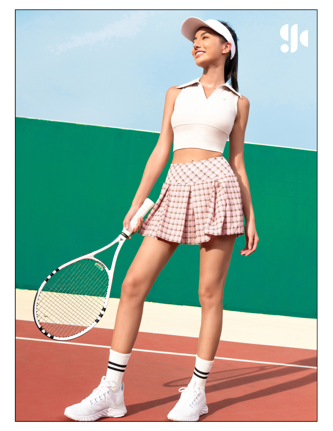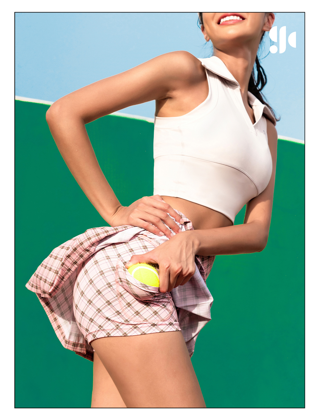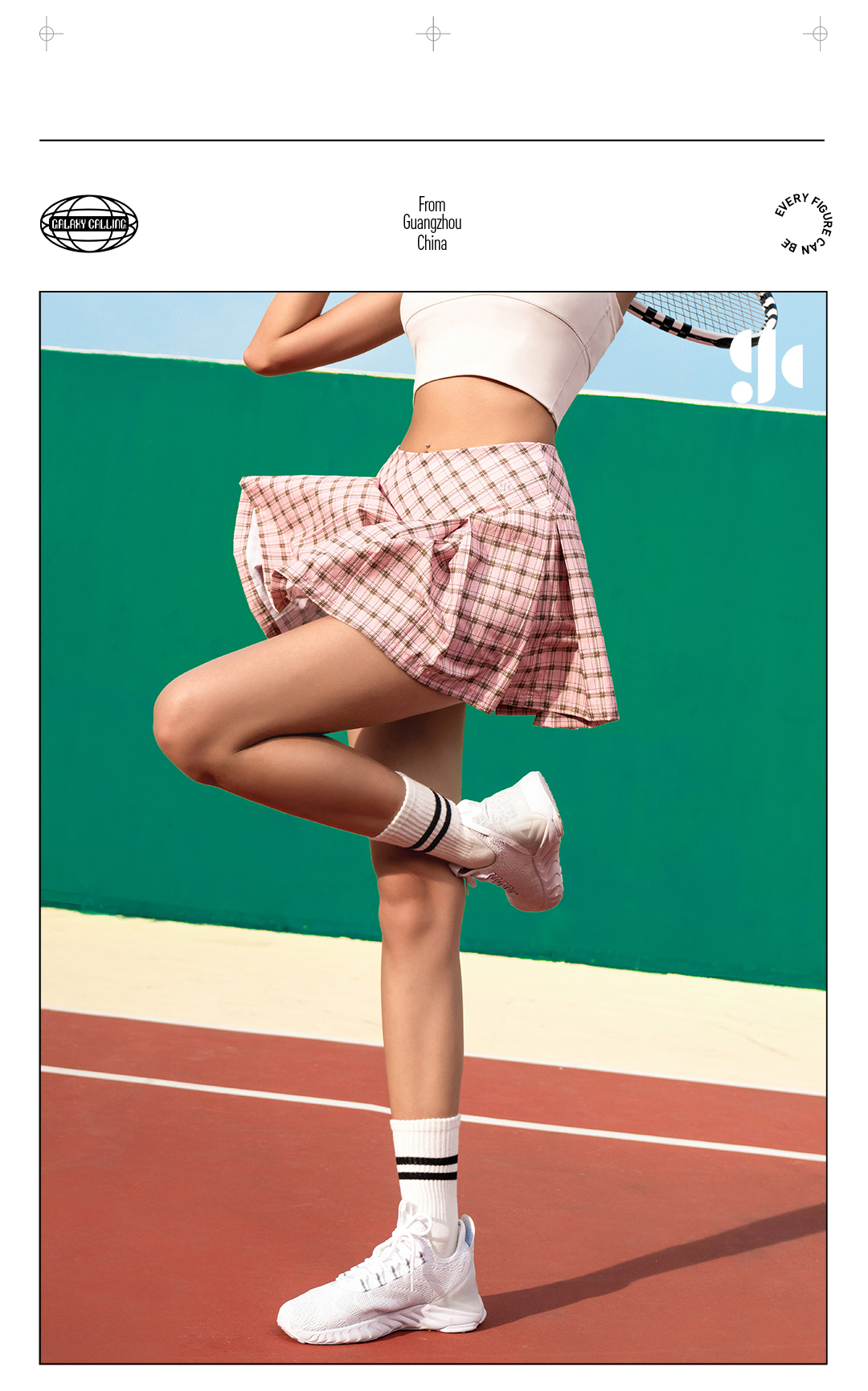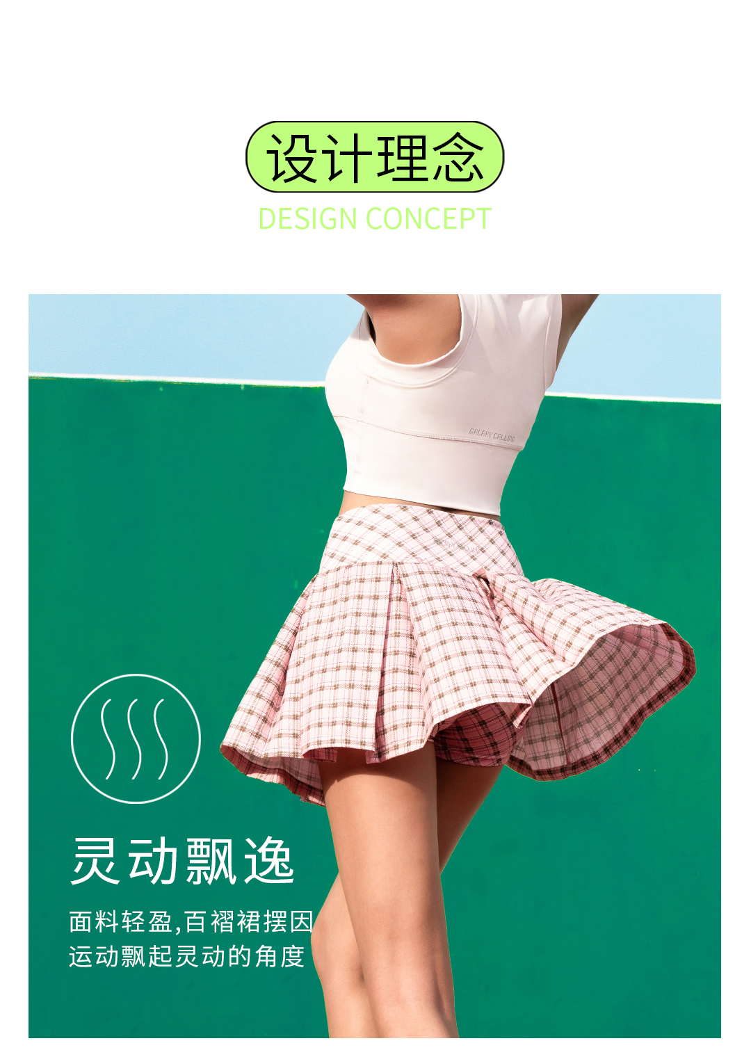 跃牌【欲动春风】系列假两件运动裙子女休闲格子半身裙修身显瘦健身短裙22442(直播仓)此款为欧码,建议拍小一码!