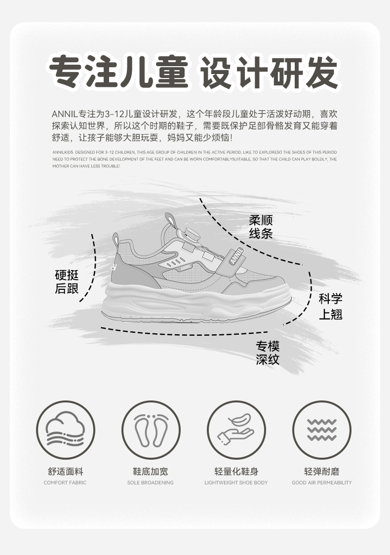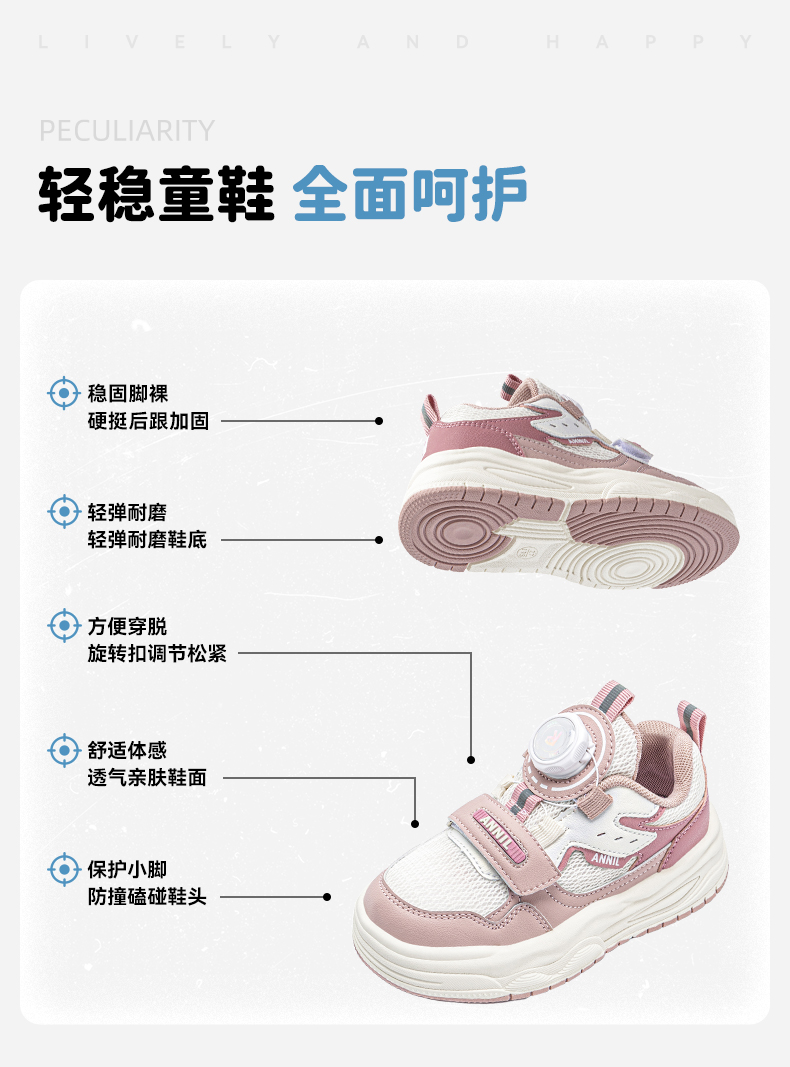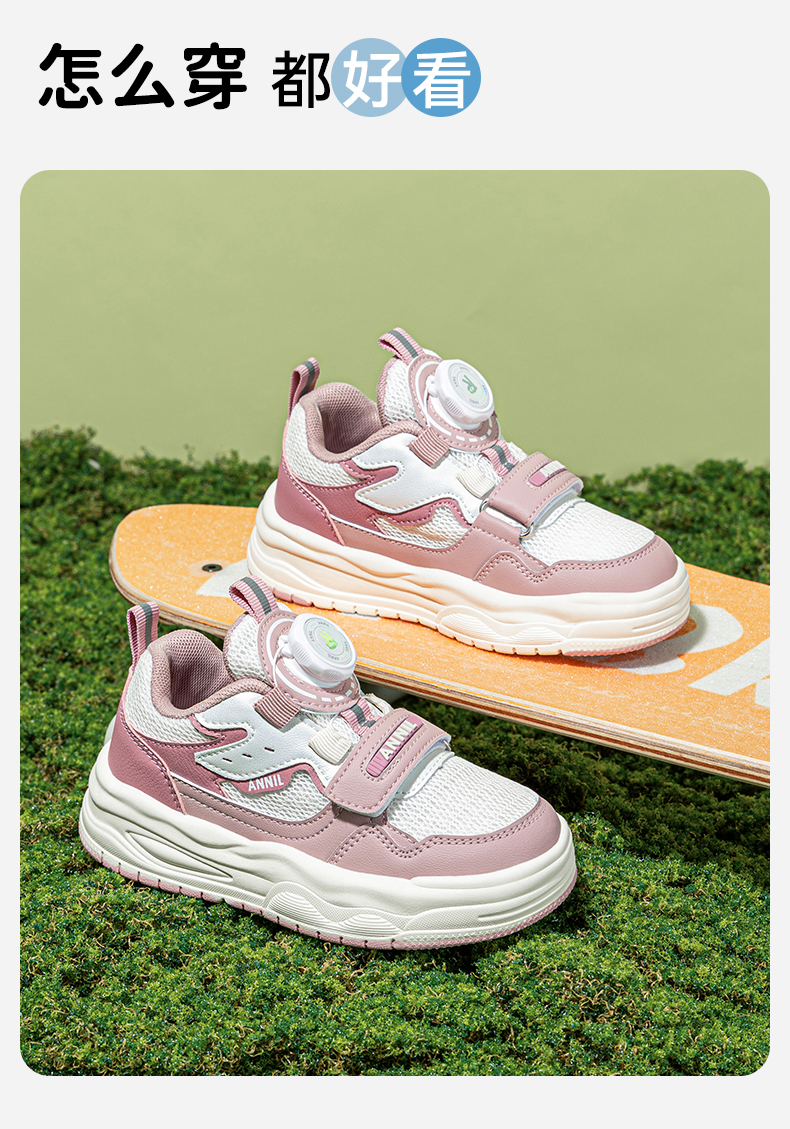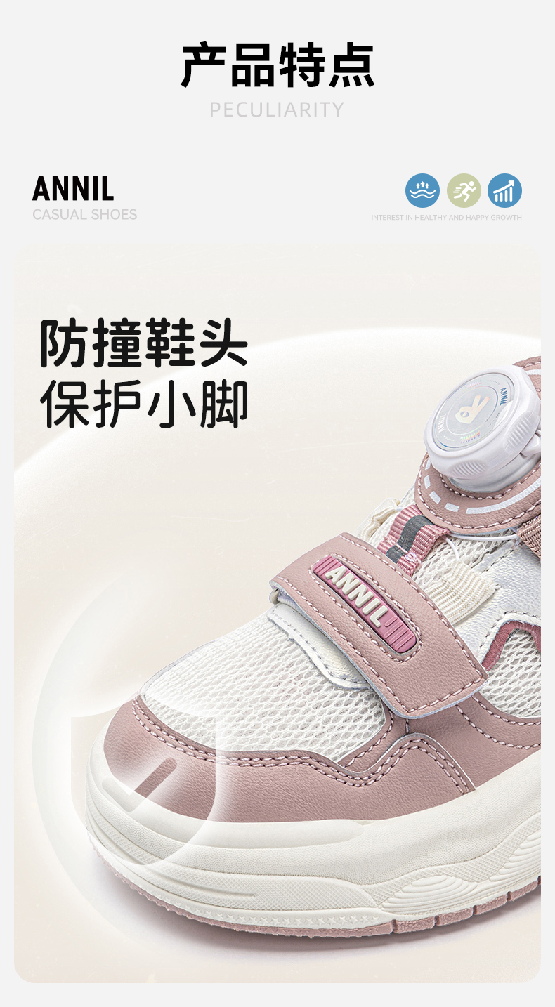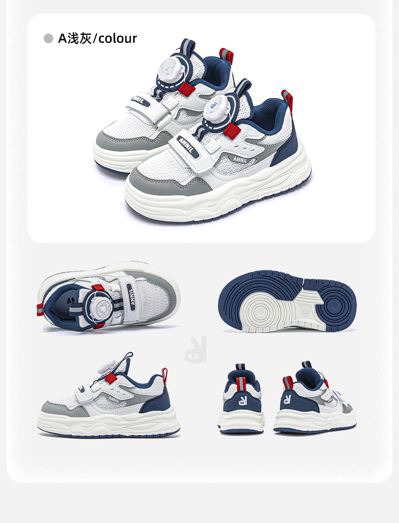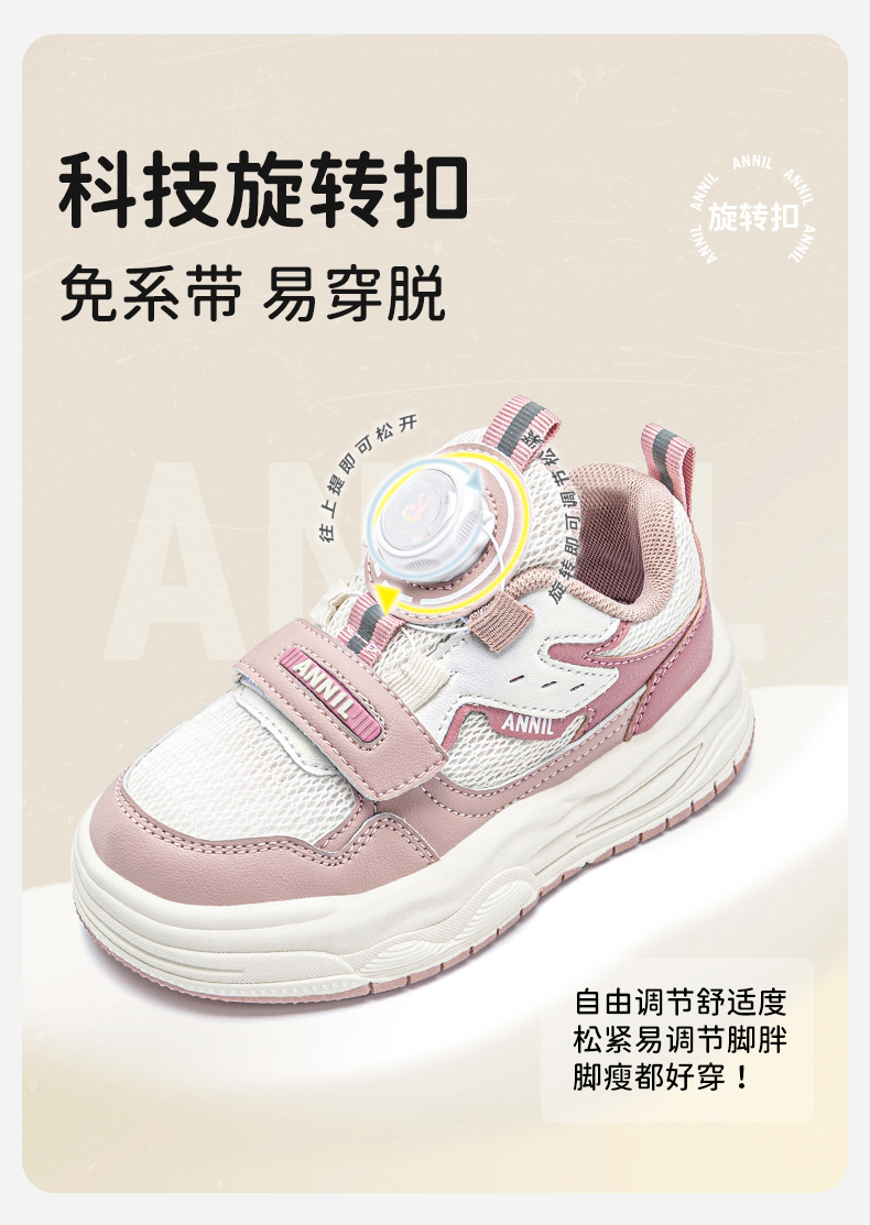 ANNIL/安奈儿男童运动鞋2025新款春季网面男孩儿童鞋子旋钮软底低帮板鞋HM5104176