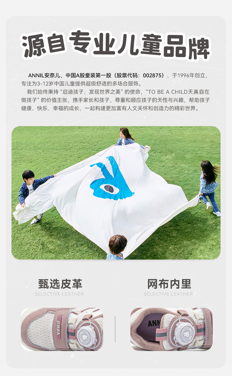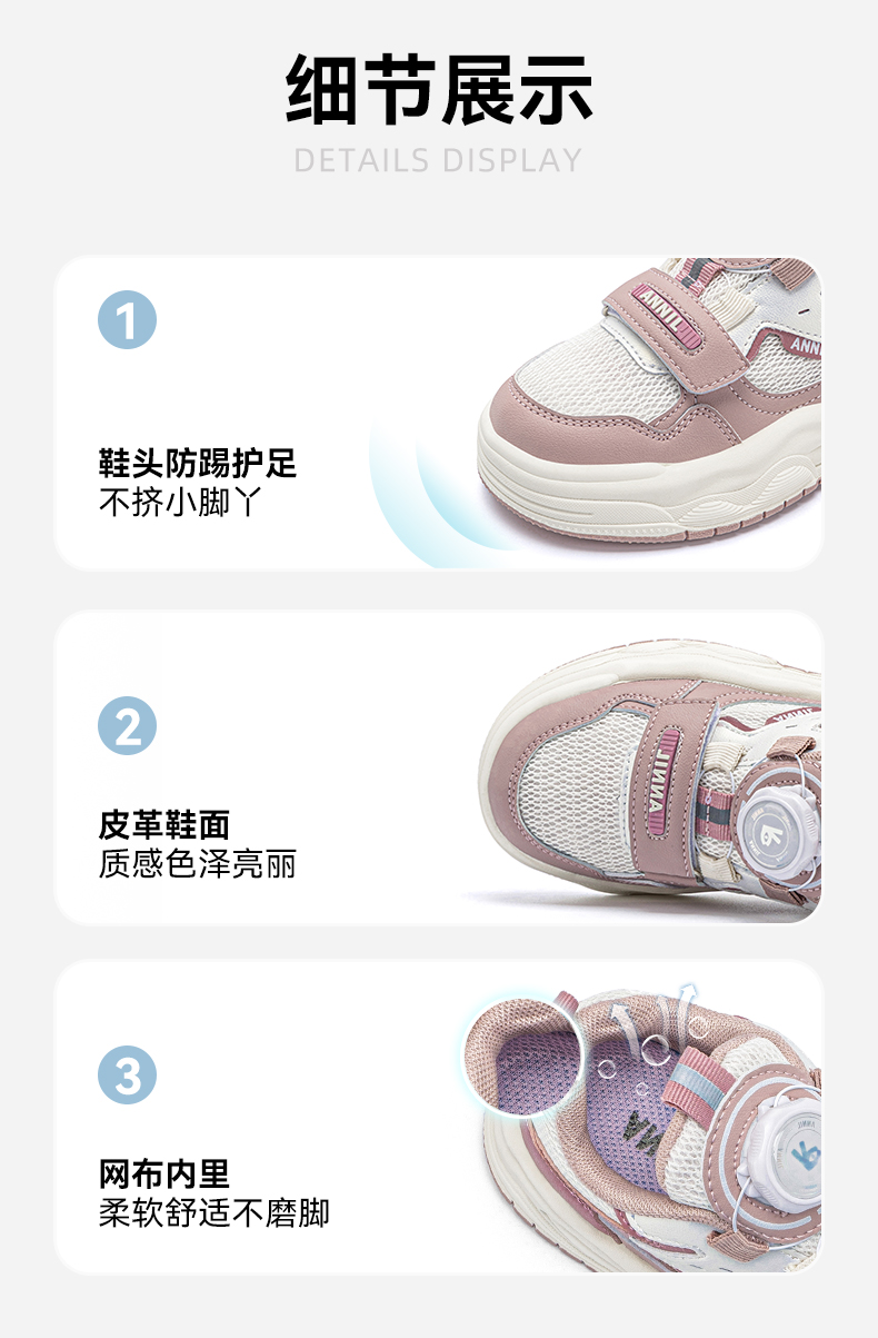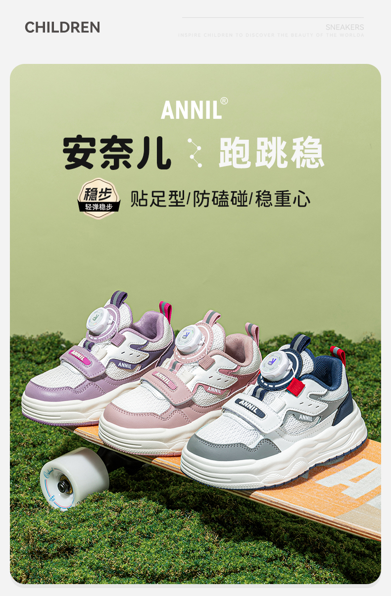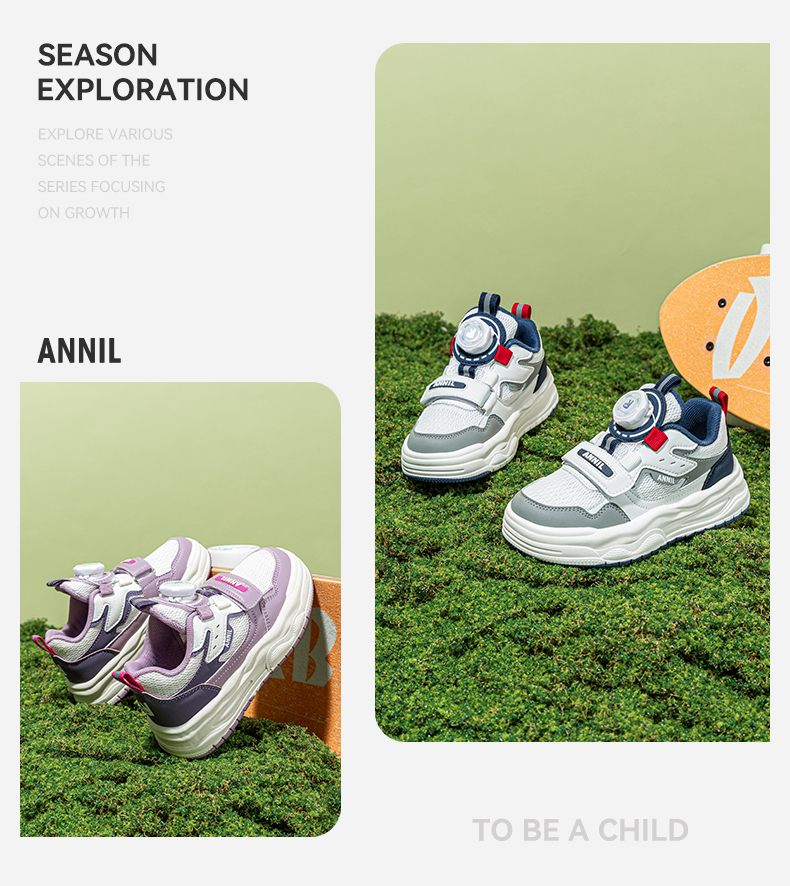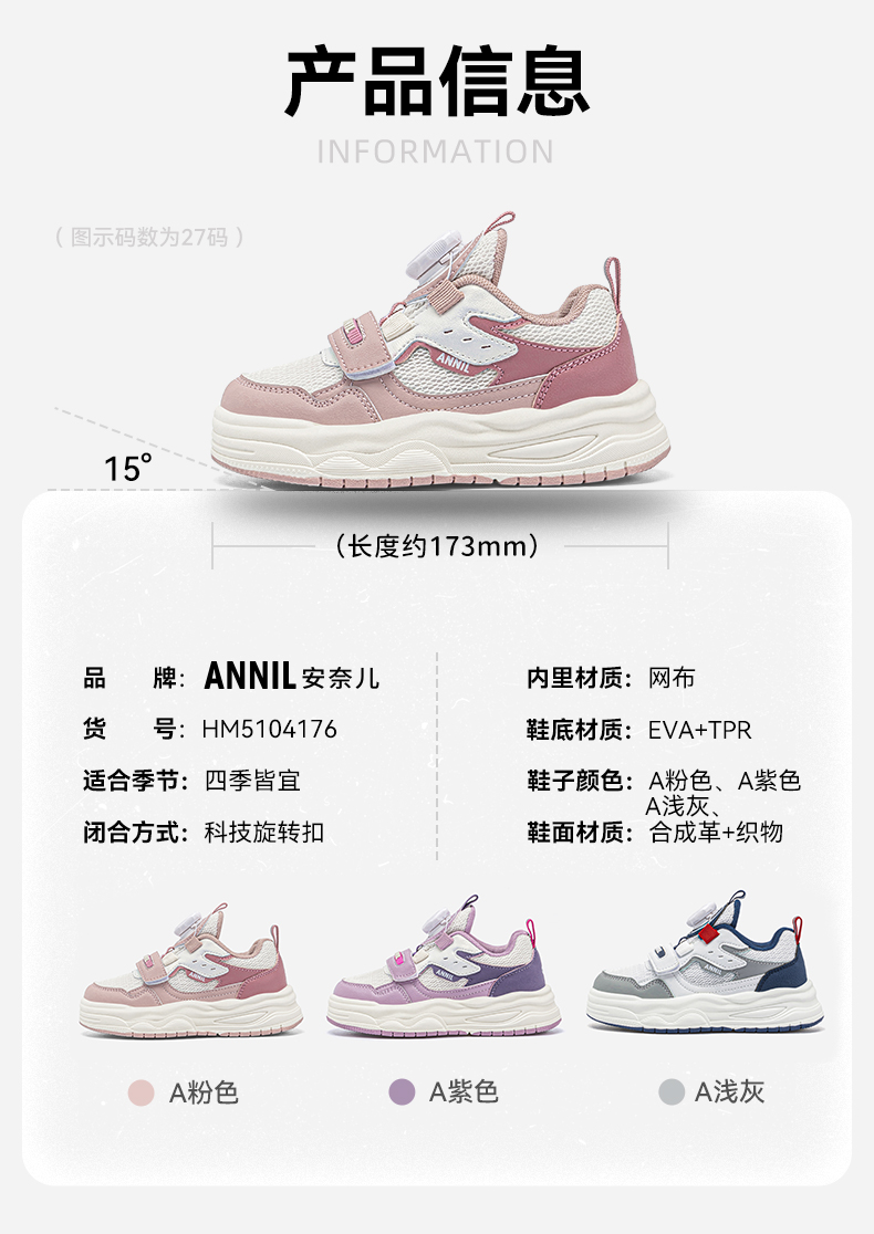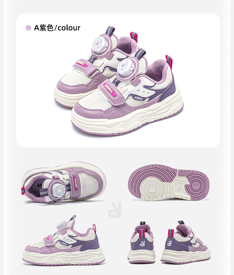 ANNIL/安奈儿男童运动鞋2025新款春季网面男孩儿童鞋子旋钮软底低帮板鞋HM5104176