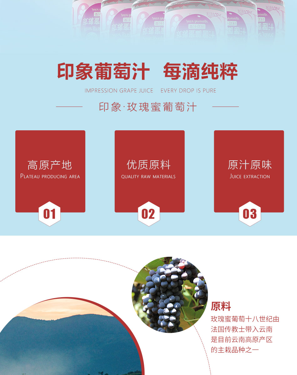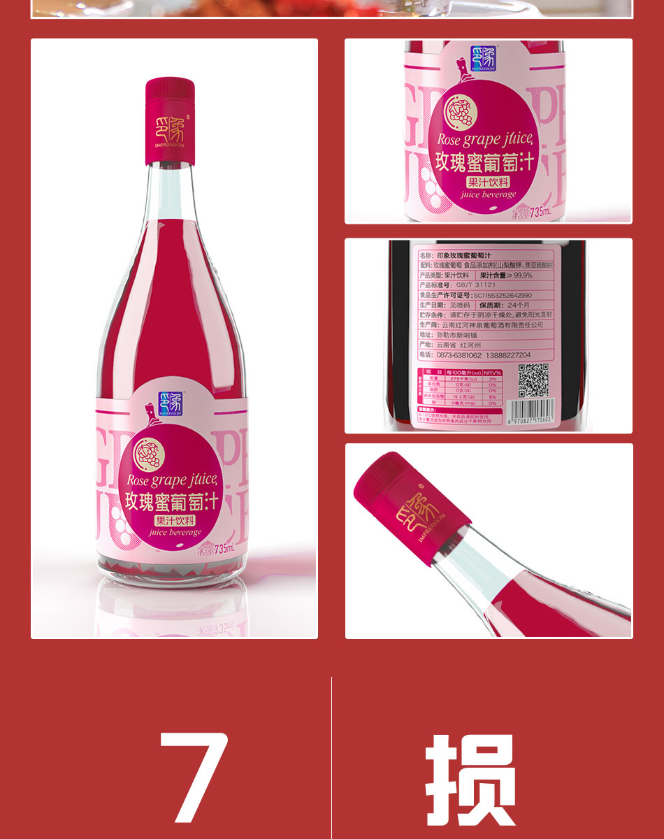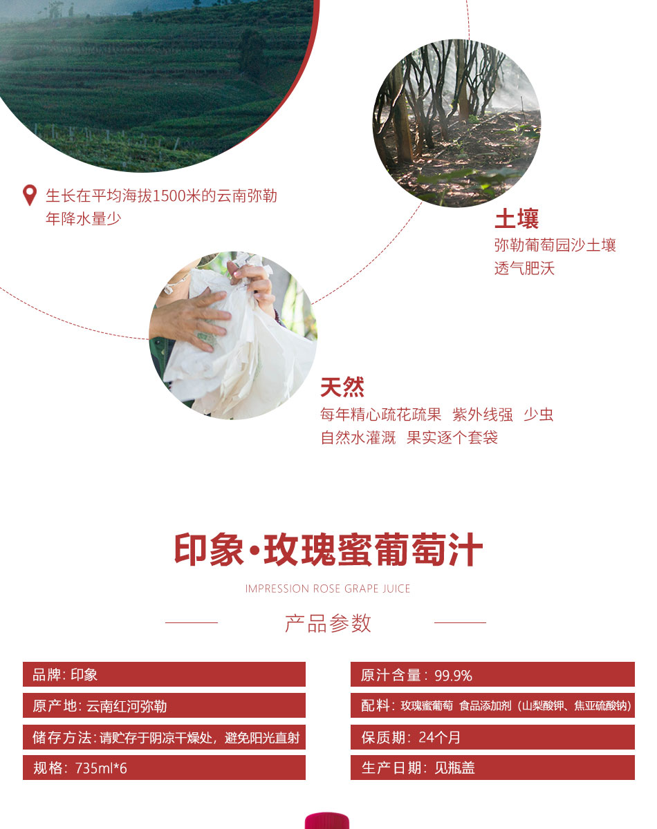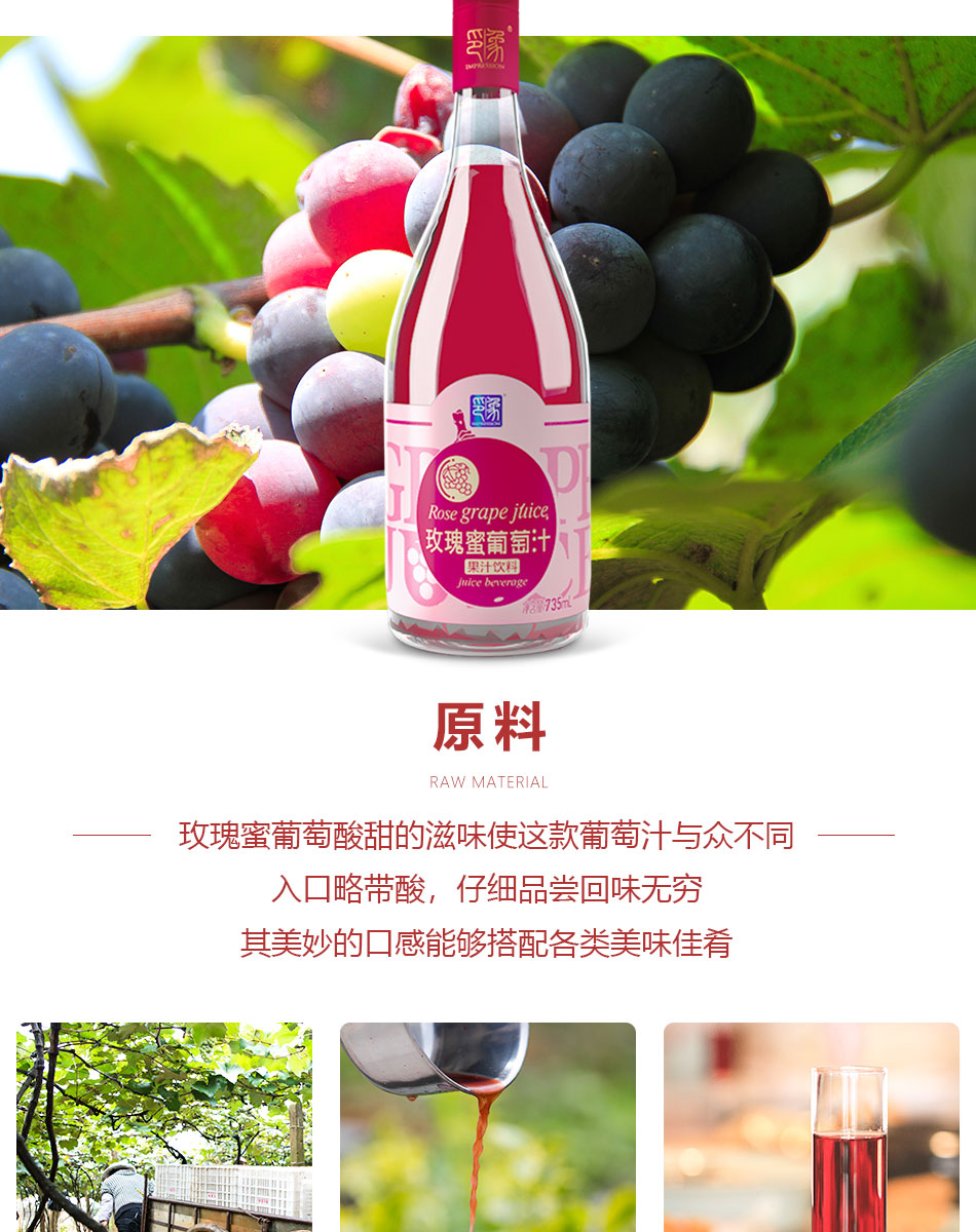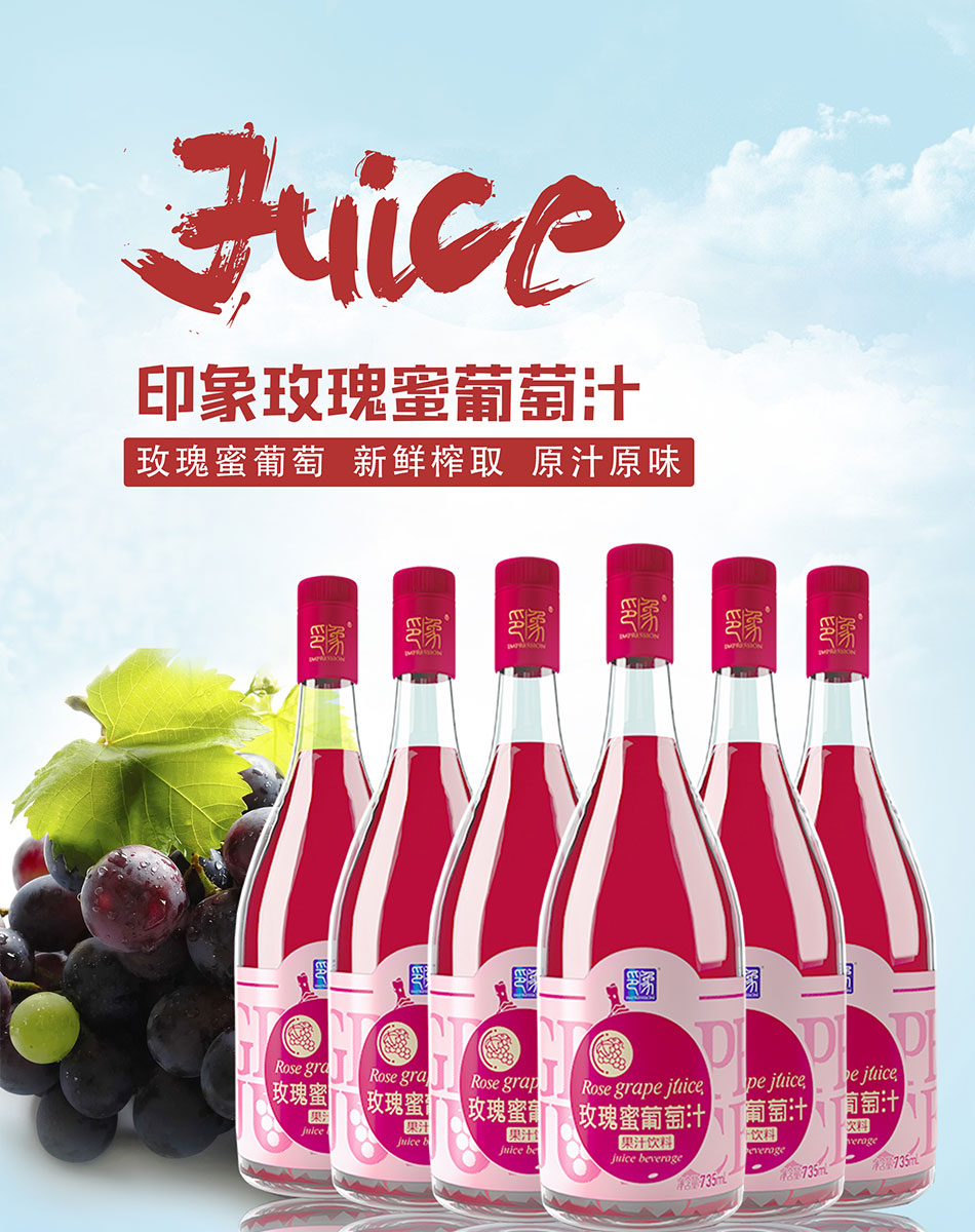 印象玫瑰蜜葡萄汁 无酒精葡萄纯果汁整箱6瓶*735ml