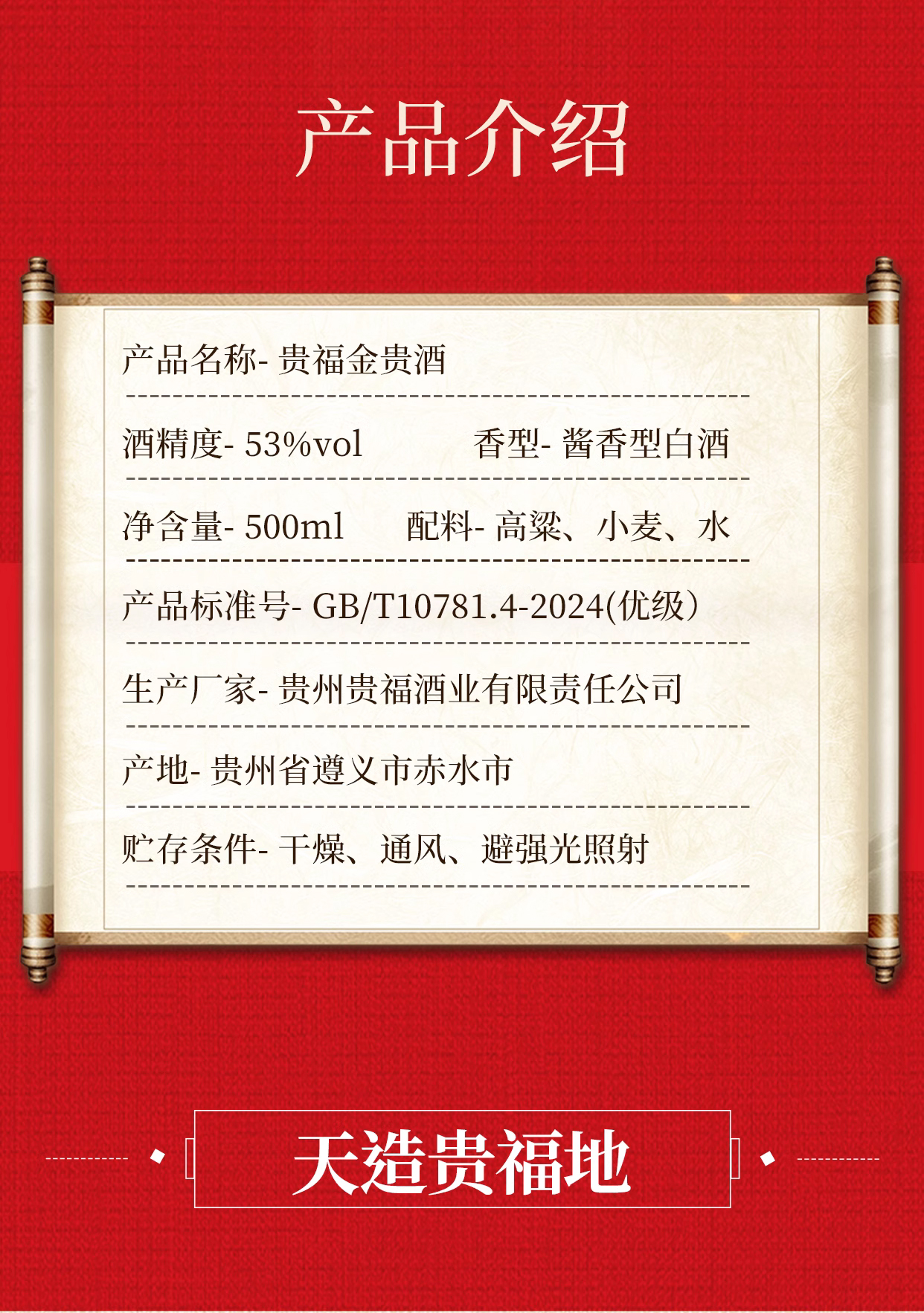 【尊享经典 品味人生】始于1898年贵福金贵酒|贵州酱香型白酒53度,非遗古法工艺纯粮酿造,高端礼盒装500ml,贵州老字号送礼宴请自饮收藏。