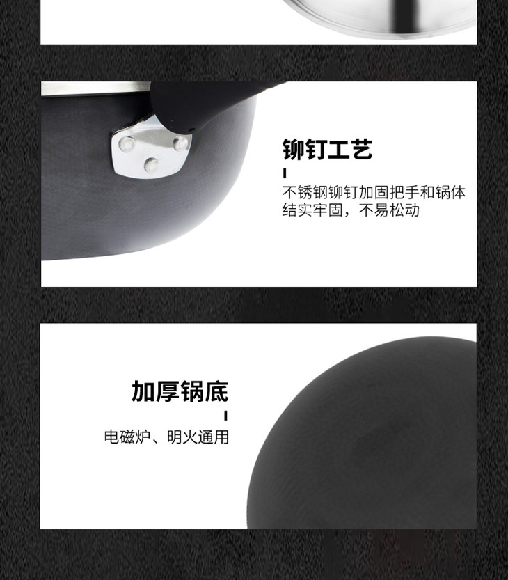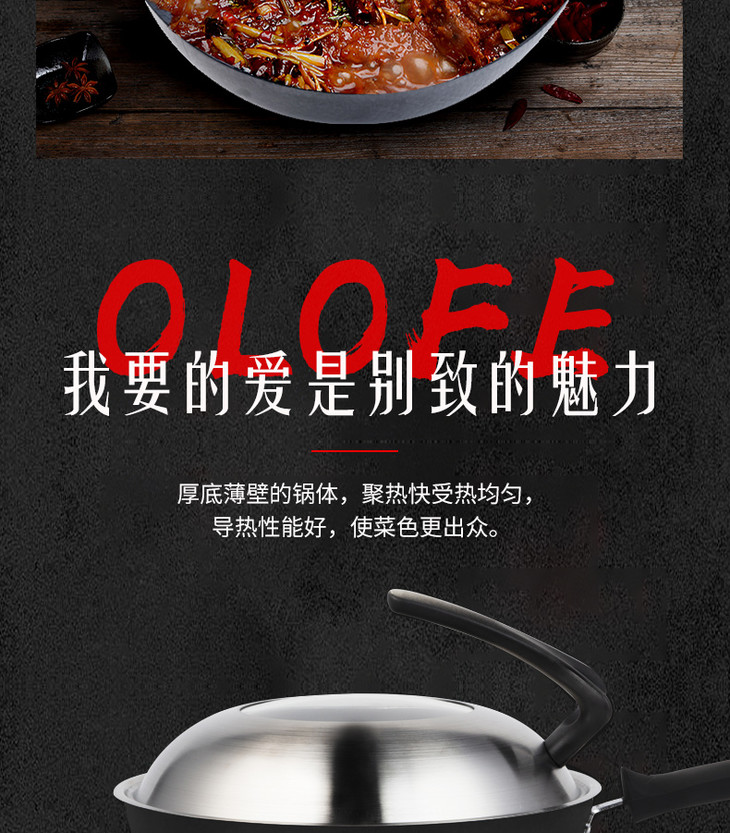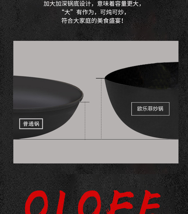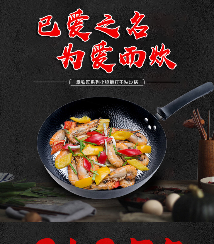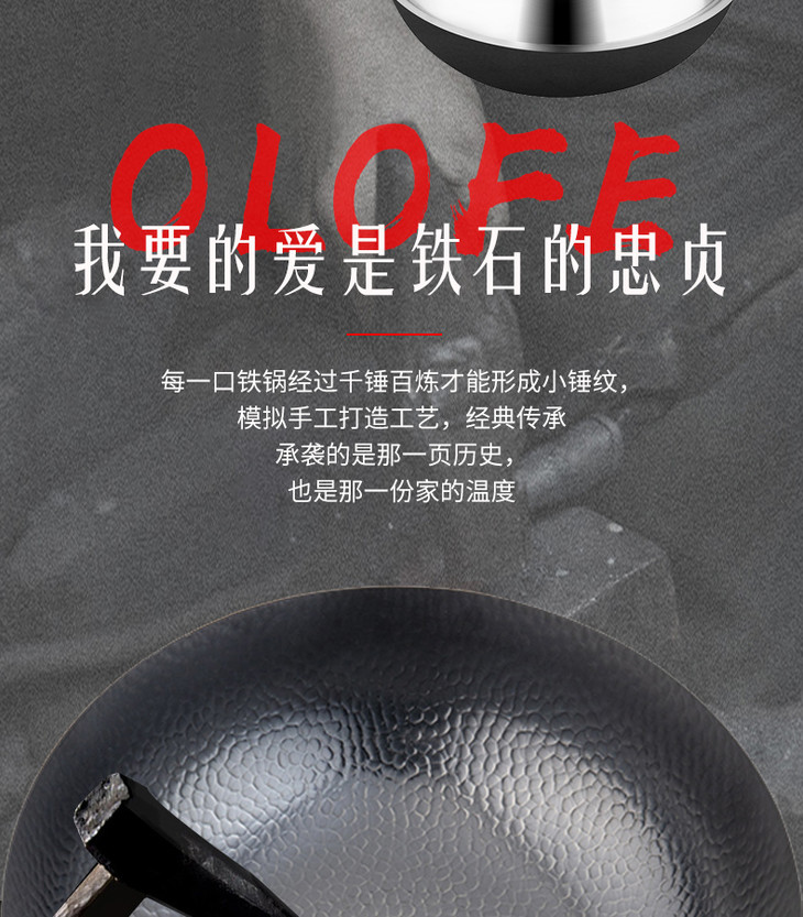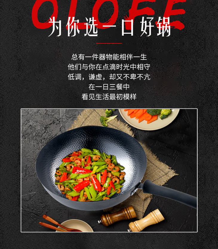 德国欧乐菲铁炒锅中华老铁锅小锤锻打炒菜锅章铁匠系列 32cm