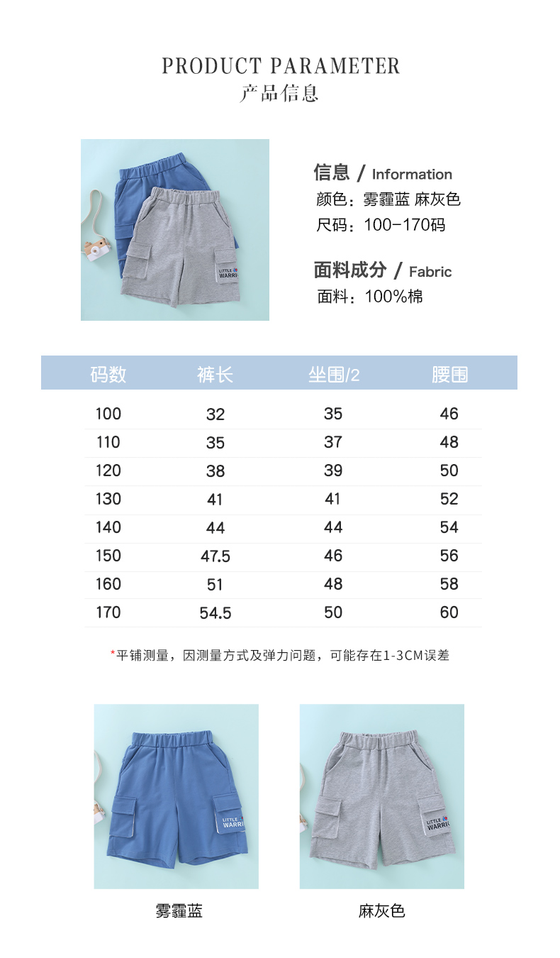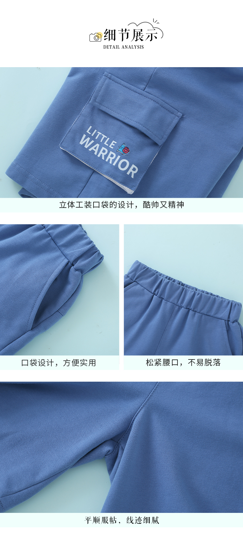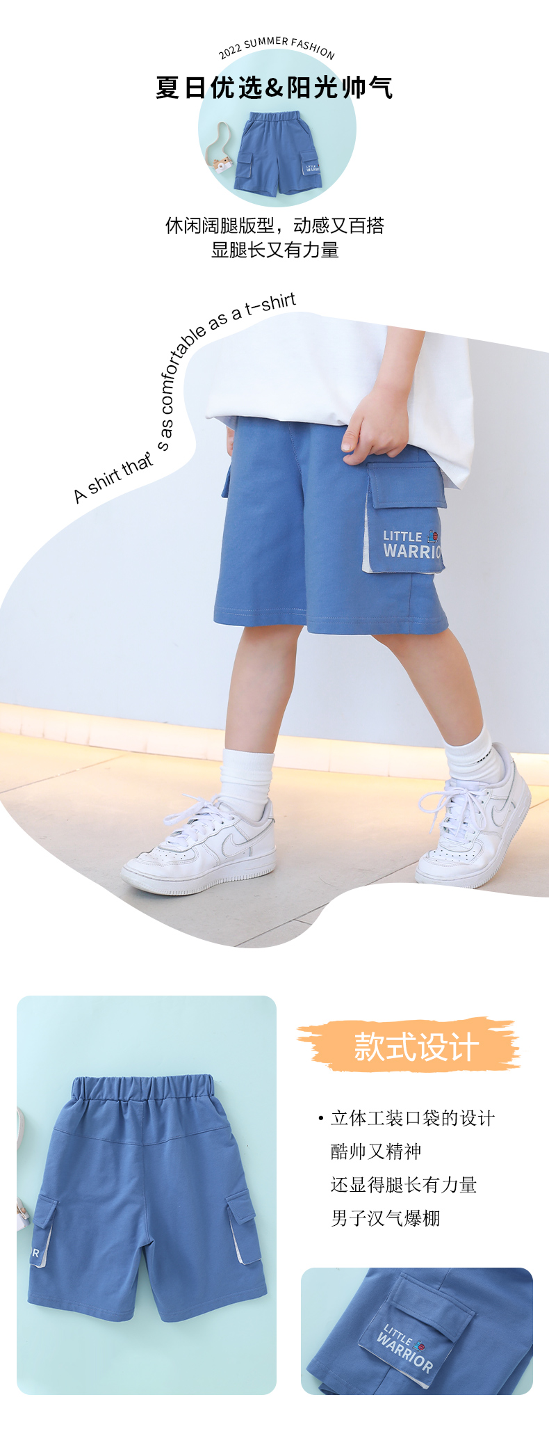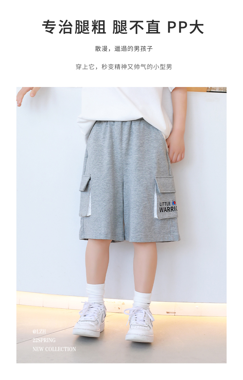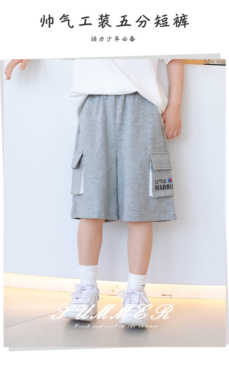 【抄底价清仓】龙之涵小毛圈酷帅男童工装五分短裤 运动款5分裤 全棉 超吸汗透气 弹力款 尺码100-170 龙之涵男童工装五分短裤