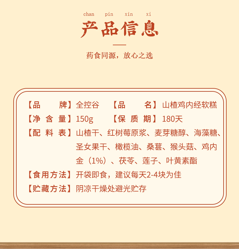 【健康专享】全控谷 山楂鸡内金六物糕 爱上吃饭 清甜不腻 150g/盒