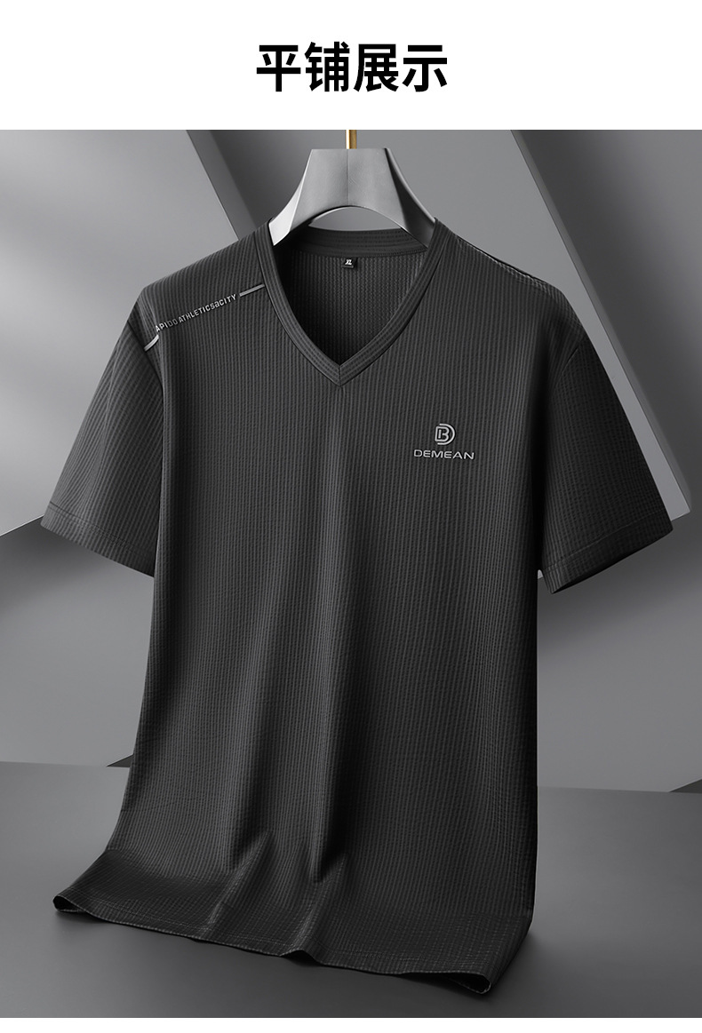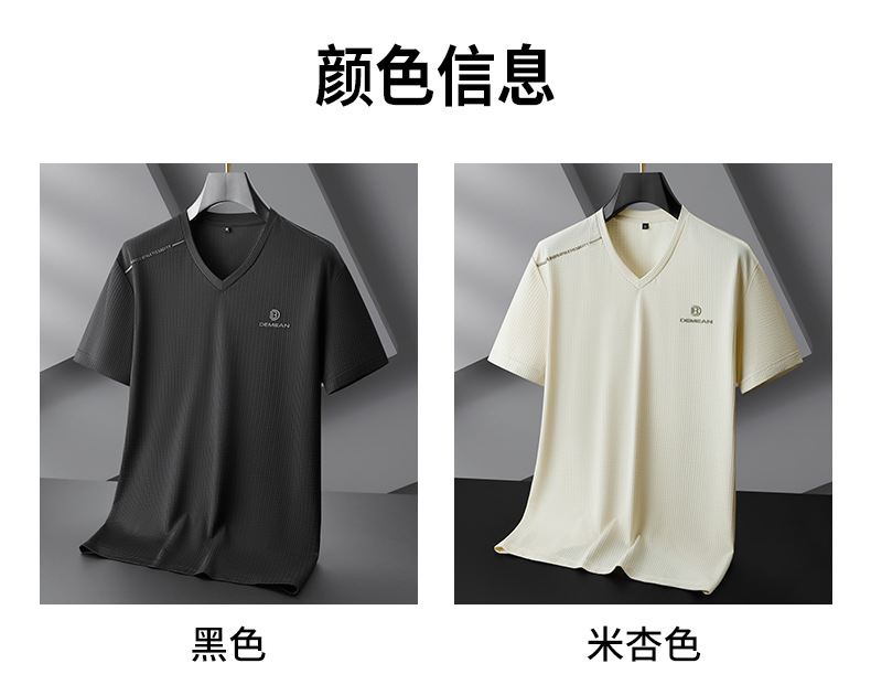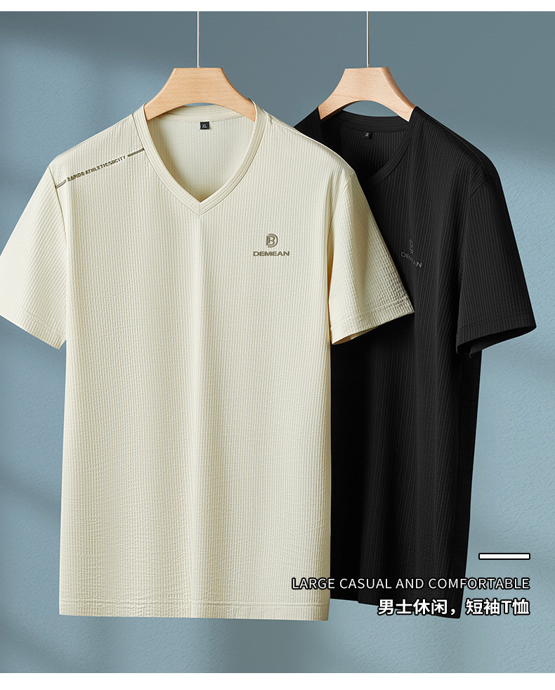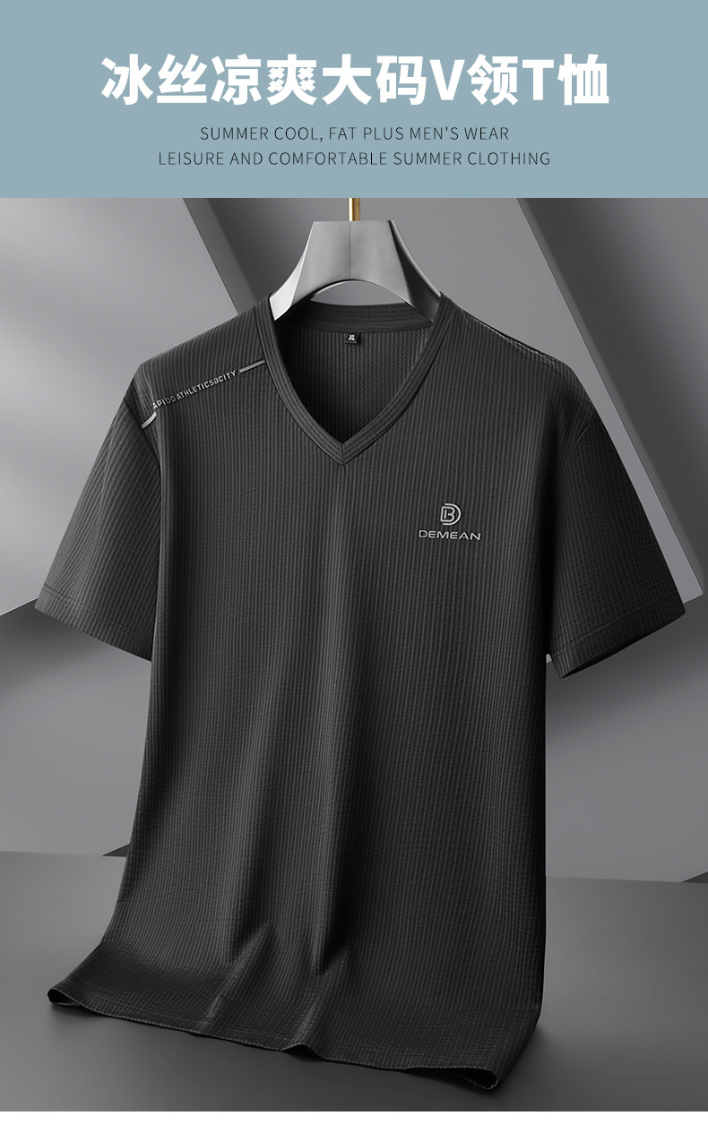 【V领】【DPF】大依优型大码短袖T恤冰丝凉感V领半袖体恤加肥大码休闲上衣胖子夏装新款男士