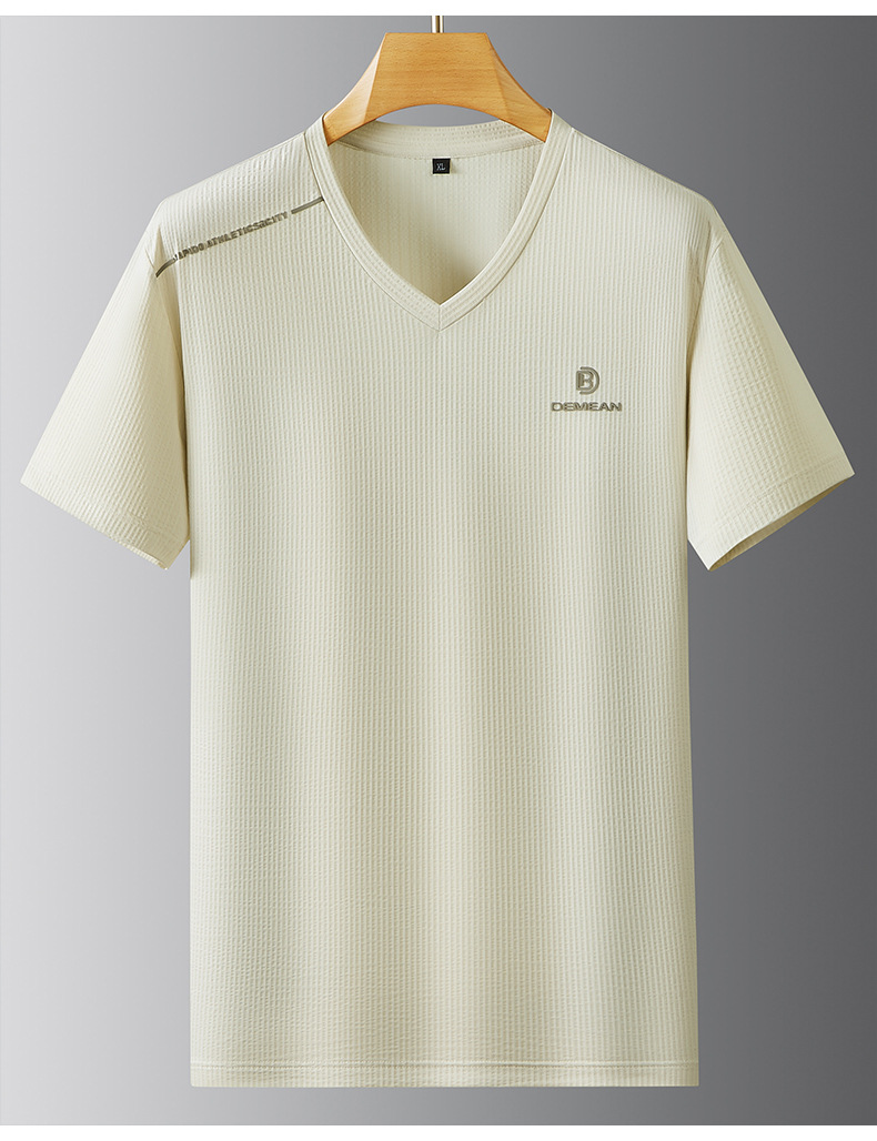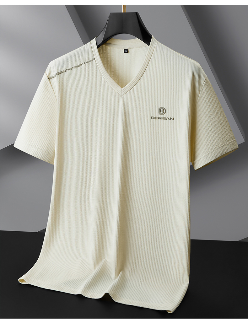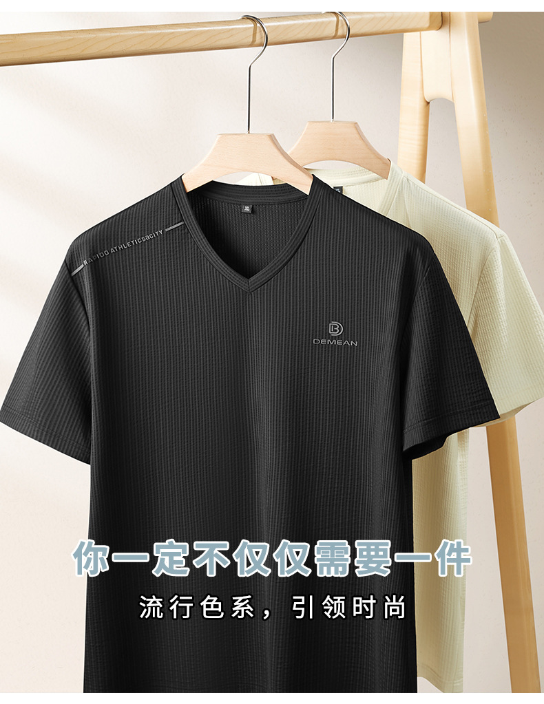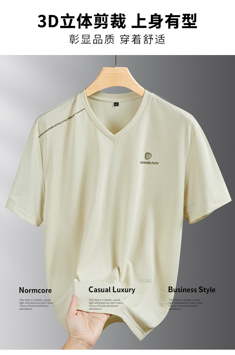 【V领】【DPF】大依优型大码短袖T恤冰丝凉感V领半袖体恤加肥大码休闲上衣胖子夏装新款男士