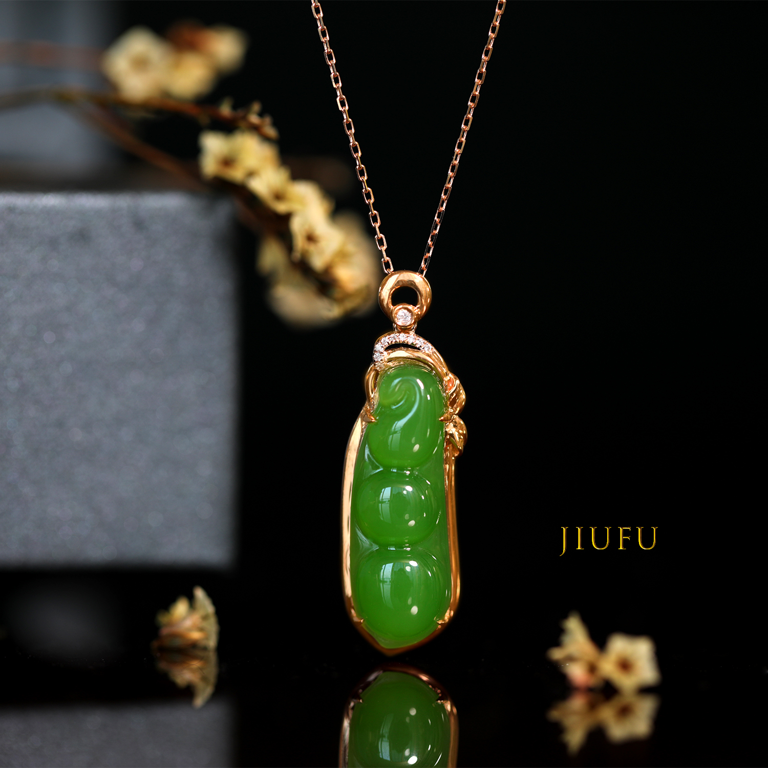 玉石尺寸:豆荚8*25mm/苹果绿 配镶:钻石