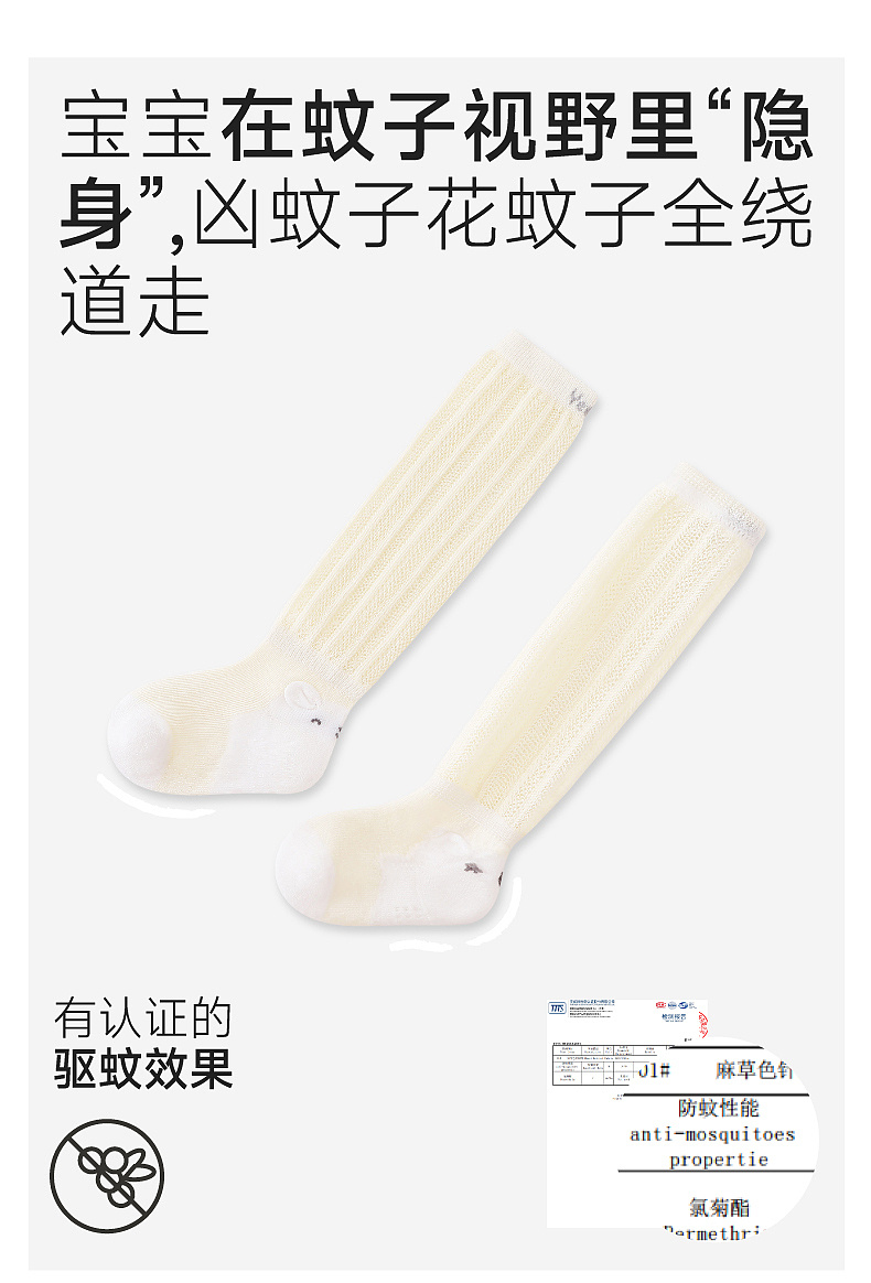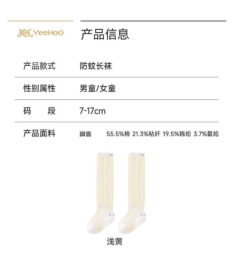 【商场同款】英氏儿童袜子10A抗菌女童长袜防蚊男童春夏膝上长袜