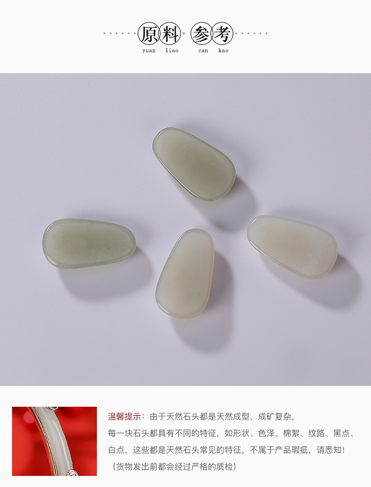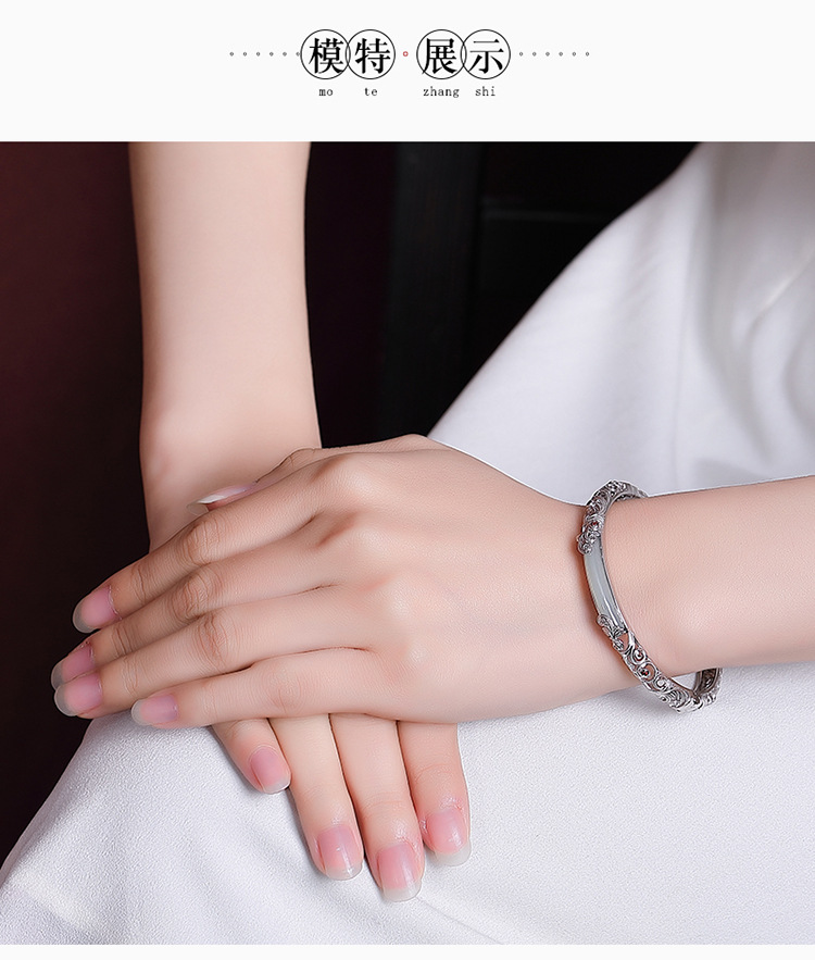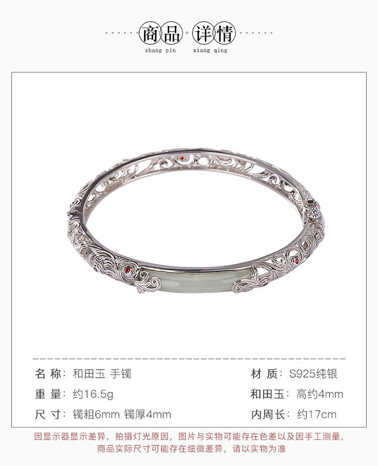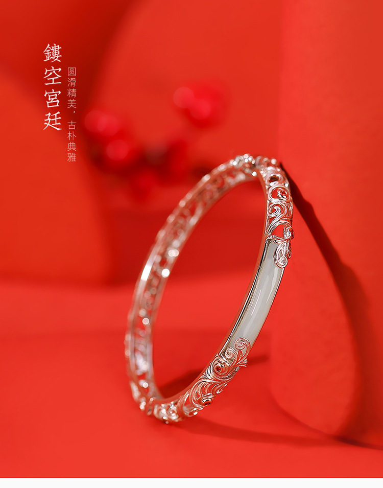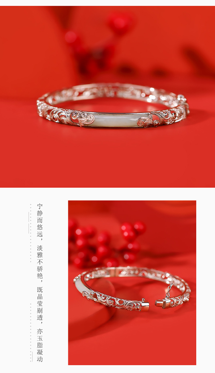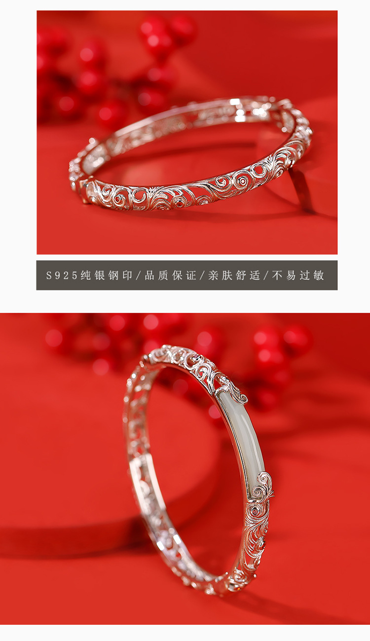 S925纯银和田玉国潮宫廷设计感,祥云如意镂空无事牌手镯手环CW- SZ01681