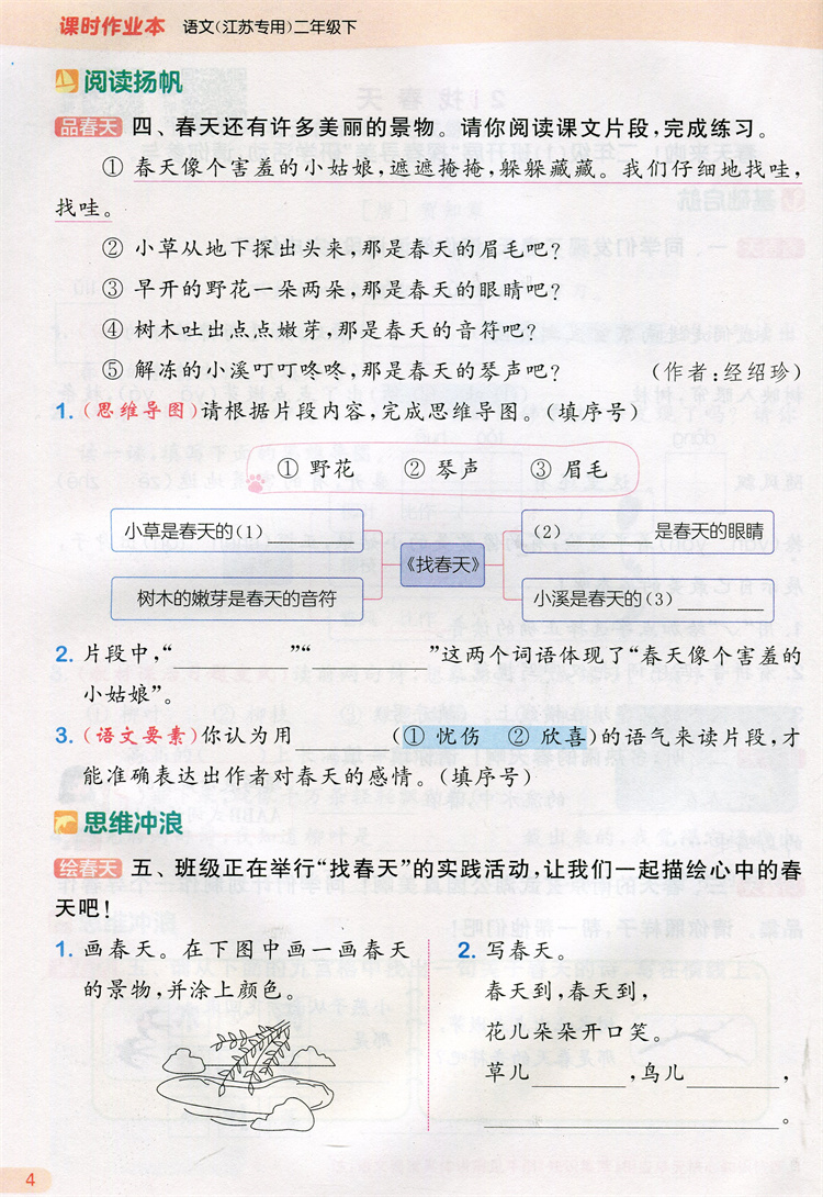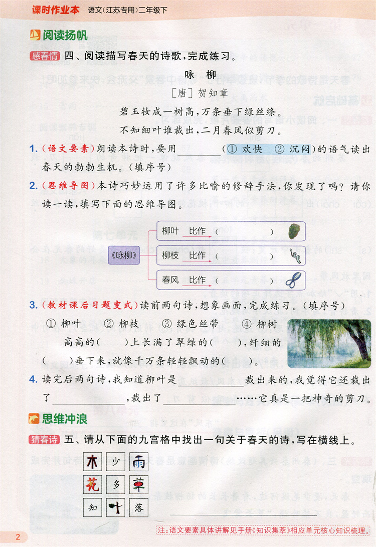 2026年春 语文课时作业本2下 配人教部编版 二年级下册 小学同步教辅