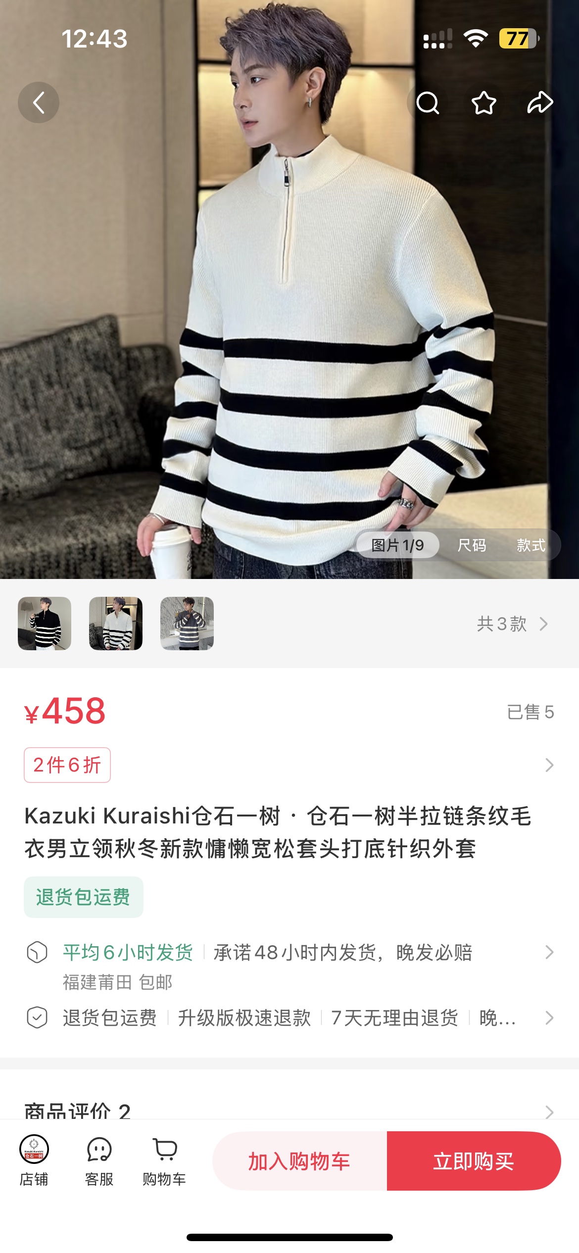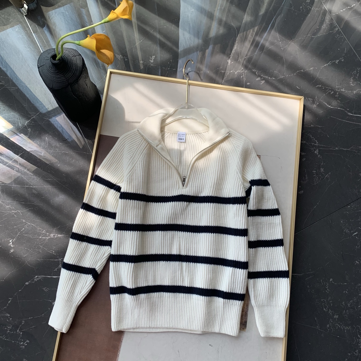 森ma 条纹百搭半拉链翻领条纹衫针织毛衣 男女同款 秋冬必备🧣美式复古毛衣