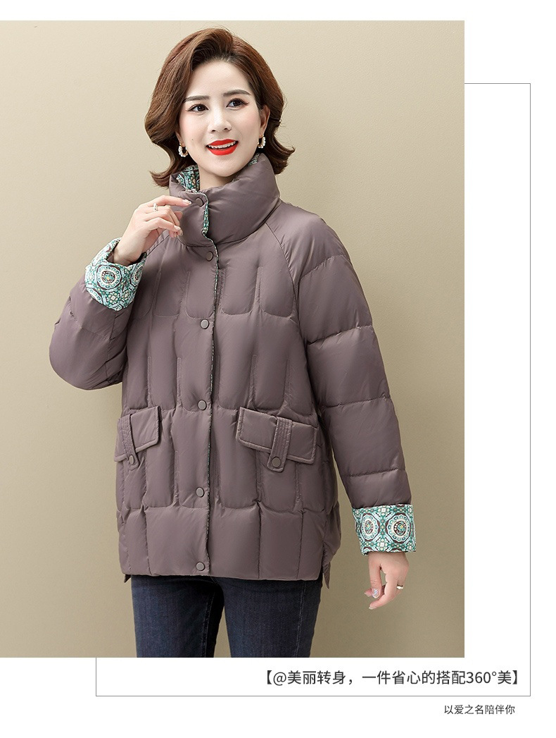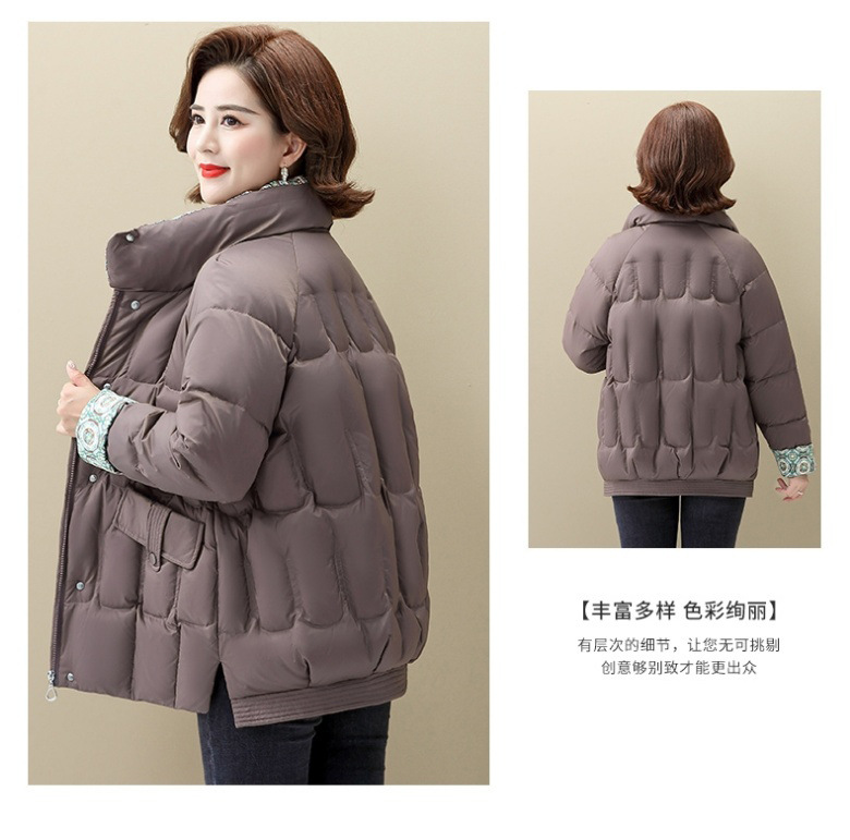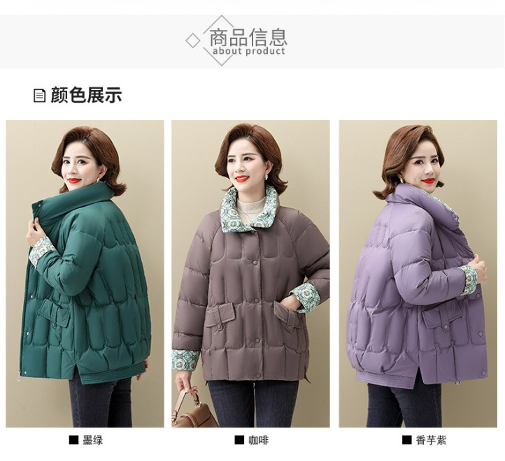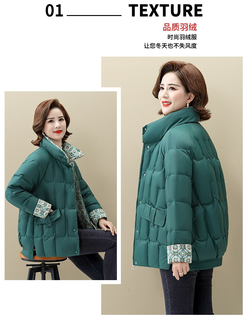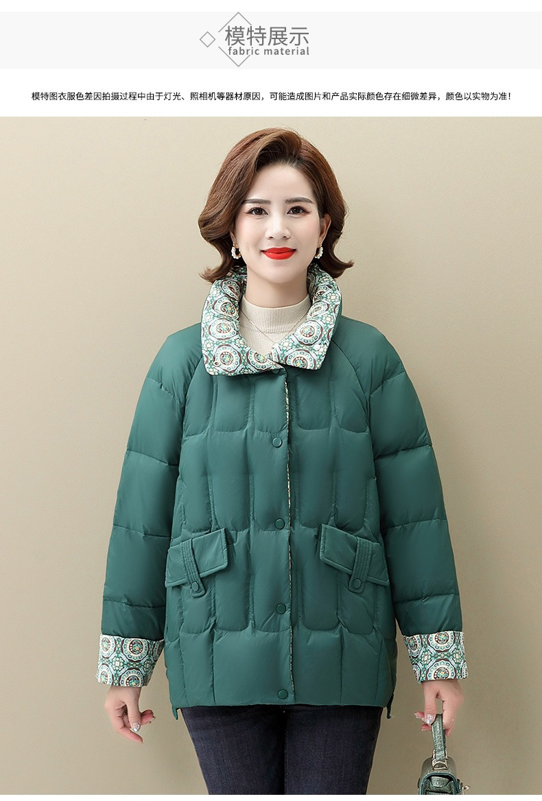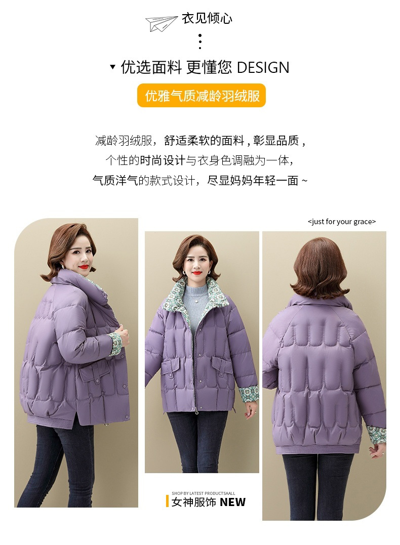 SJJ妈妈装冬装羽绒服2022年新款中年女装短款外套老年秋冬白鸭绒棉衣