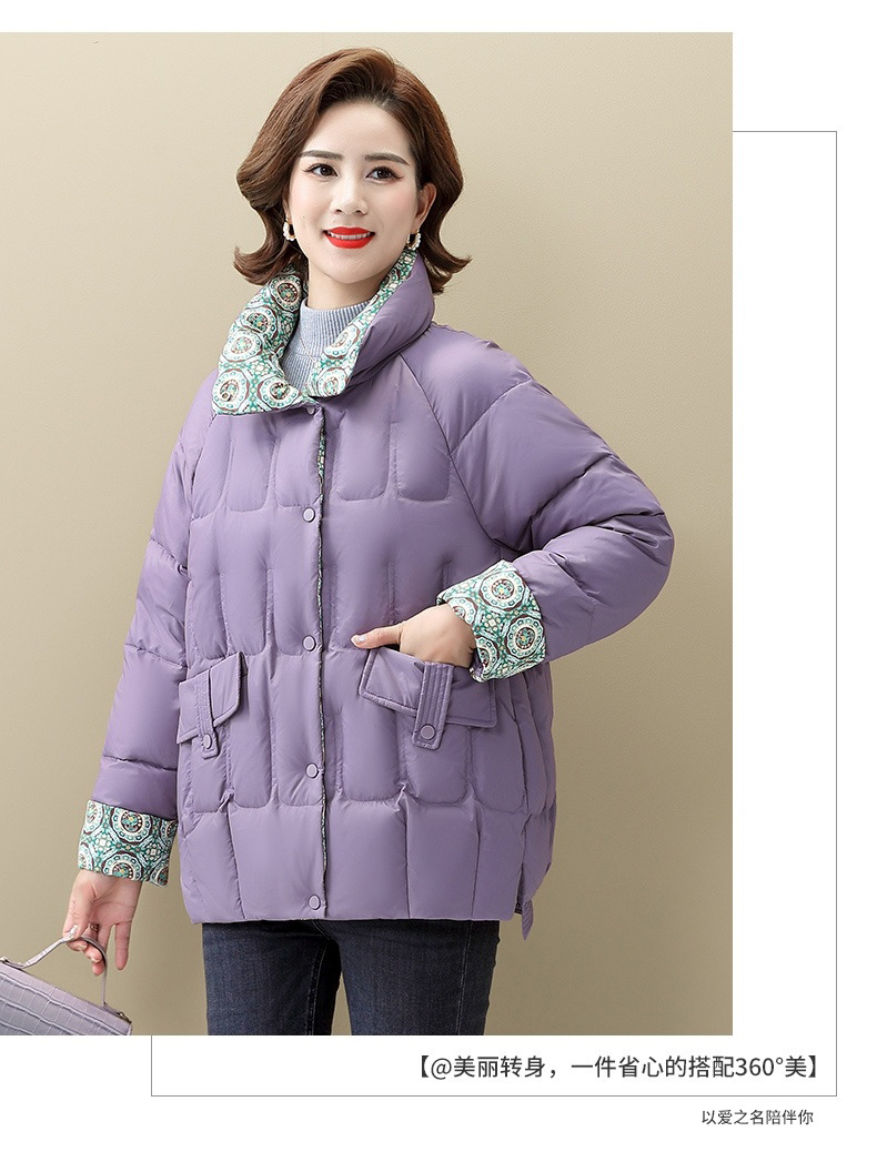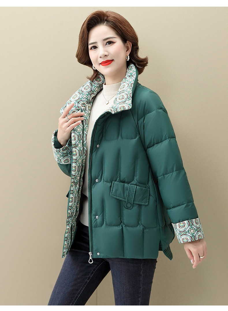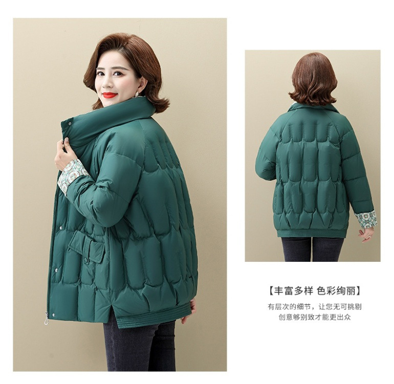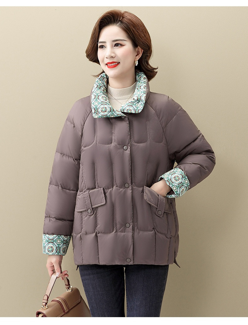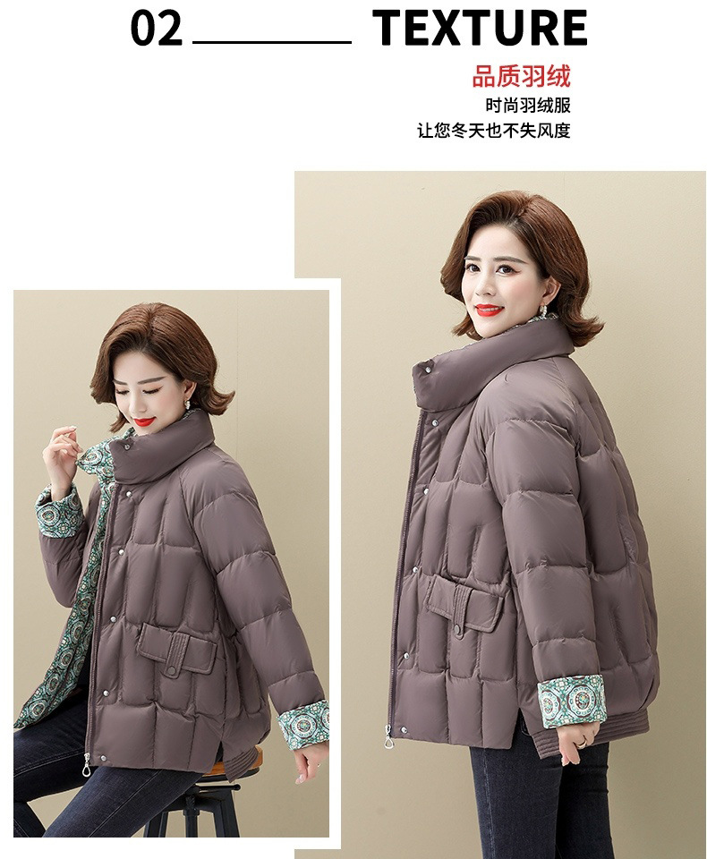 SJJ妈妈装冬装羽绒服2022年新款中年女装短款外套老年秋冬白鸭绒棉衣