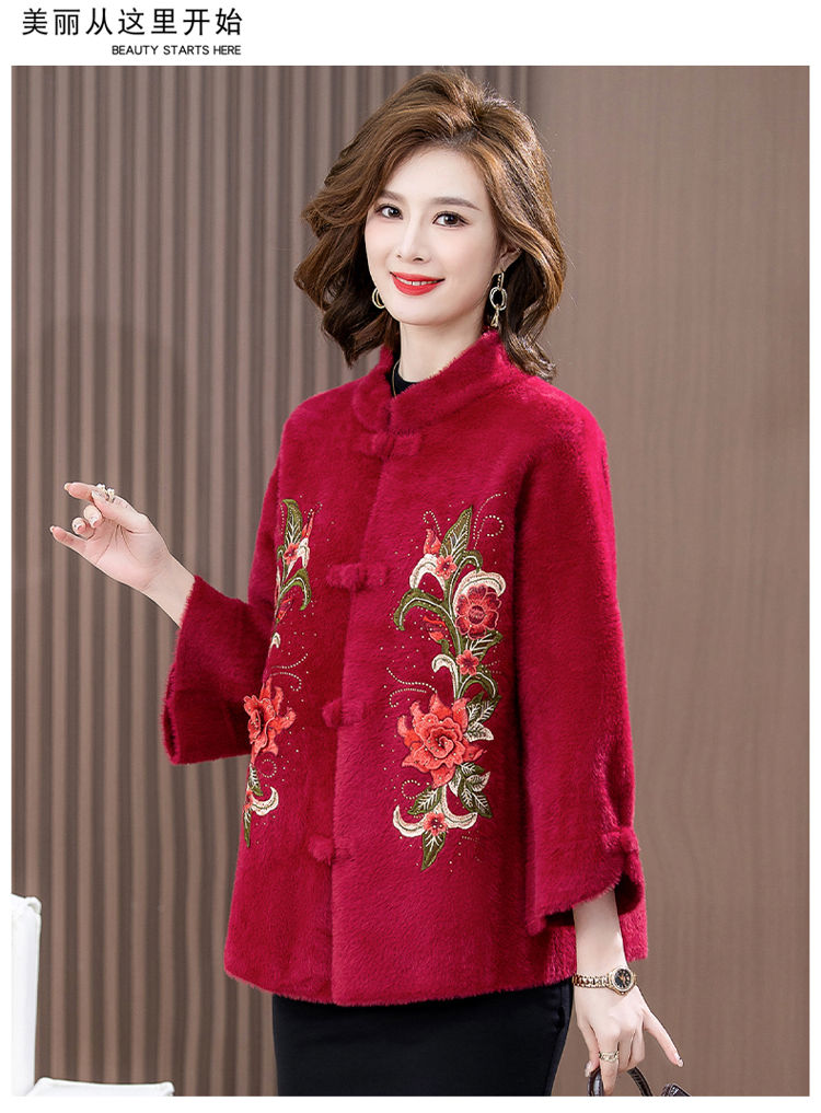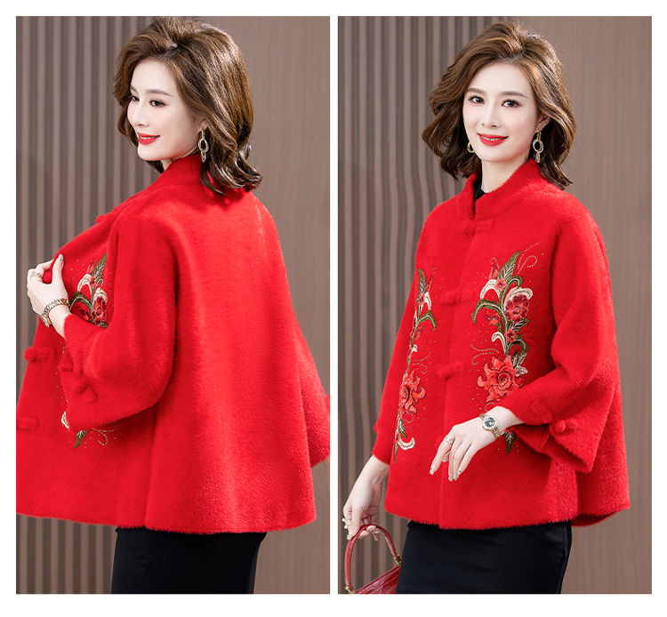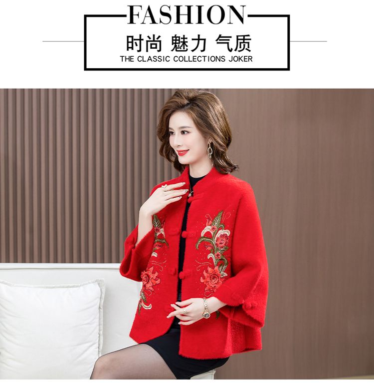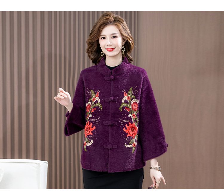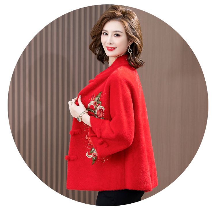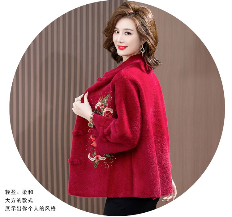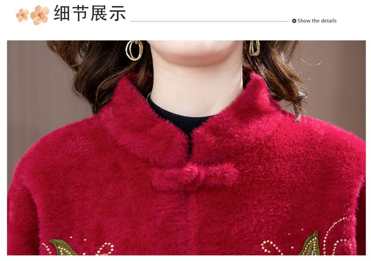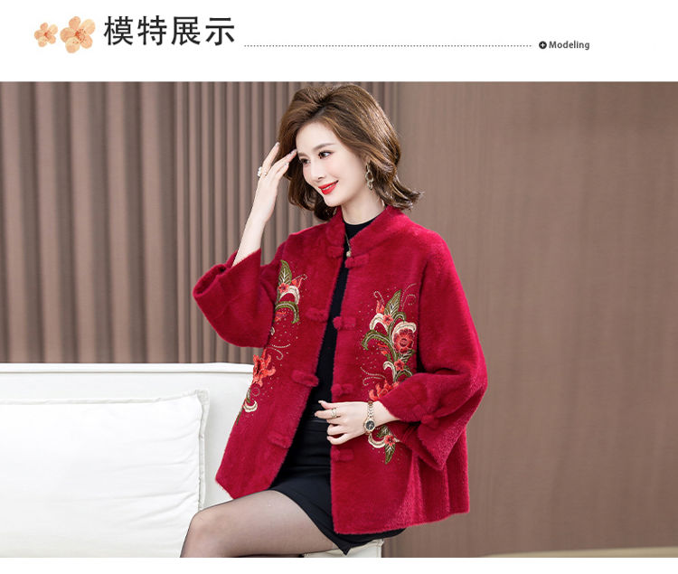 P11275秋冬外套2022新款洋气中老年女装大码水貂绒开衫喜婆婆上衣