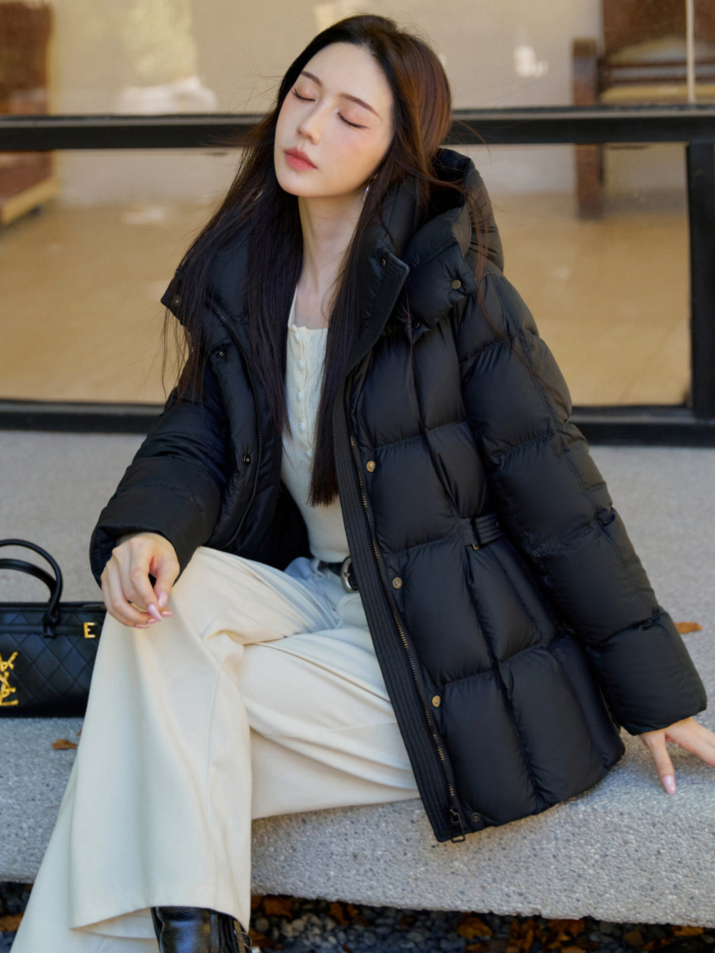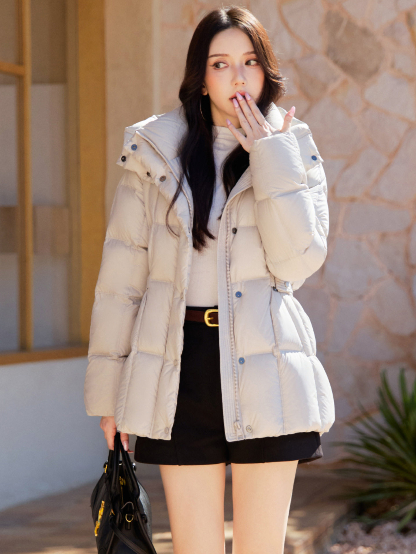 「自」全新升级【铂金会员809/天猫1089/差价280】(02205)洛诗琳气质一手长羽绒服2025冬季新款修身显瘦收腰加厚外套