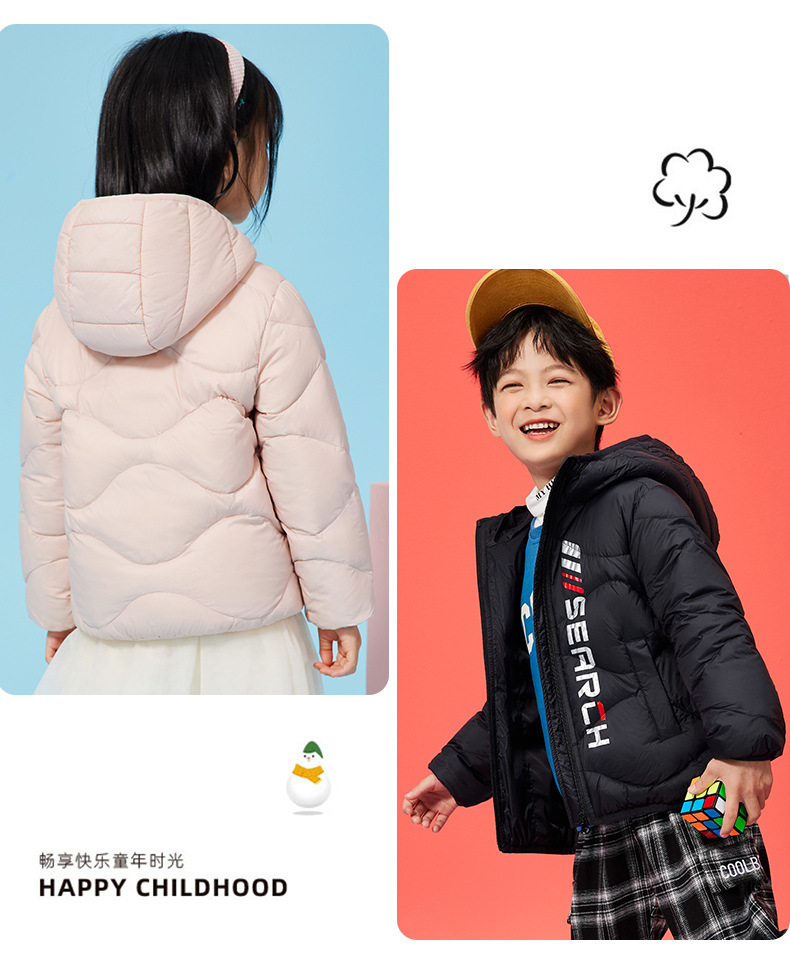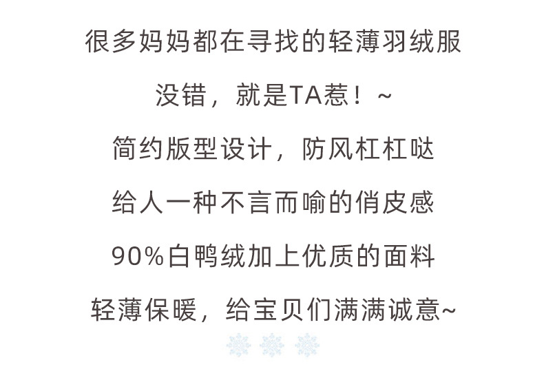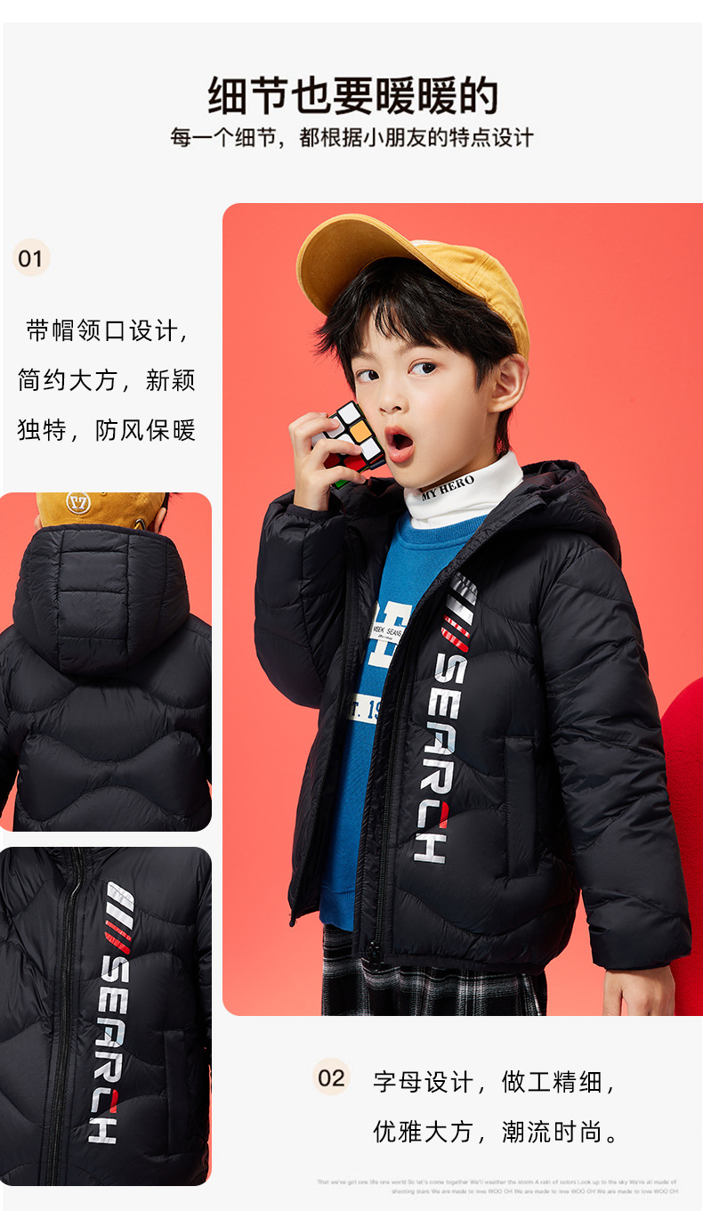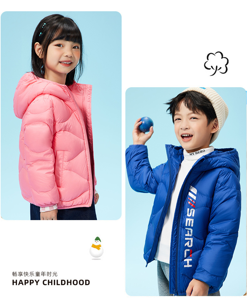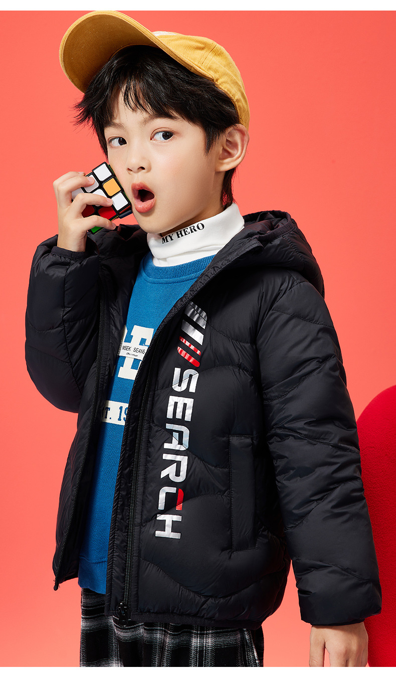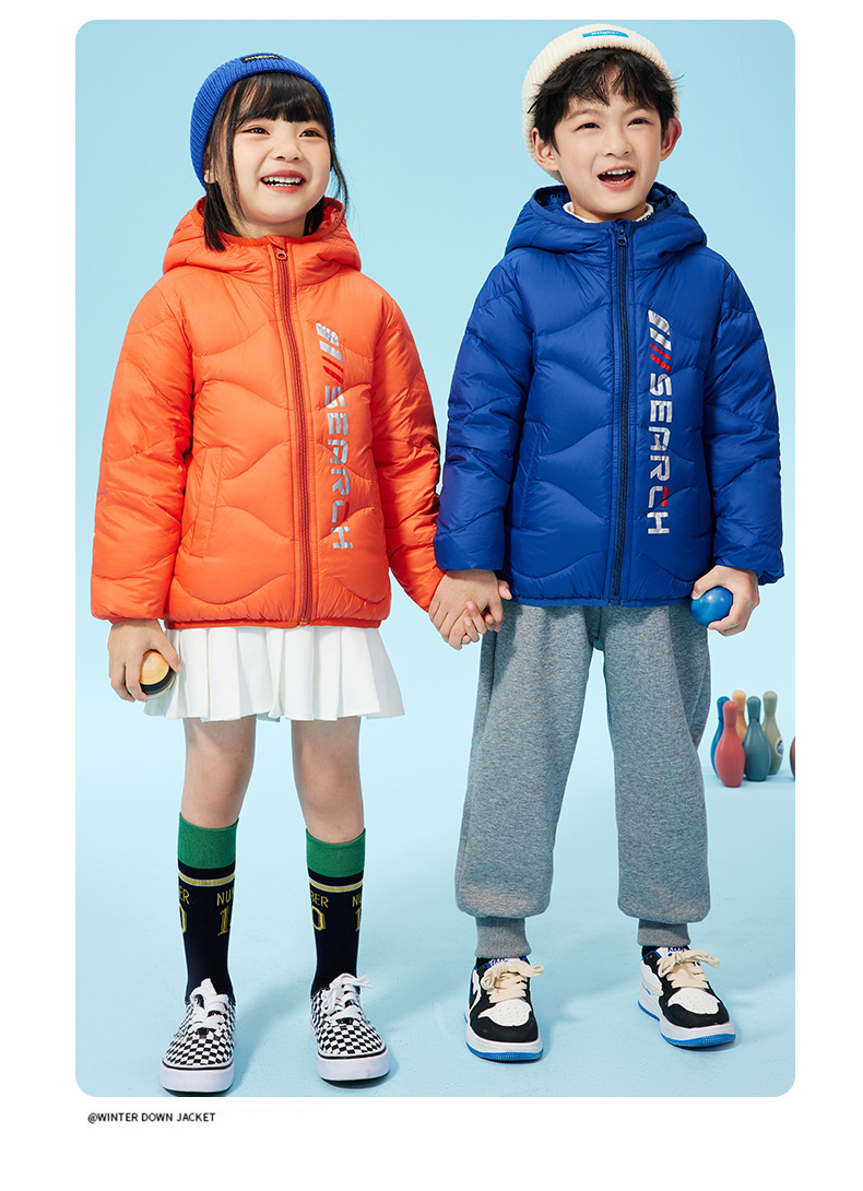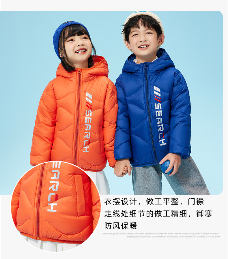 XBB-G9576儿童秋冬90绒羽绒服轻薄款男童女童字母款白鸭绒羽绒外套一件