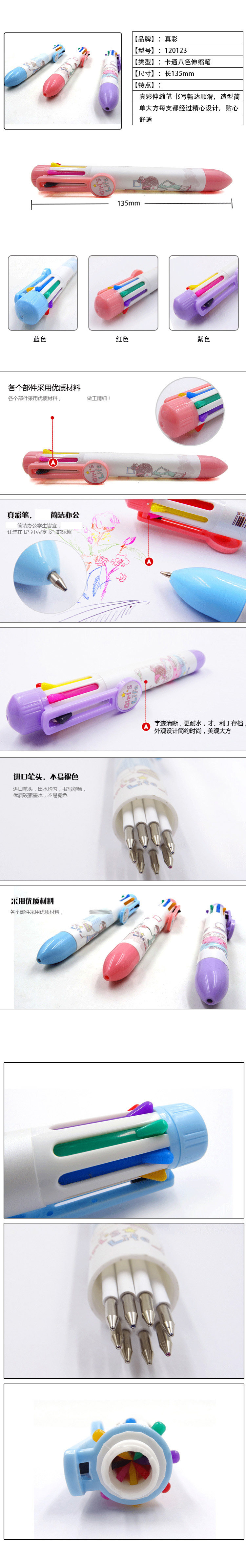 【百汇到家】真彩八色女孩圆珠笔120123(紫蓝粉)