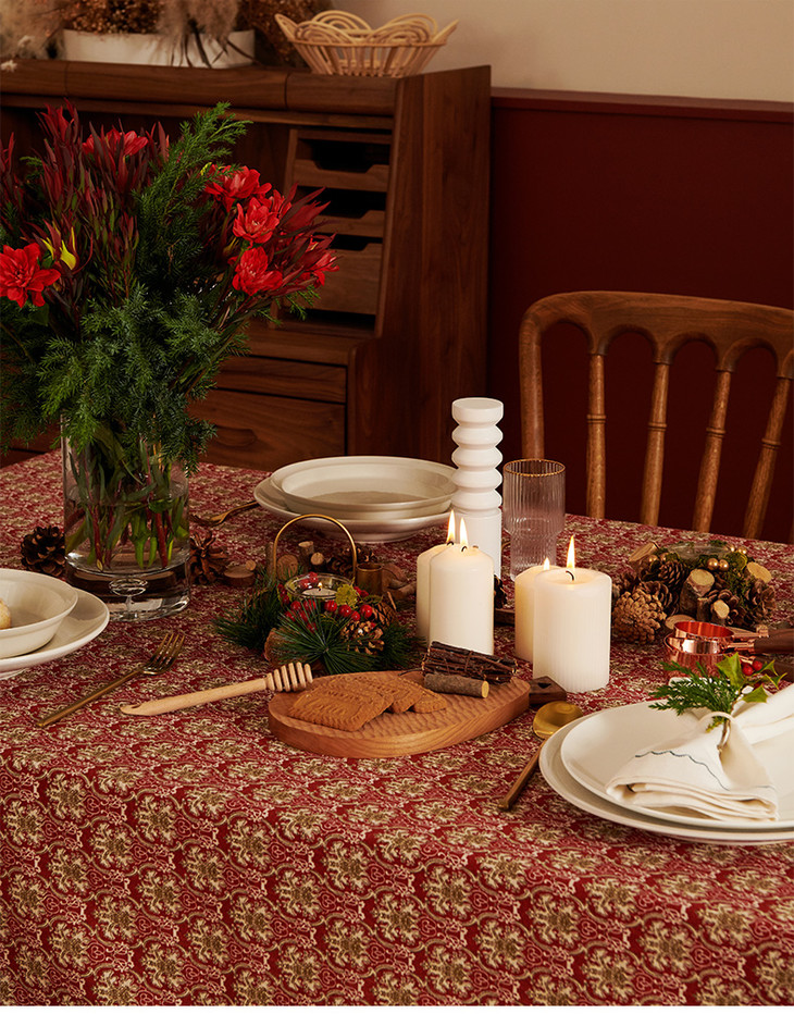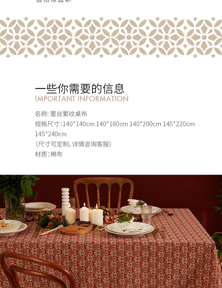 红色节日新年圣诞方桌布蕾丝边餐桌布艺