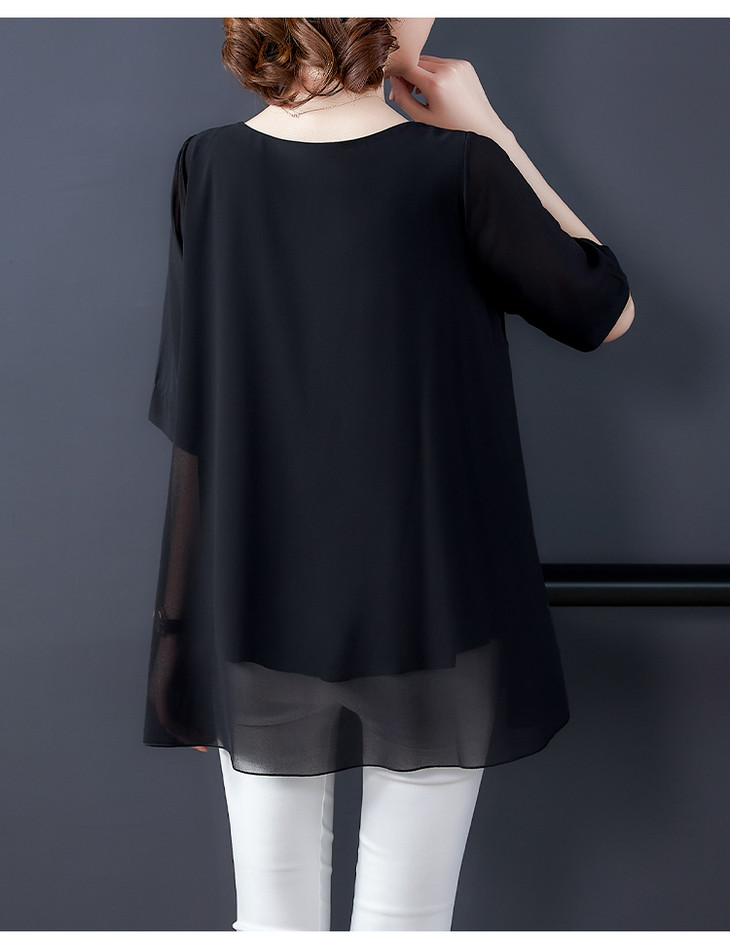 KQL540T3950雪纺衫女短袖小雏菊印花T上衣