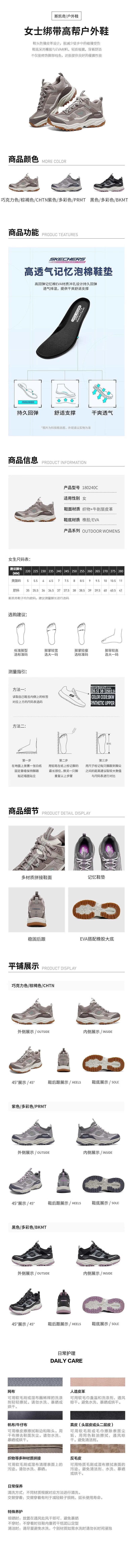 Skechers斯凯奇 女中帮绑带户外鞋 180240C-BKMT