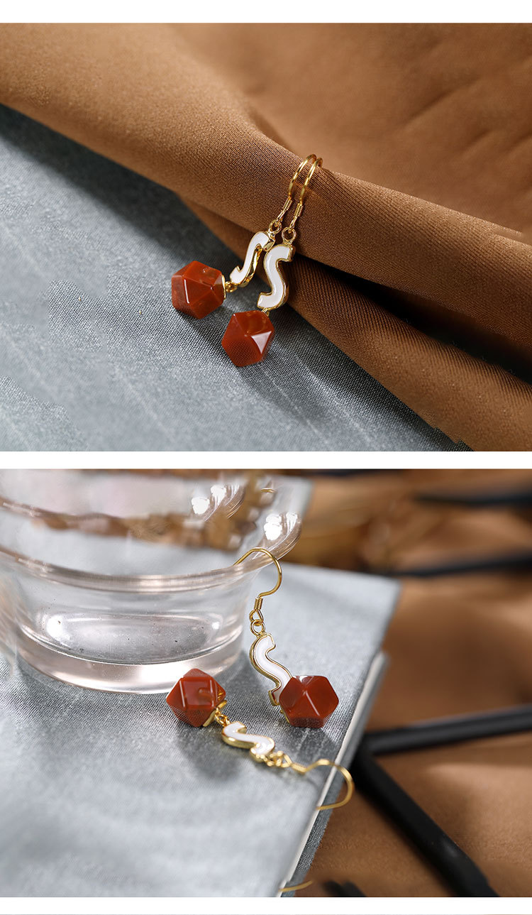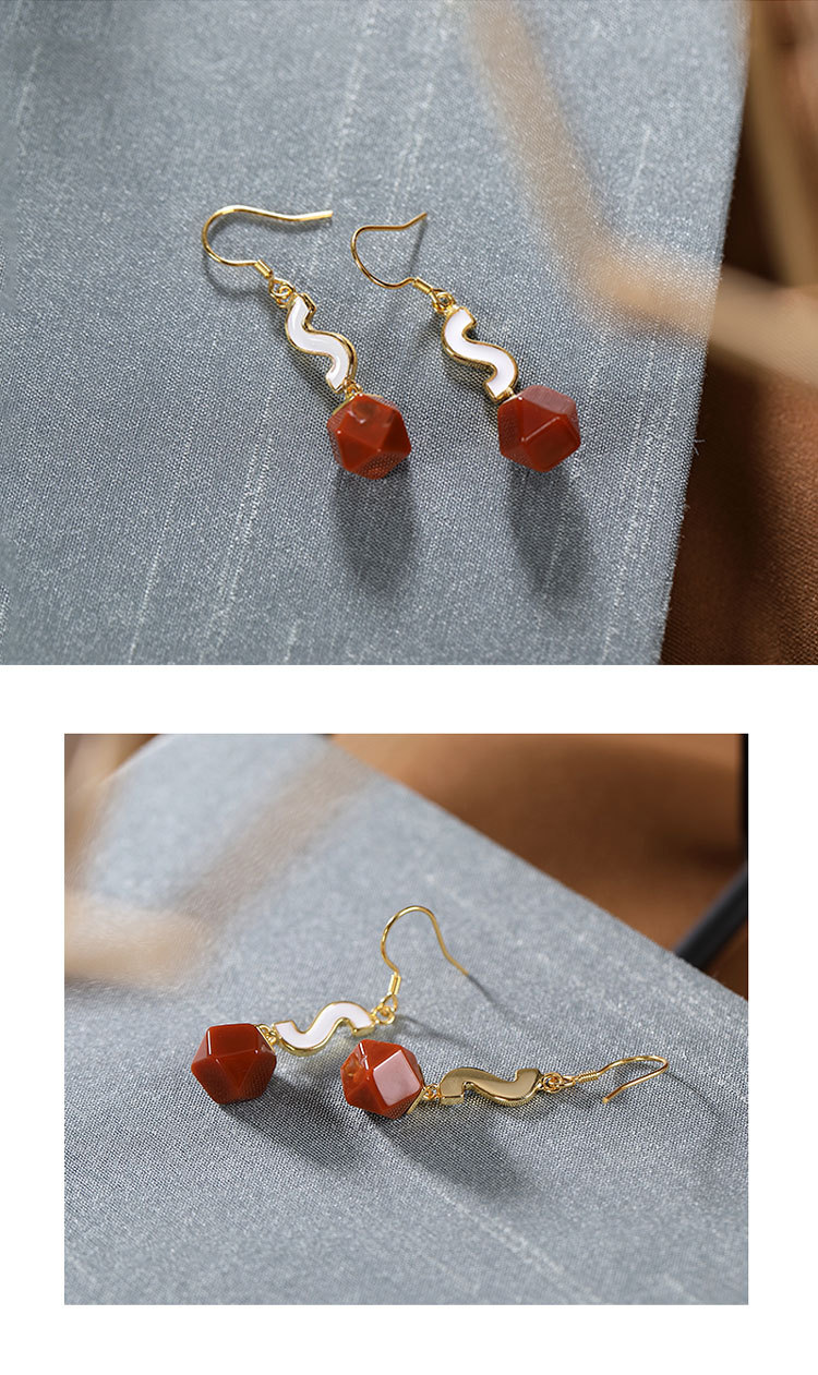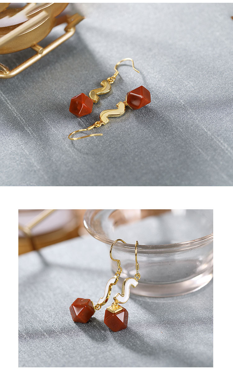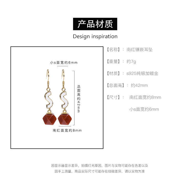 S925纯银天然南红玛瑙个性几何形耳坠耳饰CW