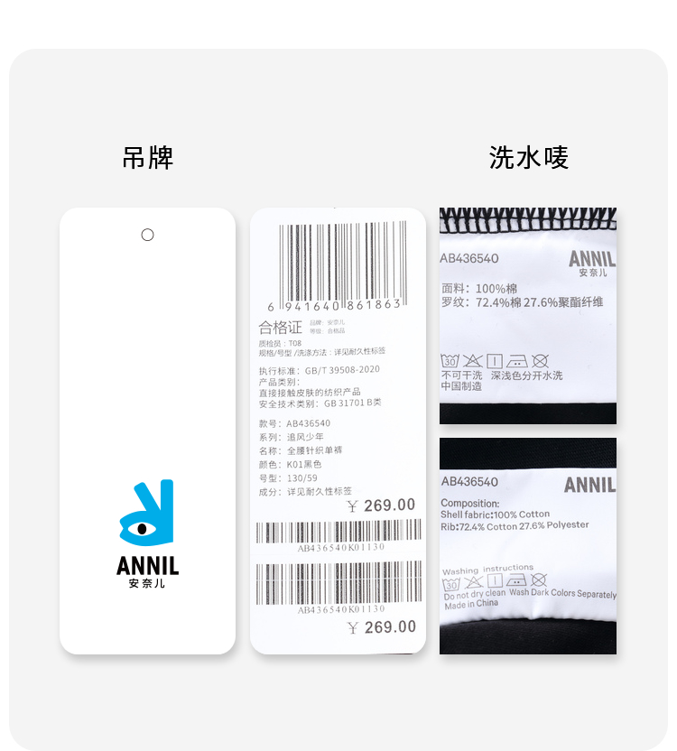 男童活力休闲慢跑裤新款安奈儿童装实体店同款AB436540