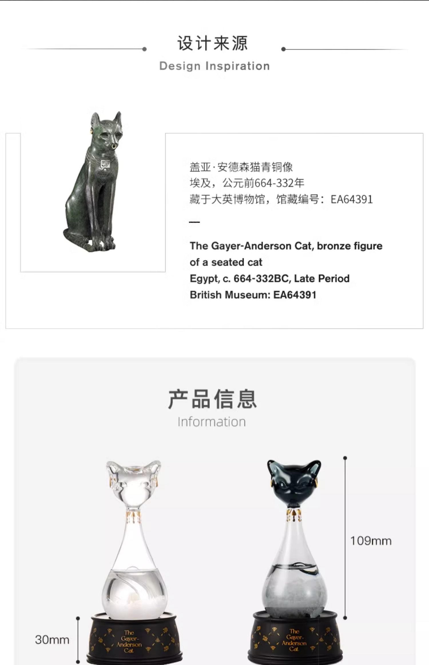 【送礼好物】大英博物馆 - 盖亚安德森猫系列风暴瓶黑色/白色