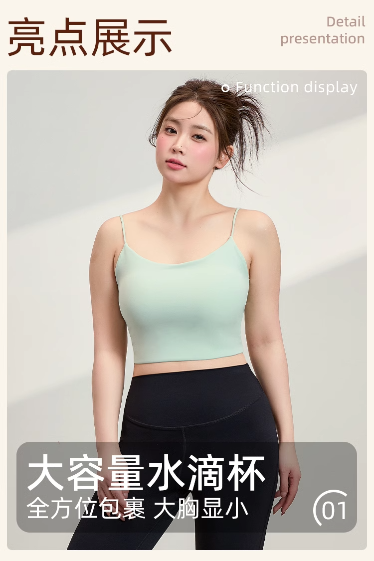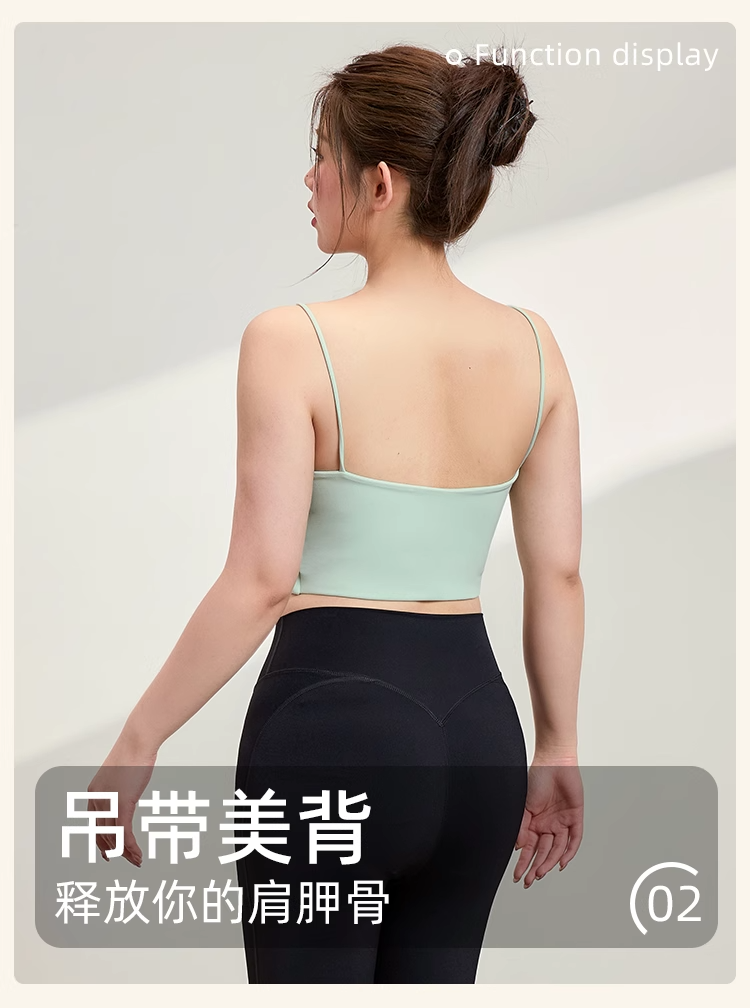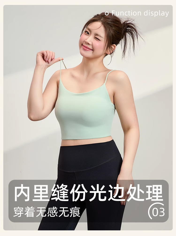 【限时秒】YOGACODE【火树银花系列】细肩带大码瑜伽服吊带背心带胸垫性感文胸女胖mm健身内衣DWC215059