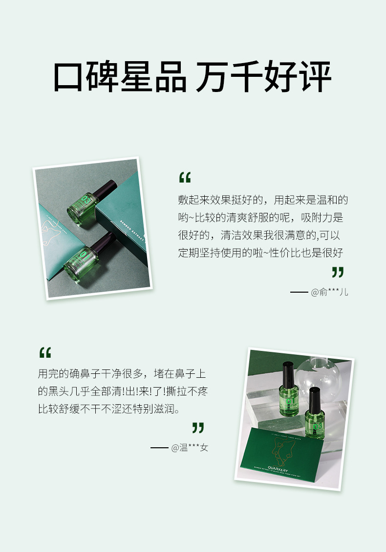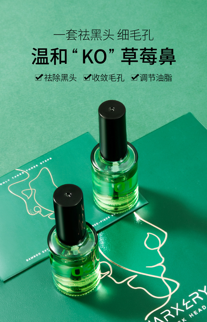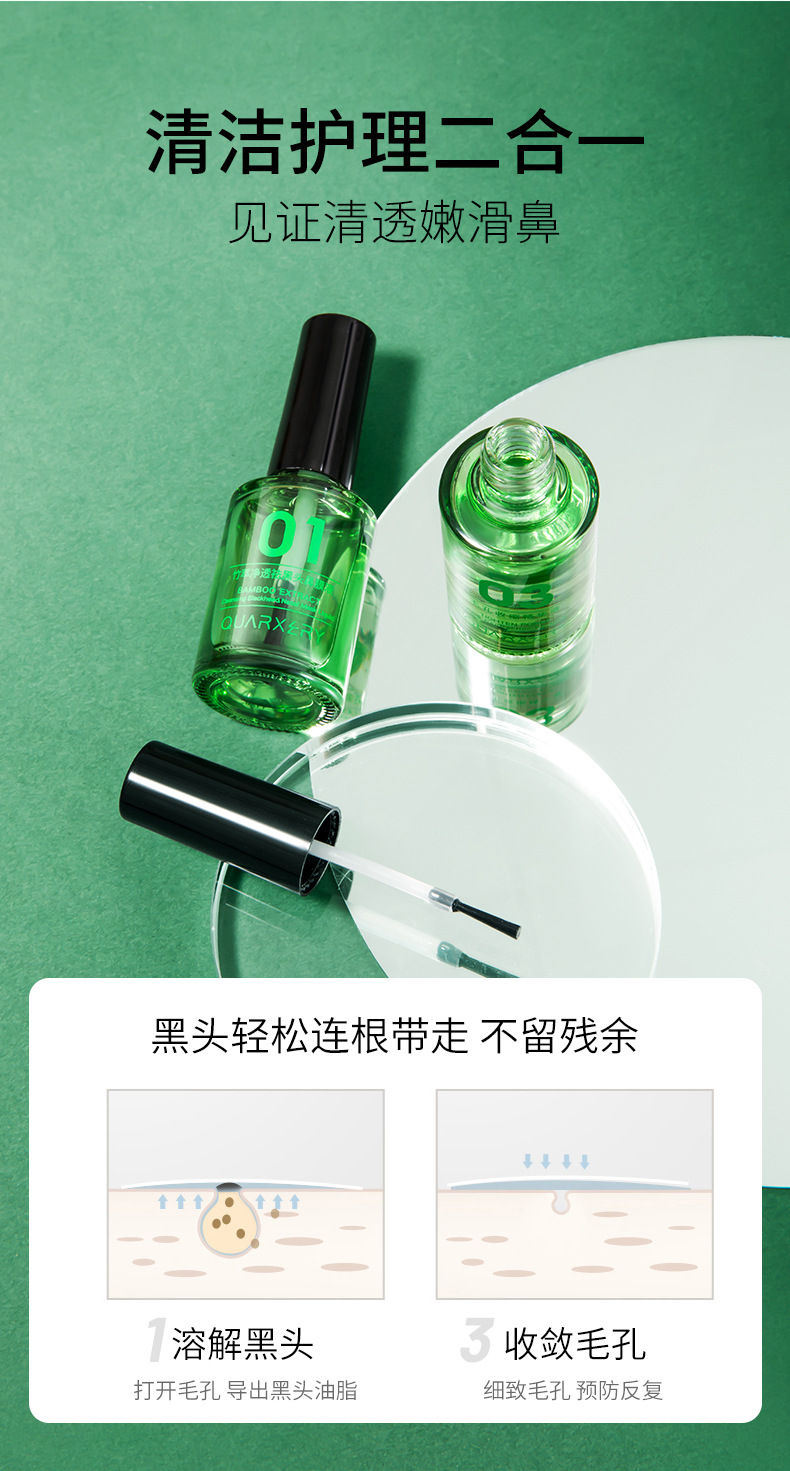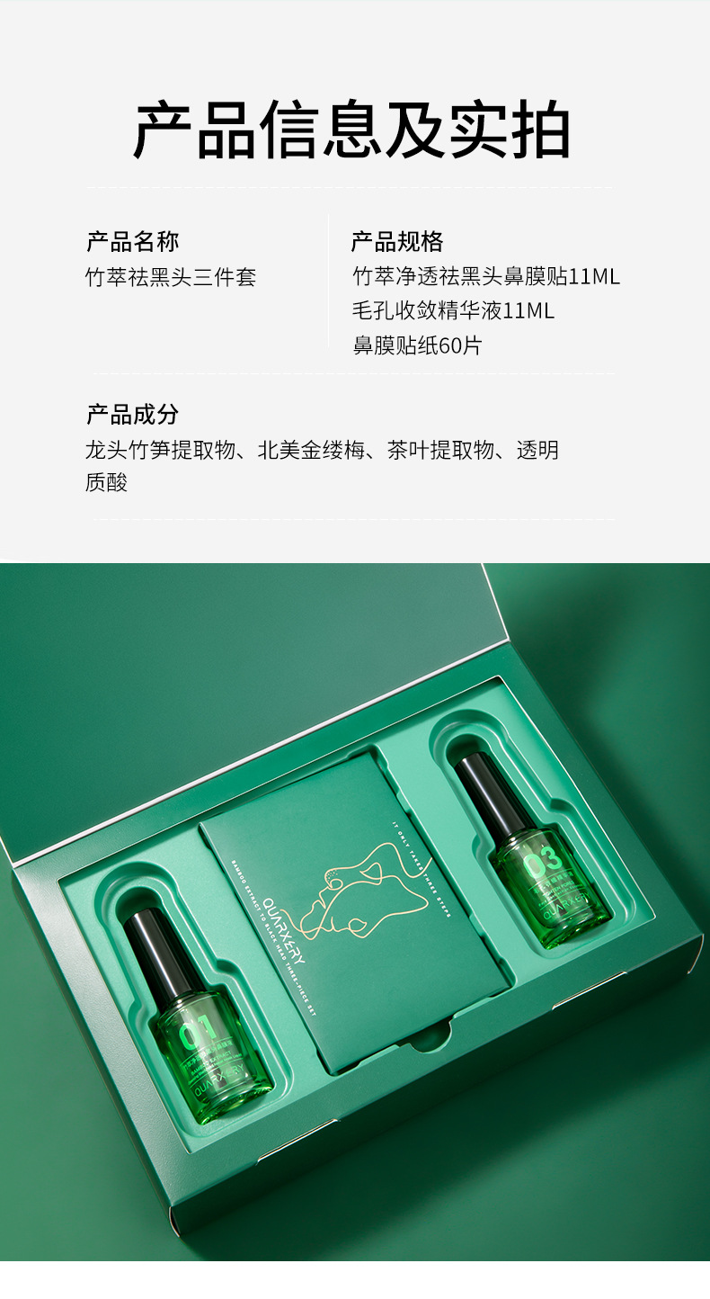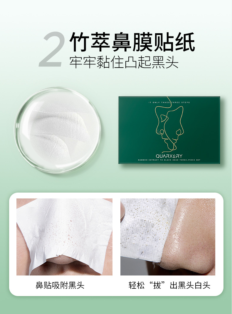 【套装限时优惠拒绝“草莓鼻”一套祛黑头】泉兮竹萃祛黑头三件套鼻贴粉刺温和收缩毛孔平滑细腻黑头导出液