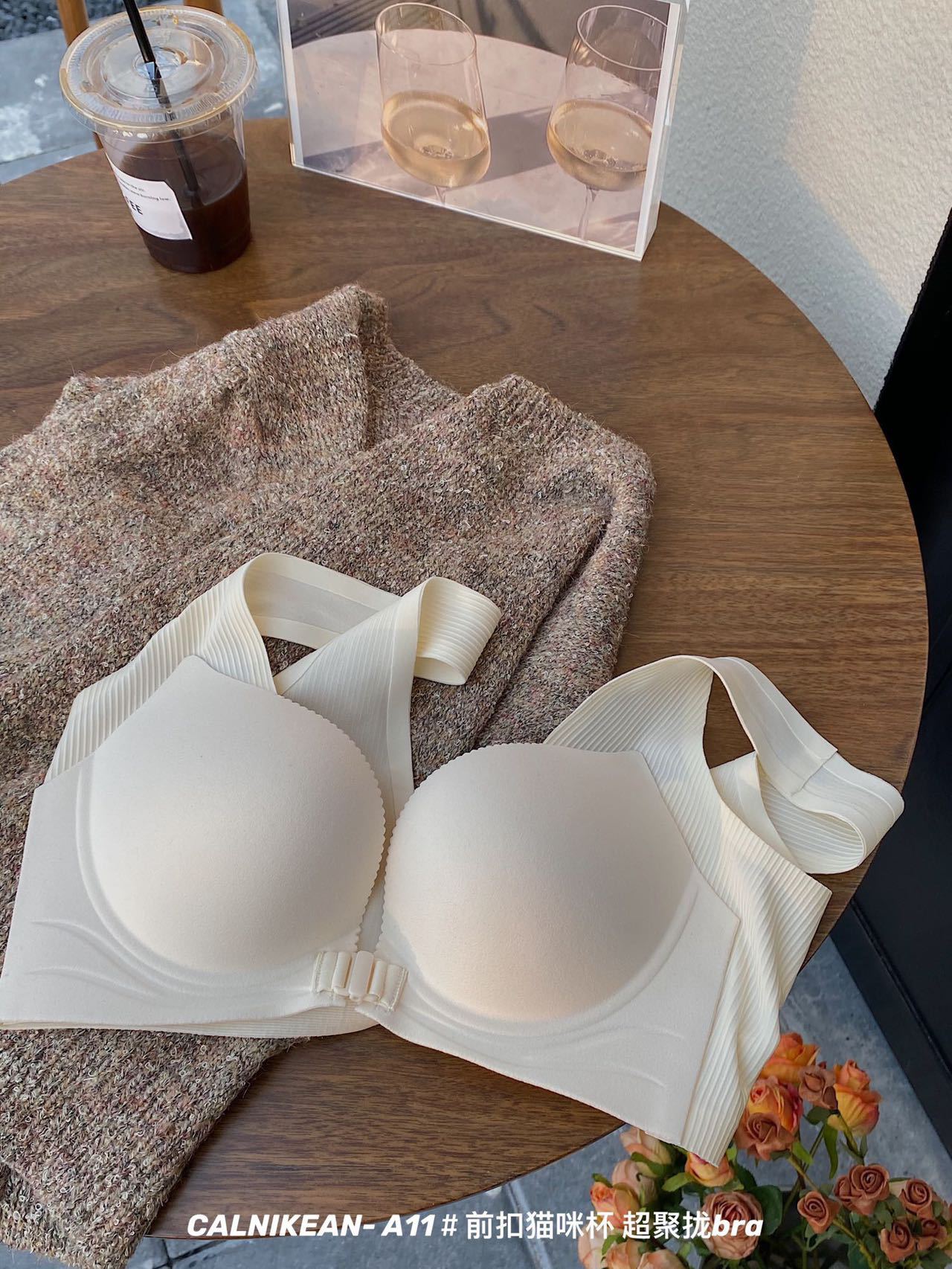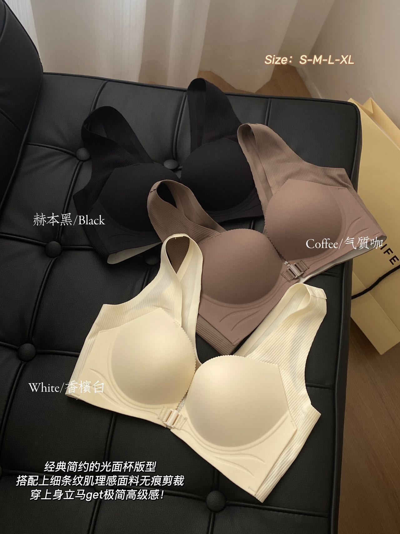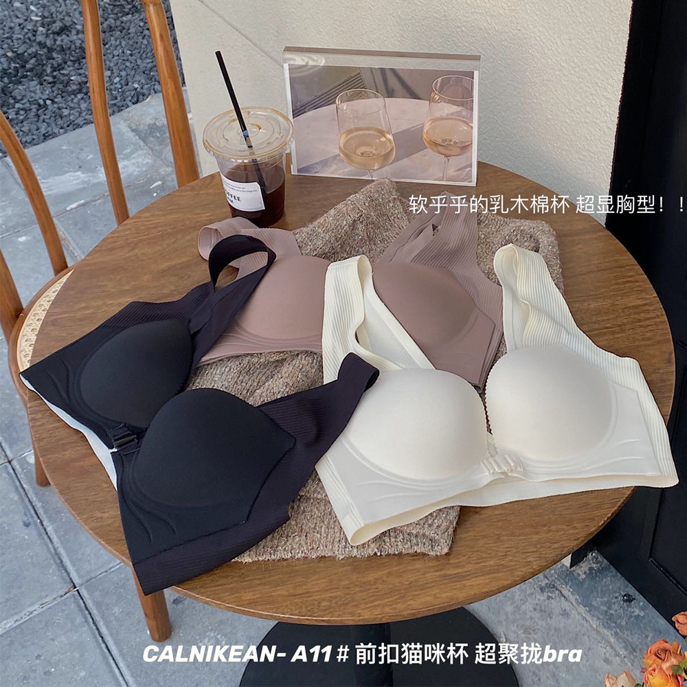 极简云感杯便捷前扣内衣无痕光面美背聚拢承托背心式文胸