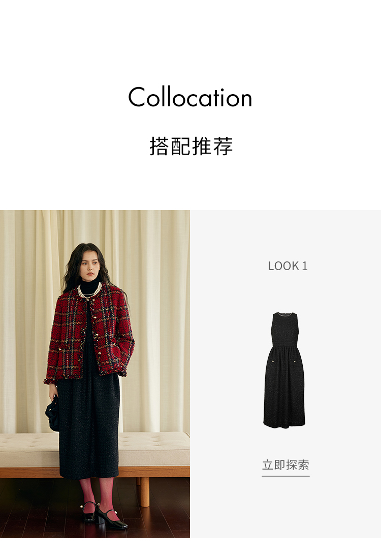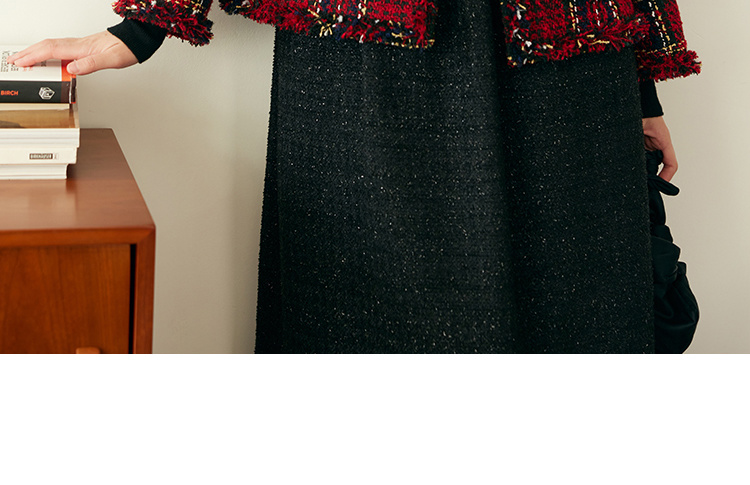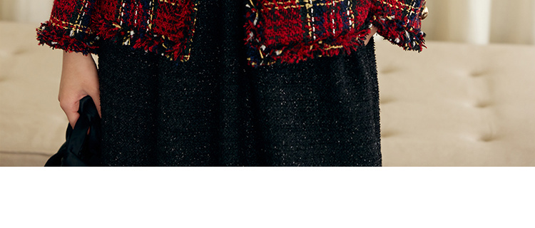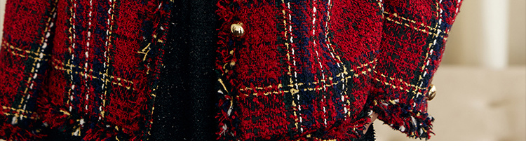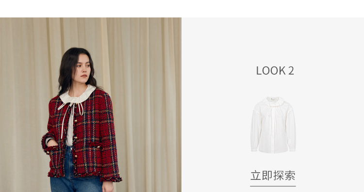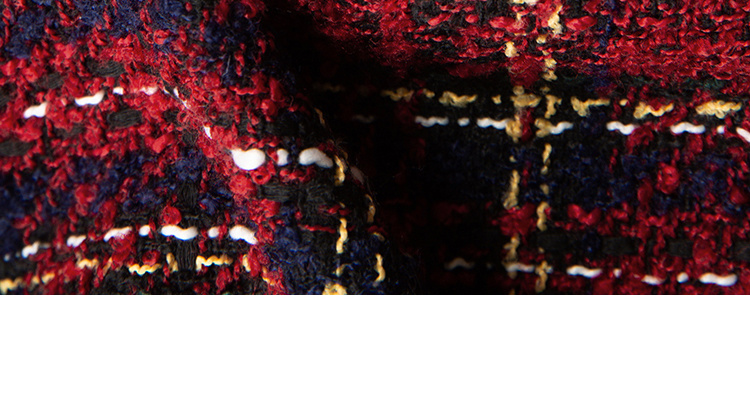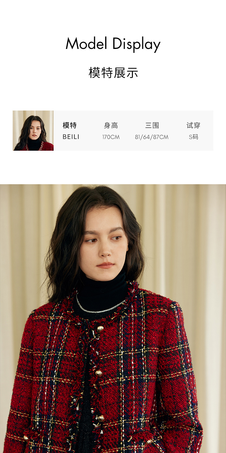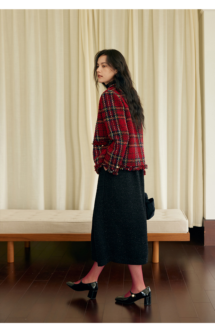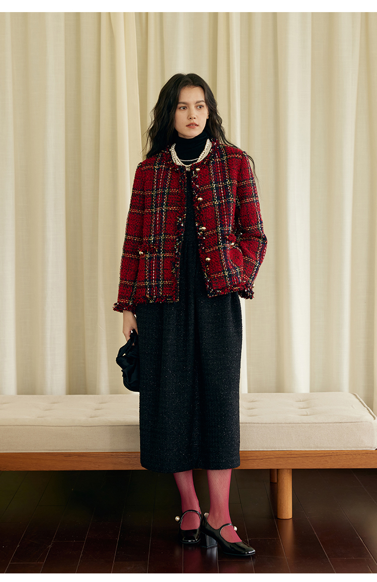 HeyDress格纹毛边小香风外套女冬季宽松显瘦经典圣诞红色厚款上衣