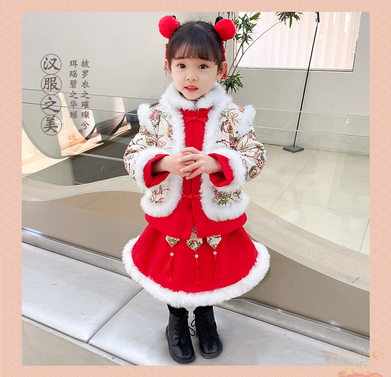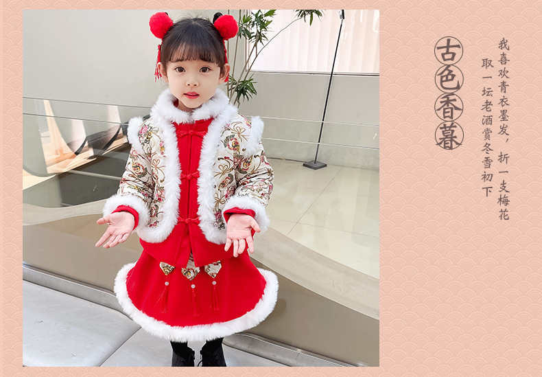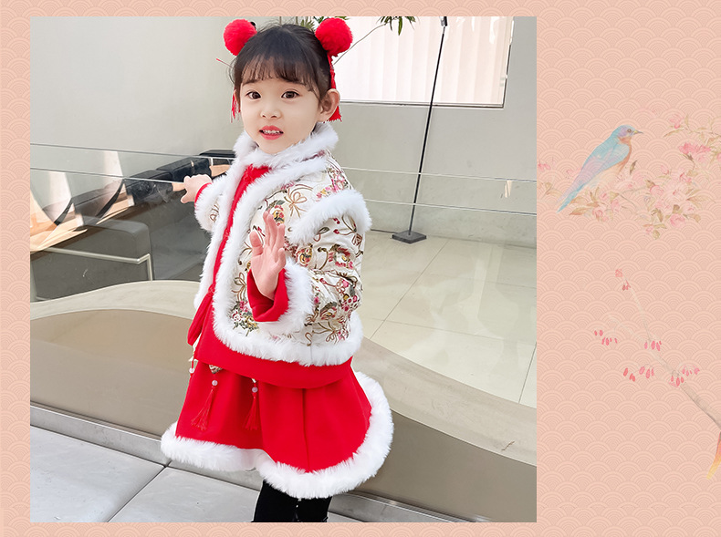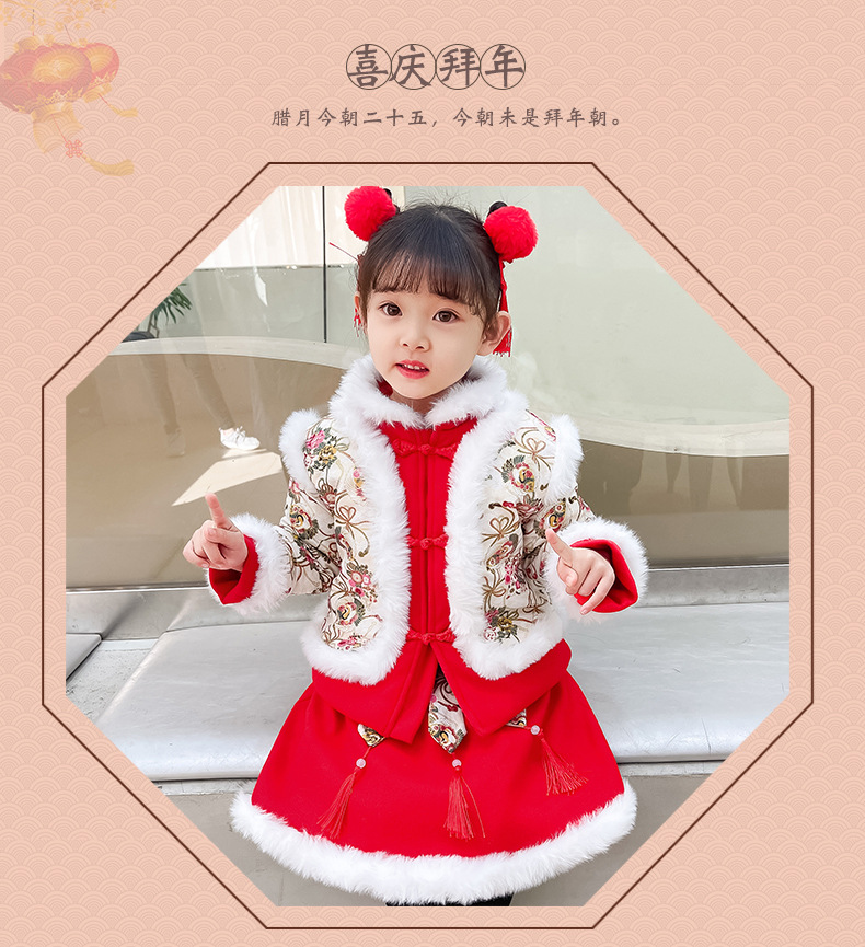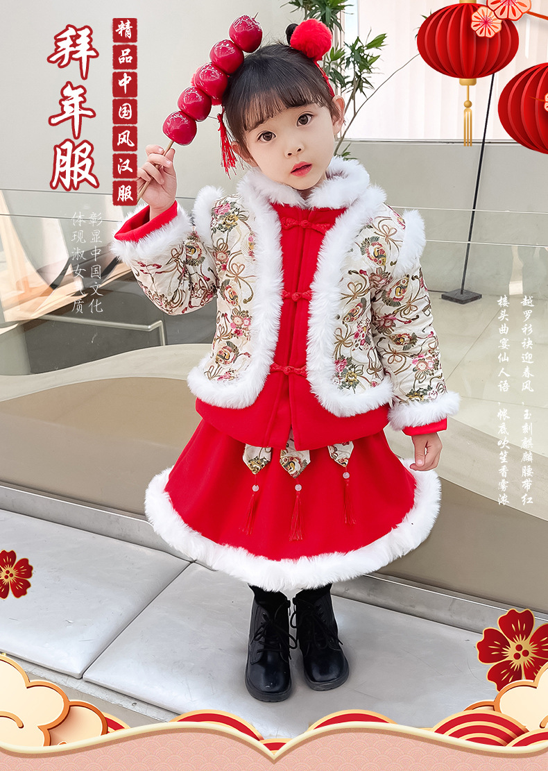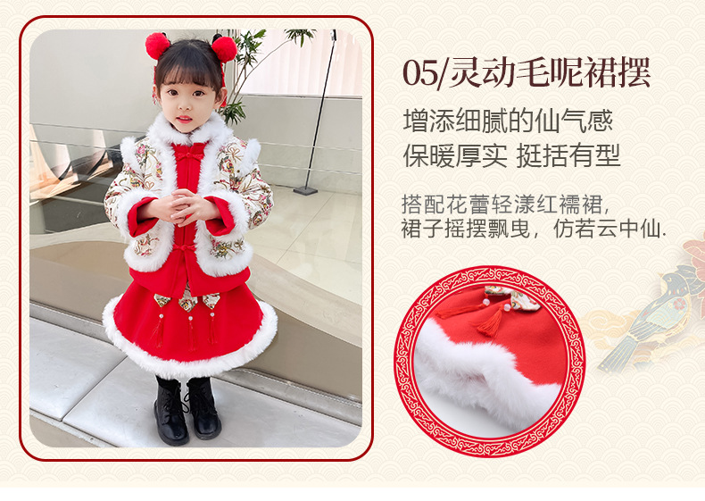 DY-9960汉服女童套装秋冬儿童中国风古装女宝宝周岁生日唐装拜年服裙