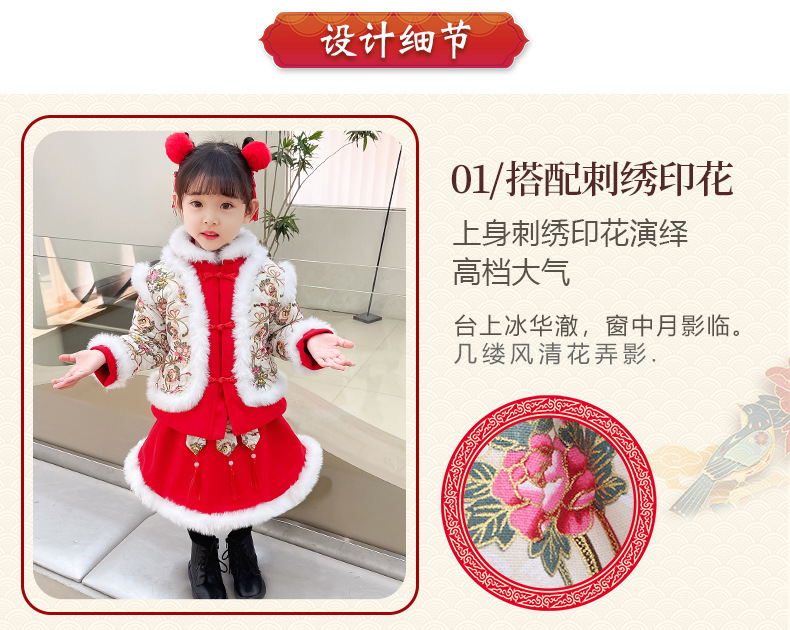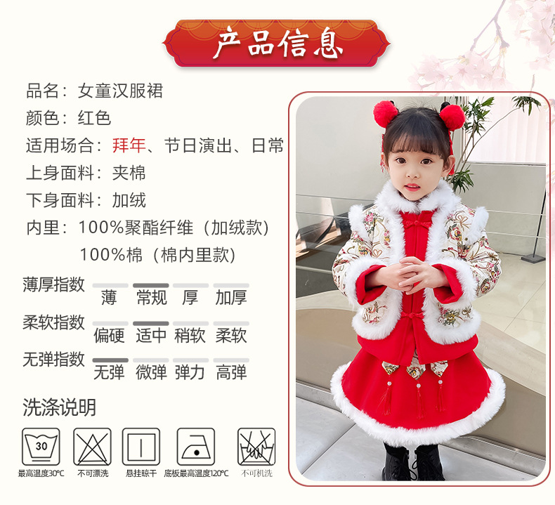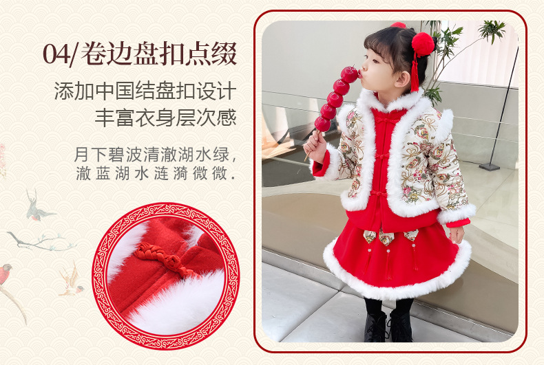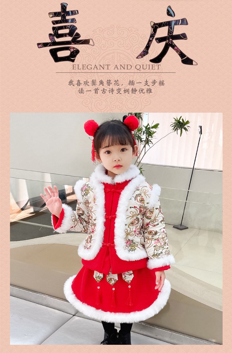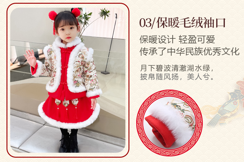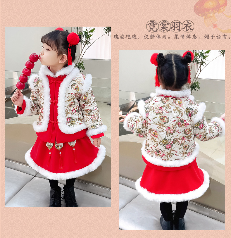 DY-9960汉服女童套装秋冬儿童中国风古装女宝宝周岁生日唐装拜年服裙