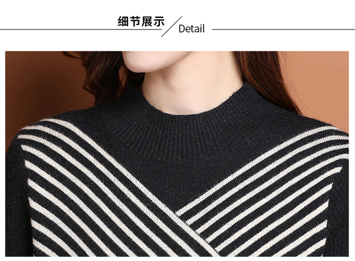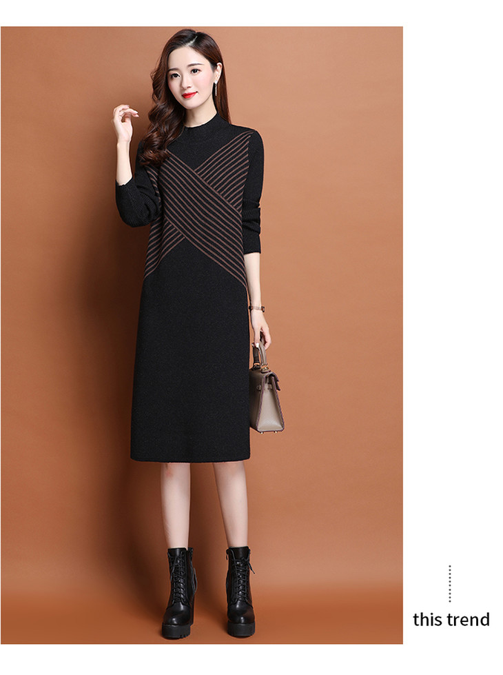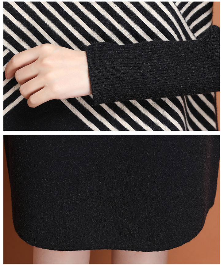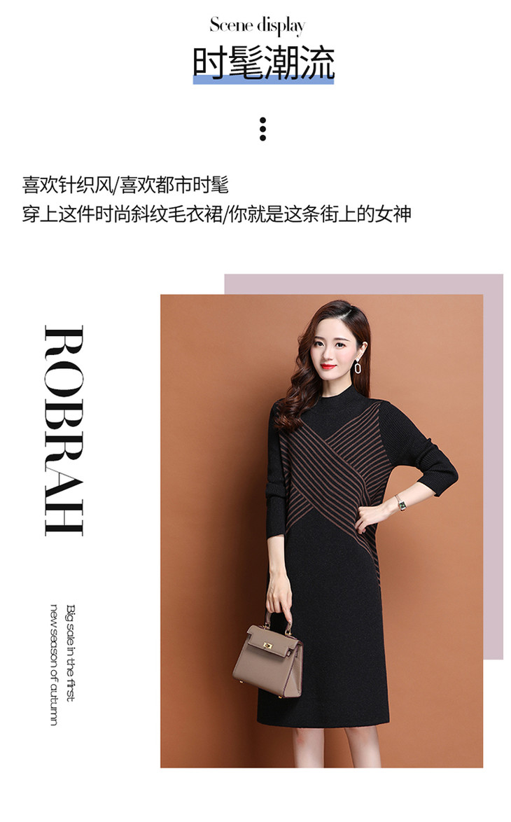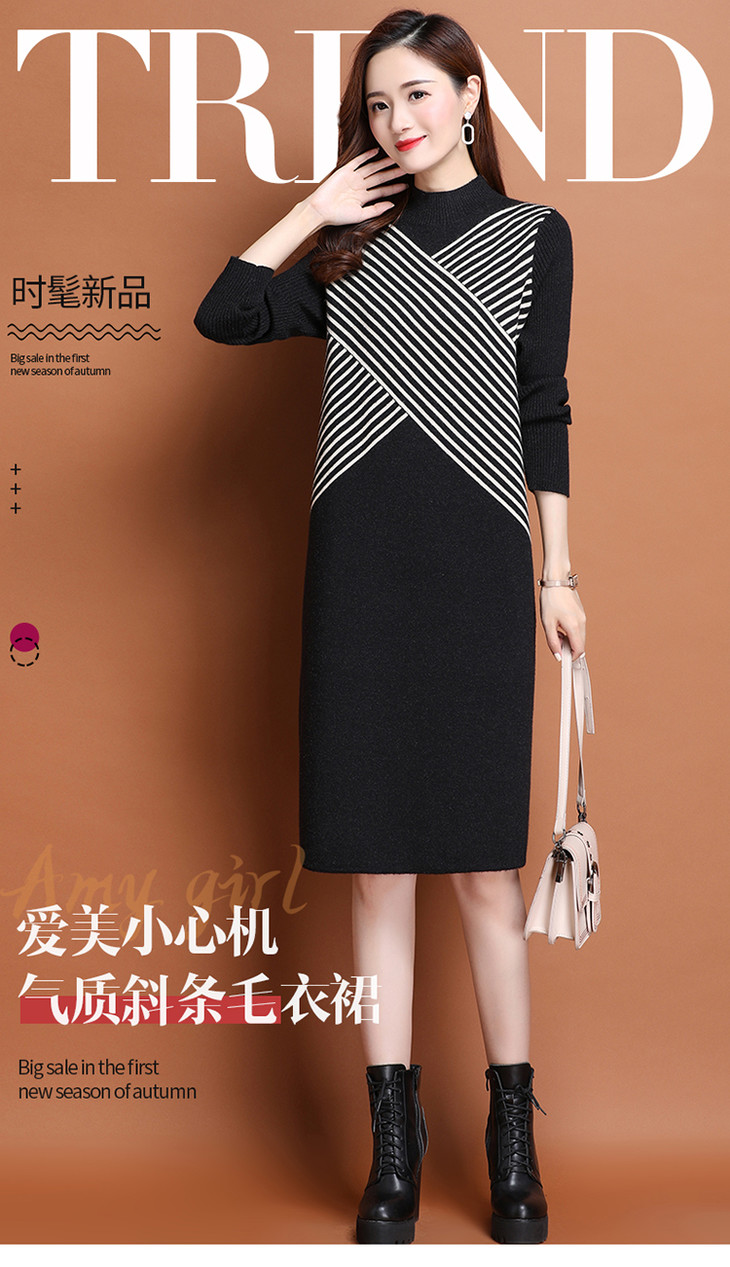 上海旗袍厂PY-60227 秋冬新款大码时尚宽松长袖条纹针织连衣裙中长款过膝打底裙